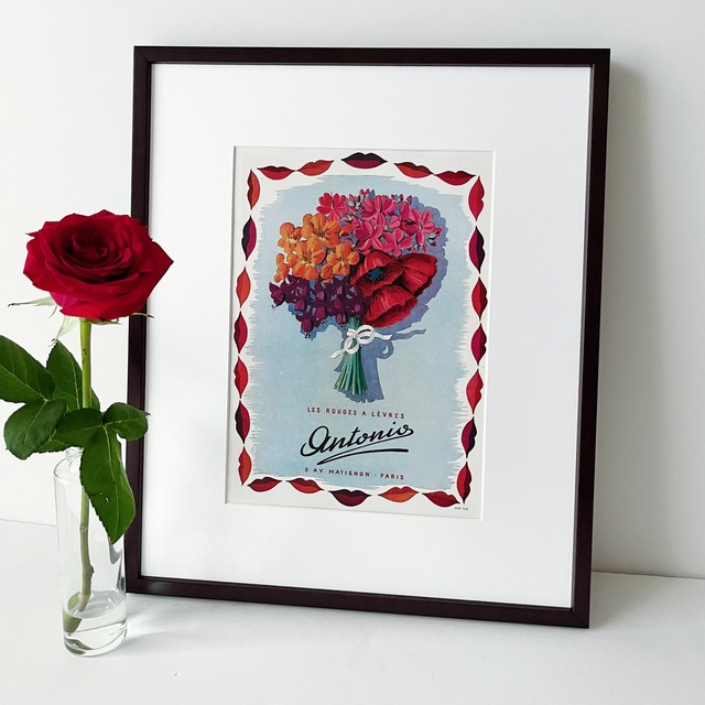 <母の日に!1946 広告>Antonio ポスター ヴィンテージ アートポスター フレーム付き インテリア モダン おしゃれ かわいい 壁掛け 花 赤 フランス ポップ レトロ