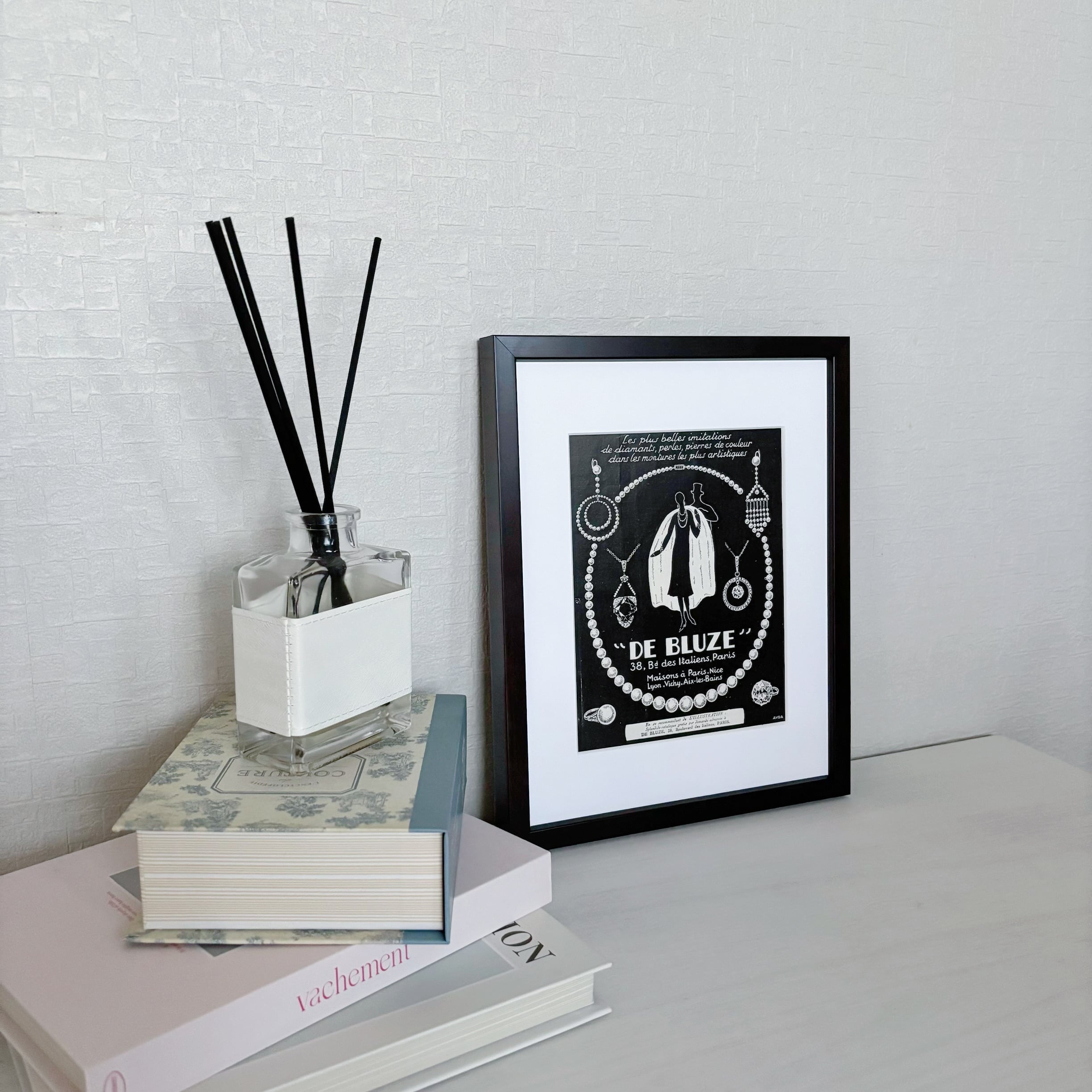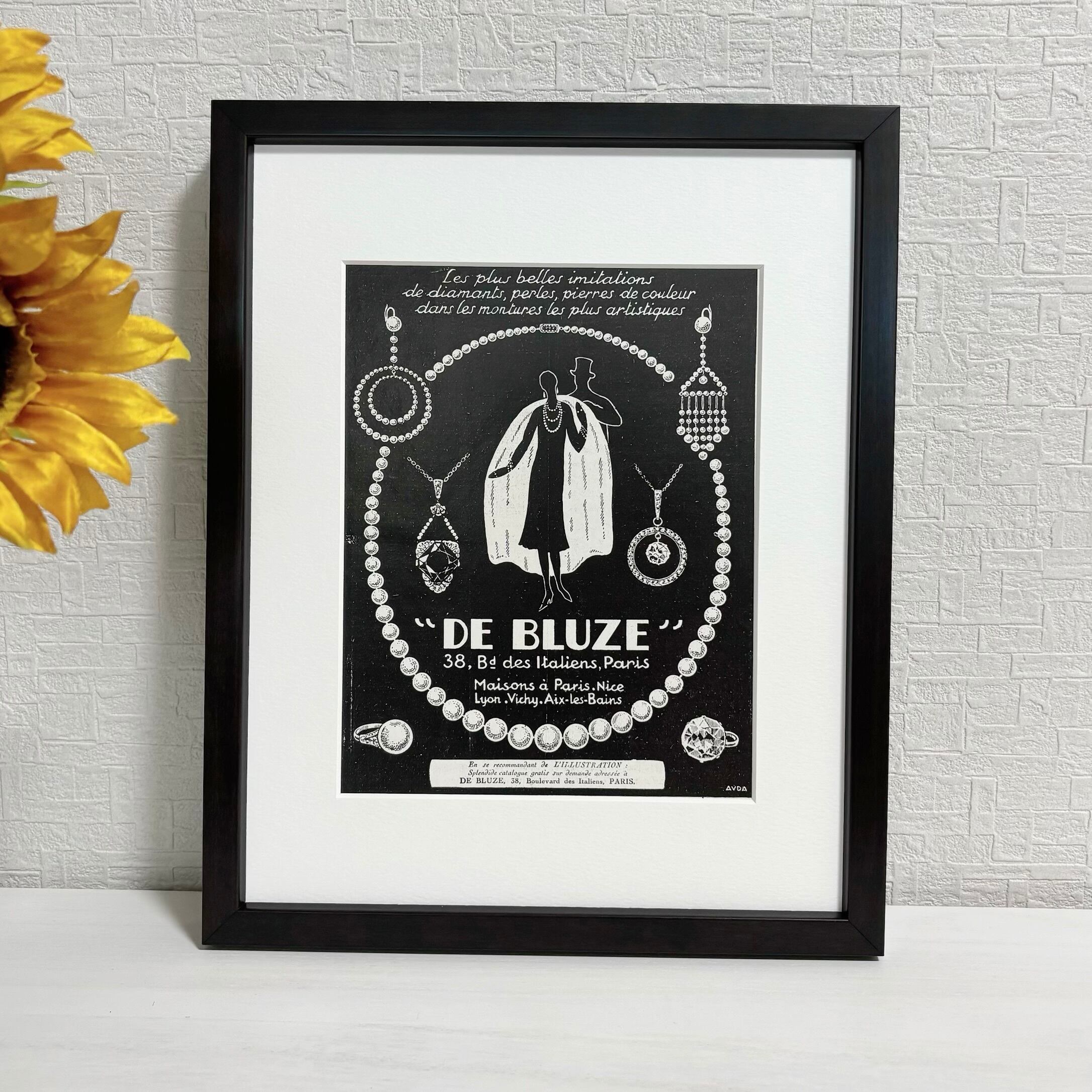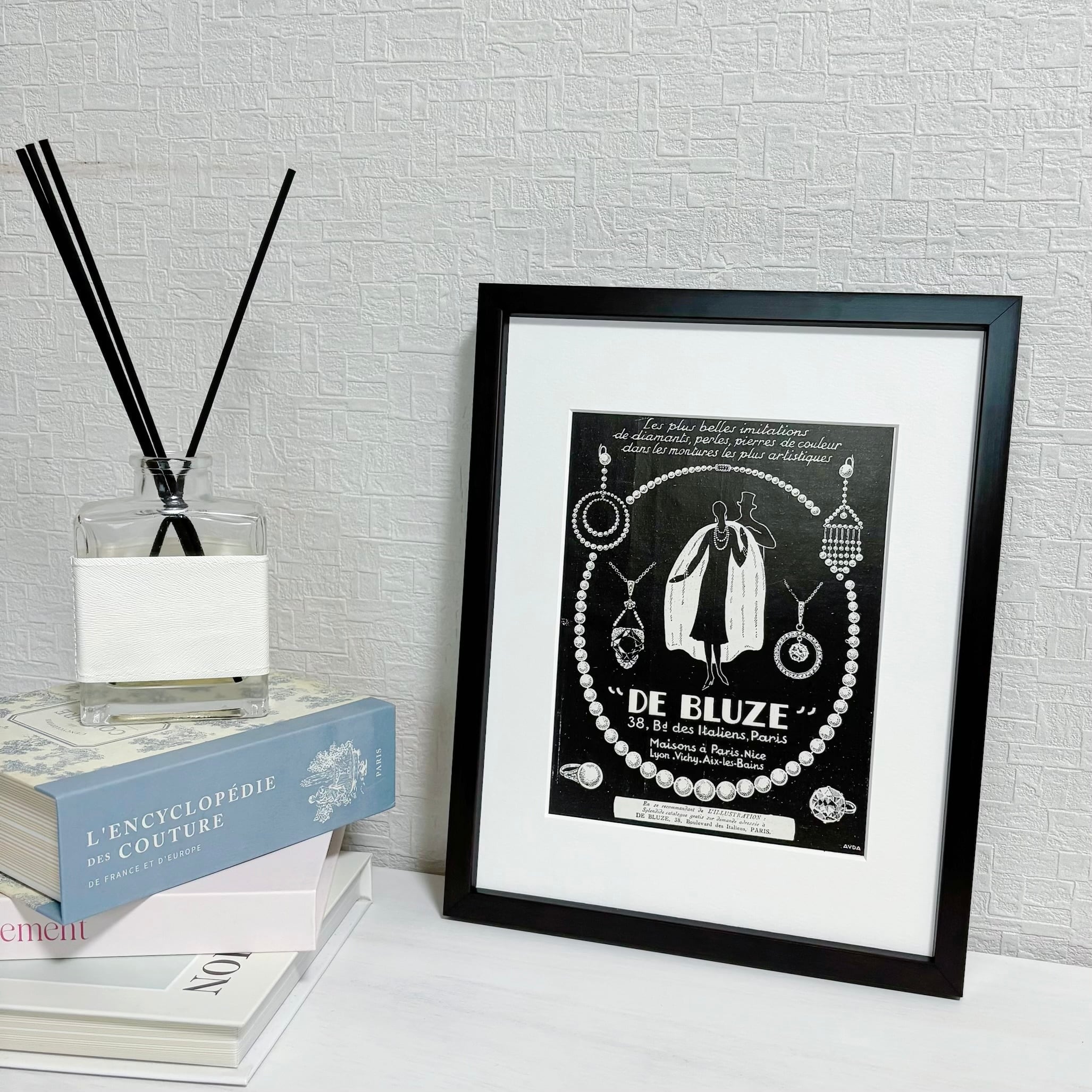 <1928年 広告> De Bluze ジュエリー ポスター ヴィンテージ アートポスター ミニフレーム付き インテリア モダン おしゃれ かわいい 壁掛け ポップ レトロ 夏 モノクロ モノトーン | Belle_ame ヴィンテージアートポスター
