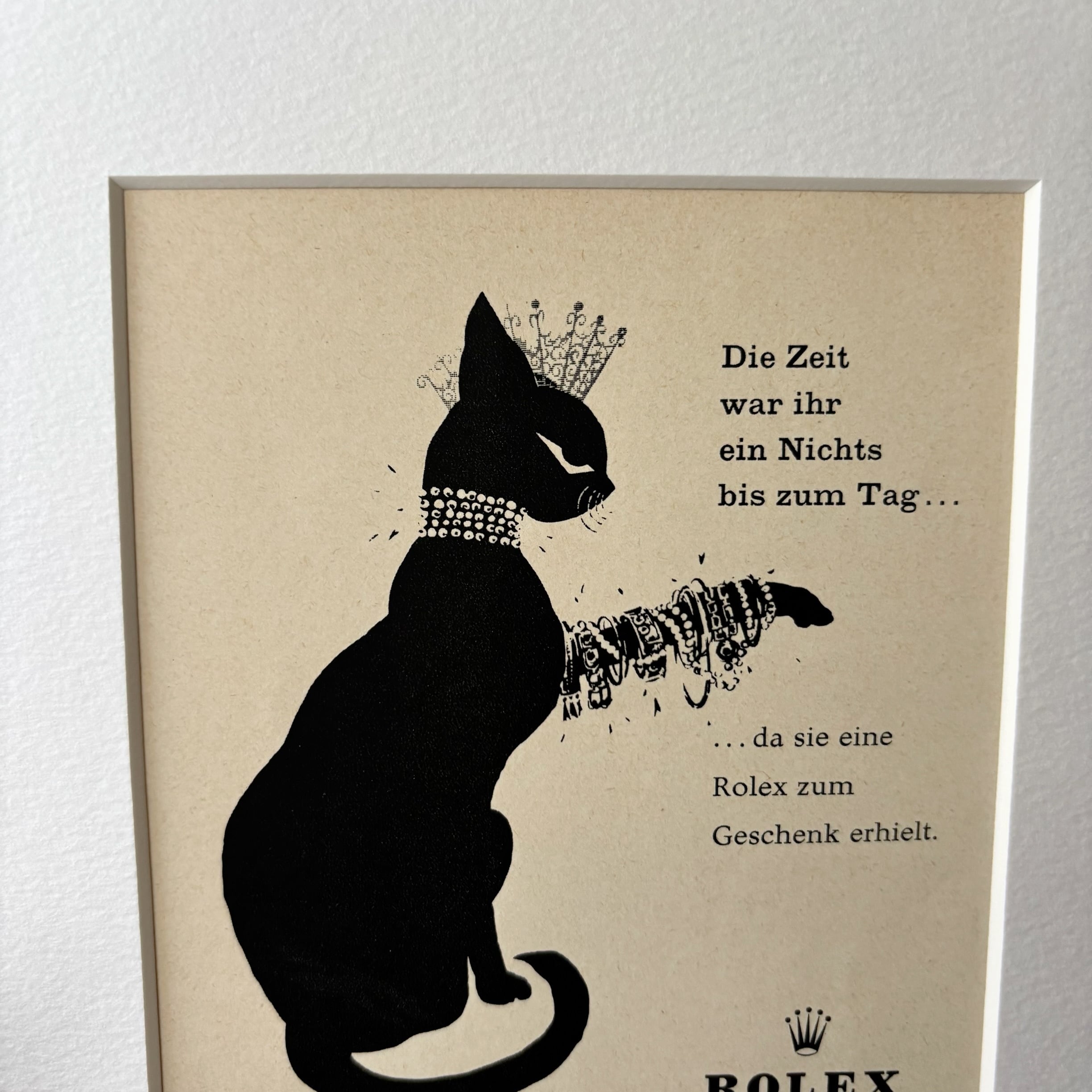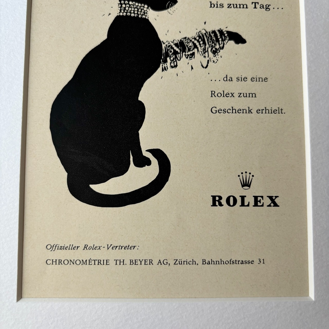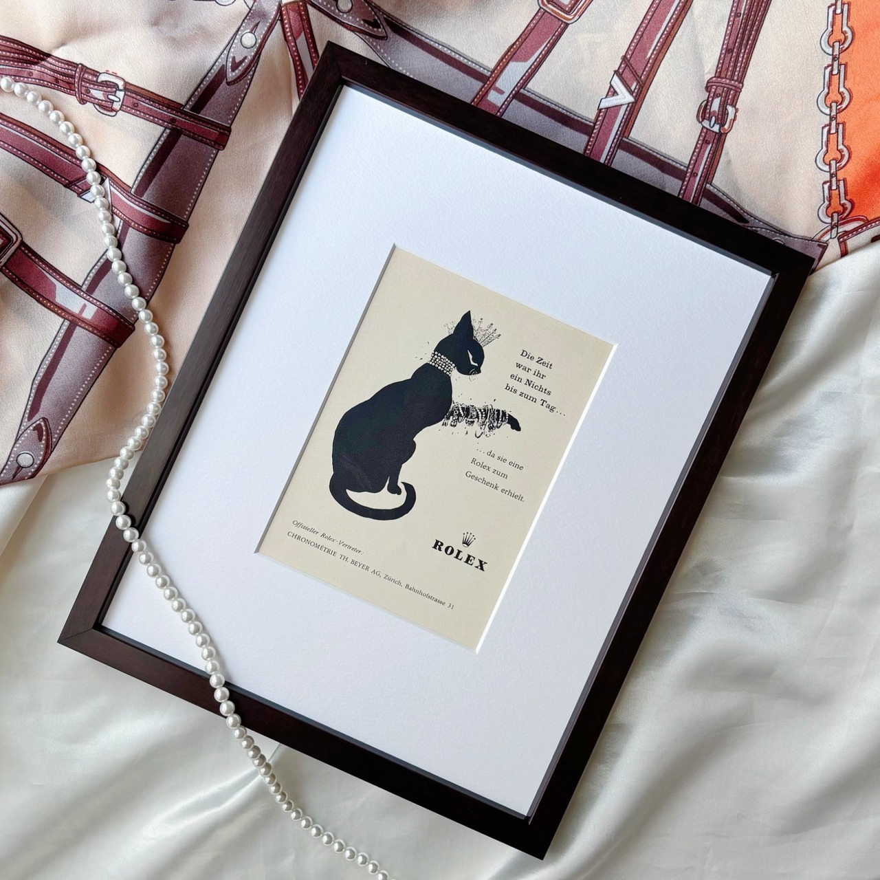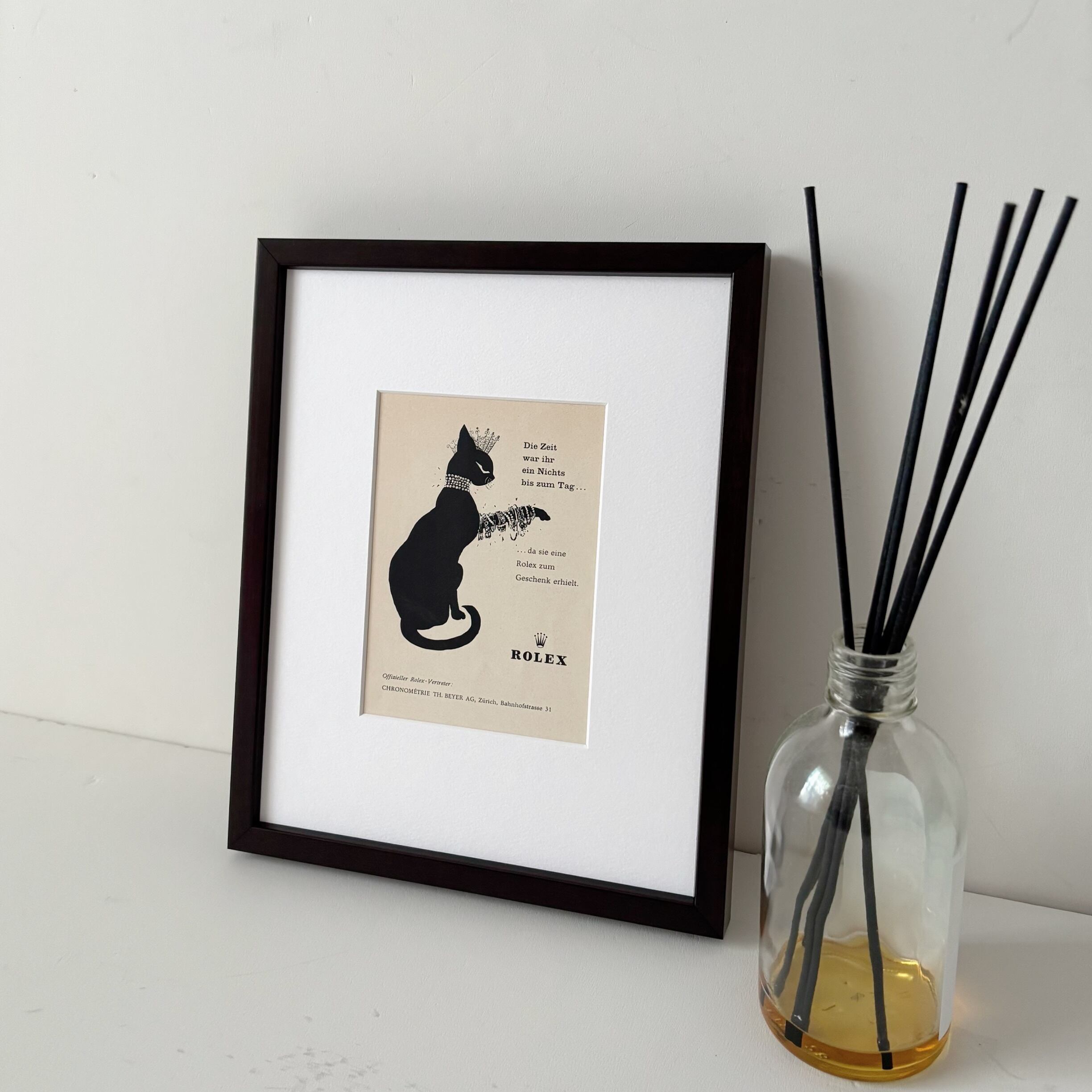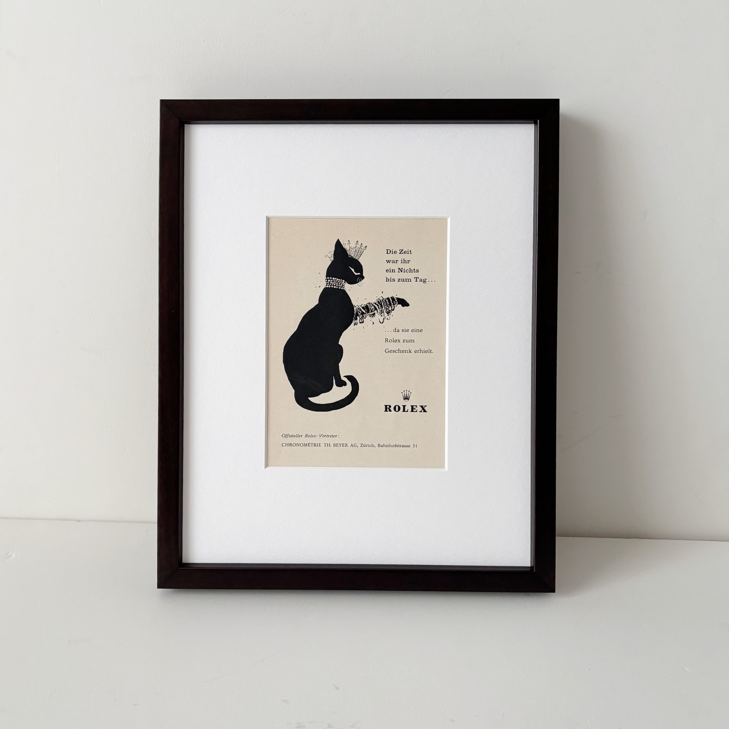 <入手困難!1959 広告>Rolex ロレックス Black Cat ポスター ヴィンテージ アートポスター ミニフレーム付き 額縁 インテリア おしゃれ かわいい 壁掛け レトロ 黒猫 猫グッズ