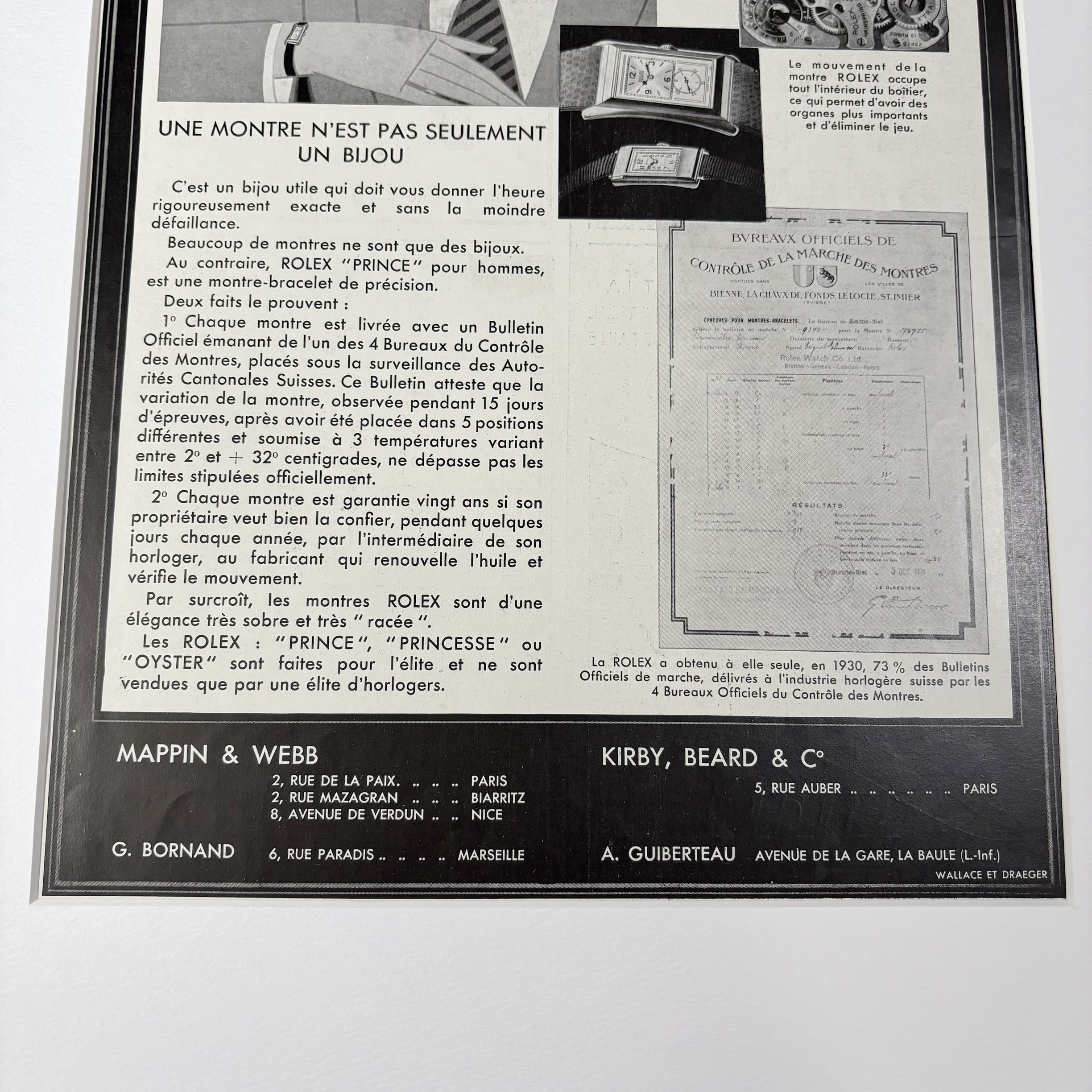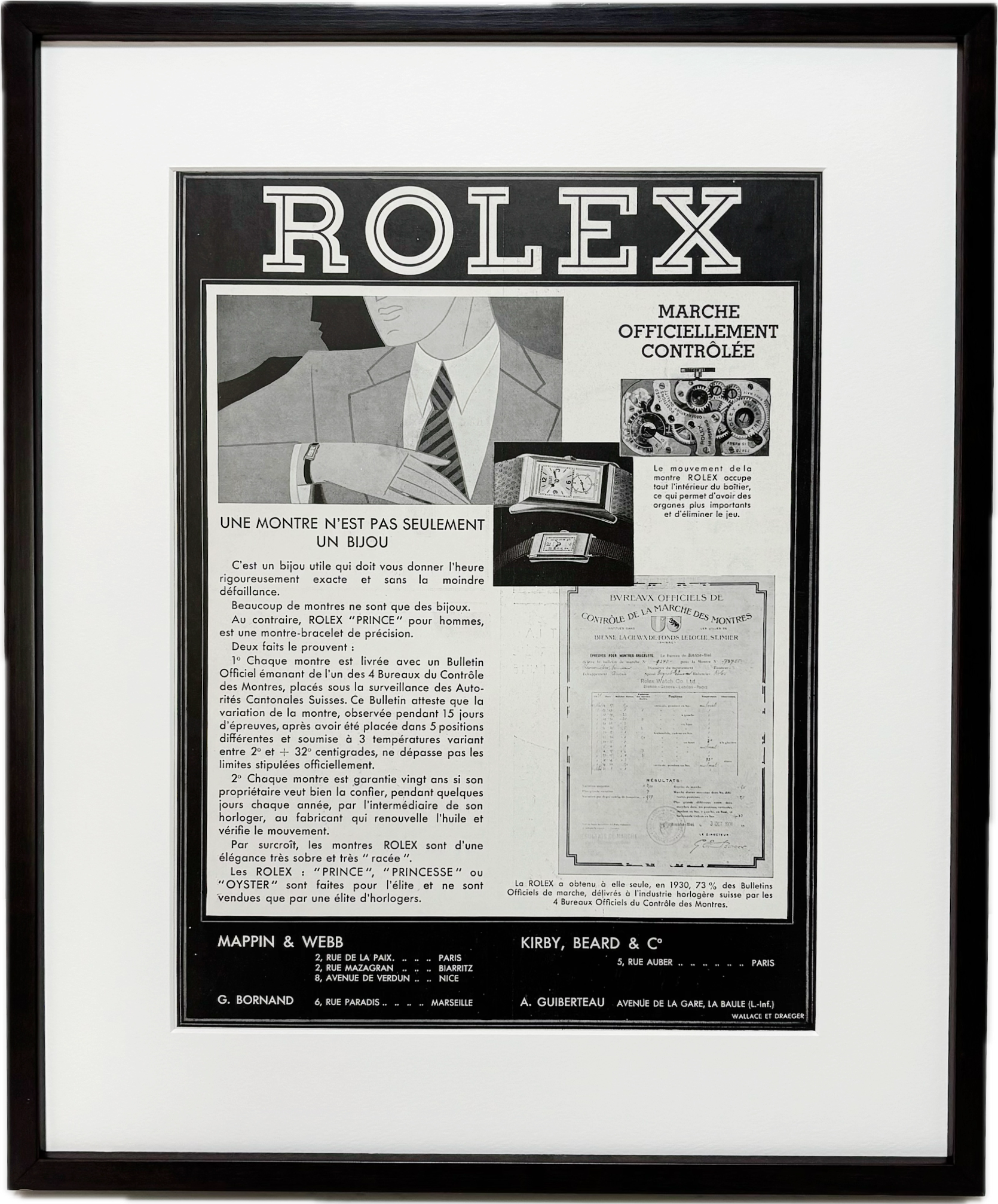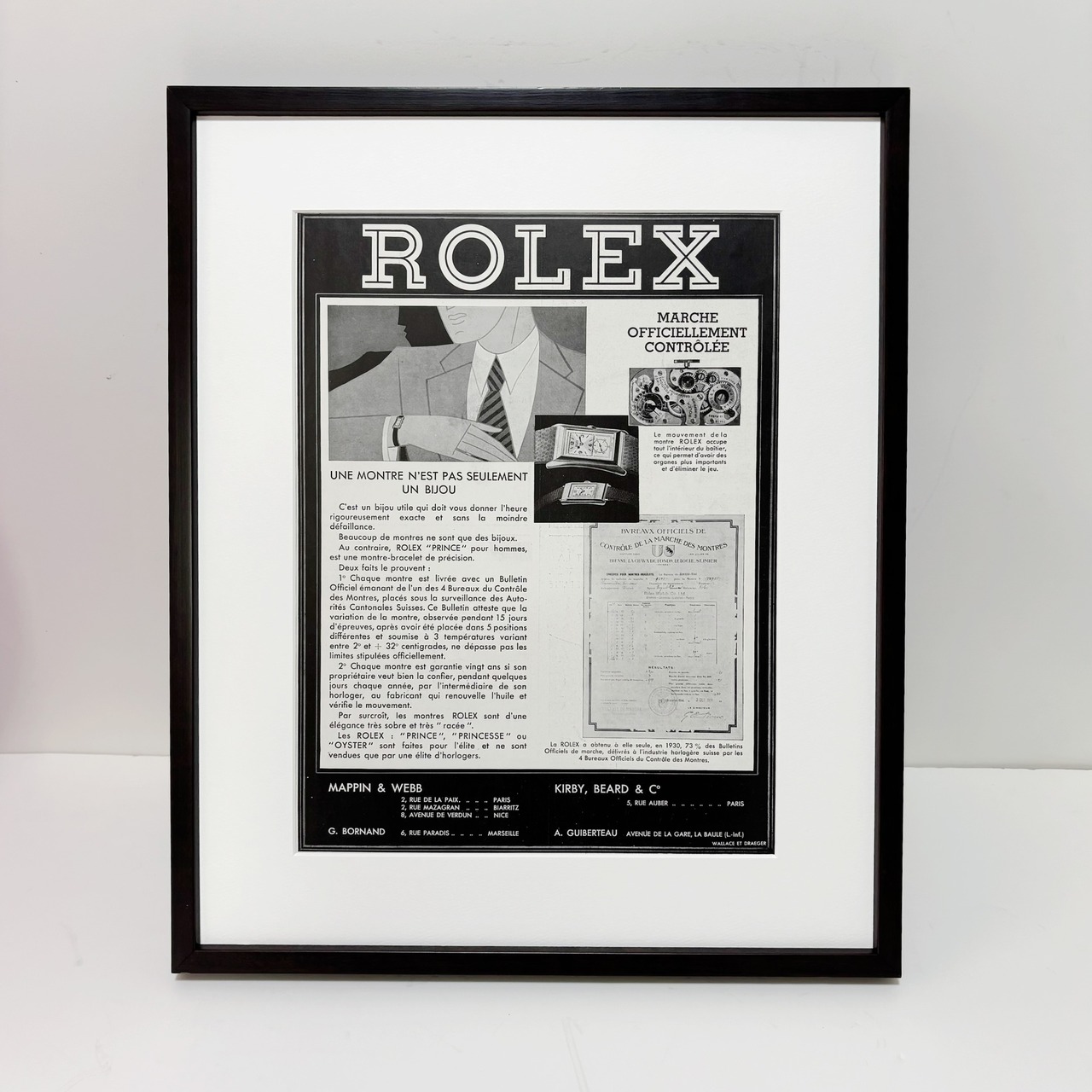 <1932 広告>Rolex ロレックス ポスター ヴィンテージ アートポスター フレーム付き 額縁 インテリア モダン おしゃれ かわいい 壁掛け ポップ レトロ モノトーン | Belle_ame ヴィンテージアートポスター
