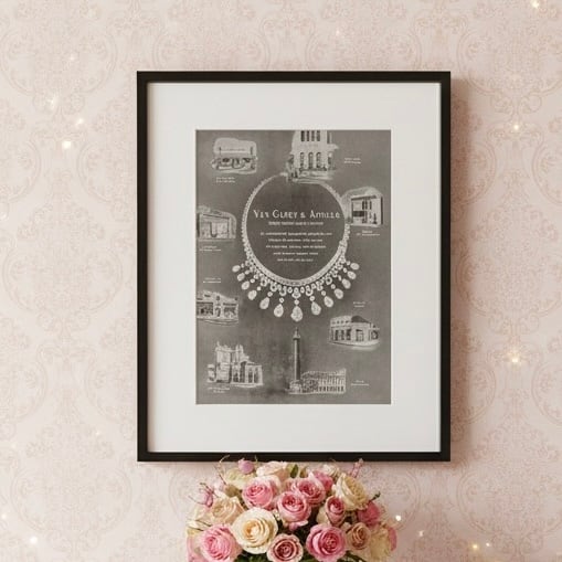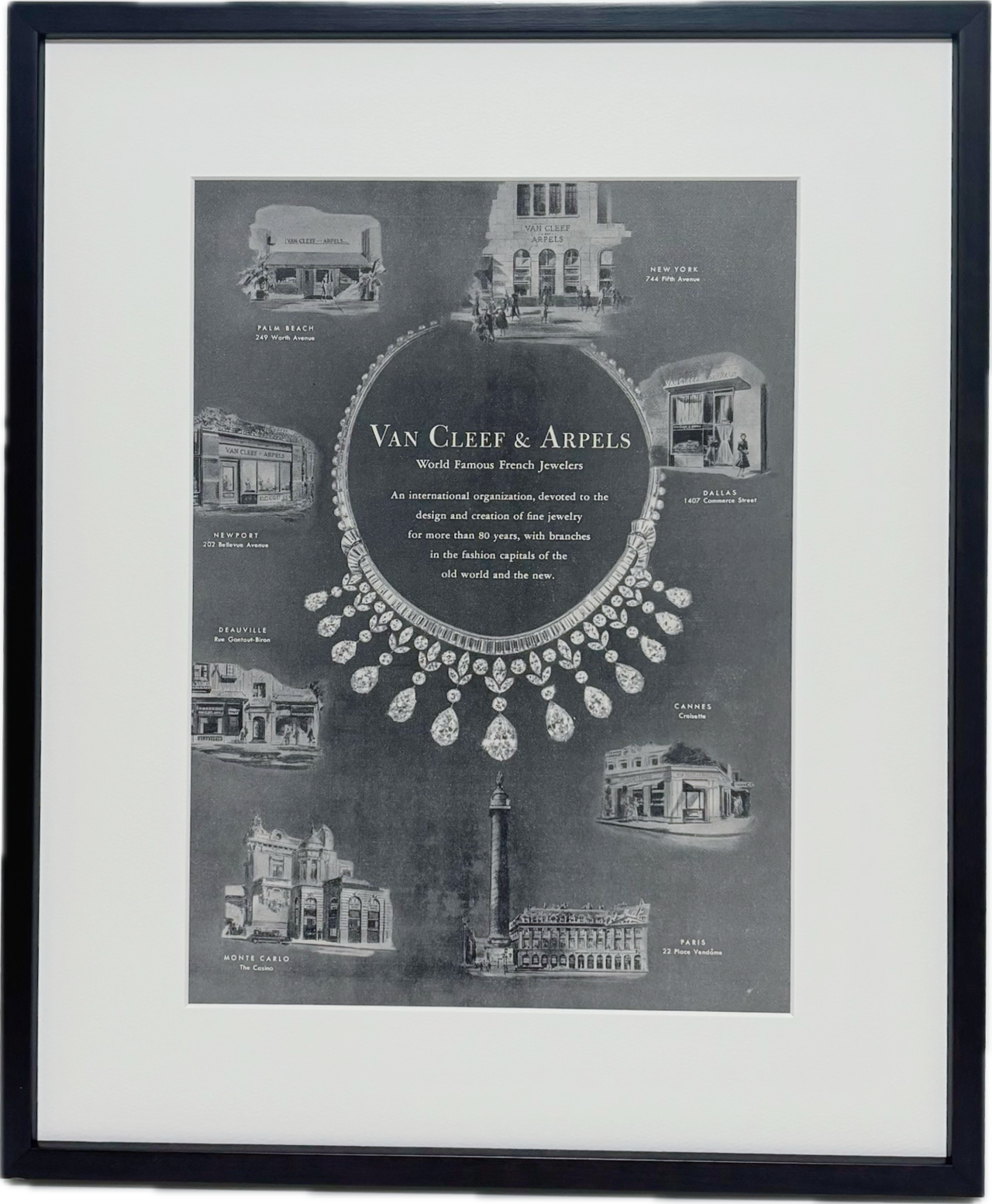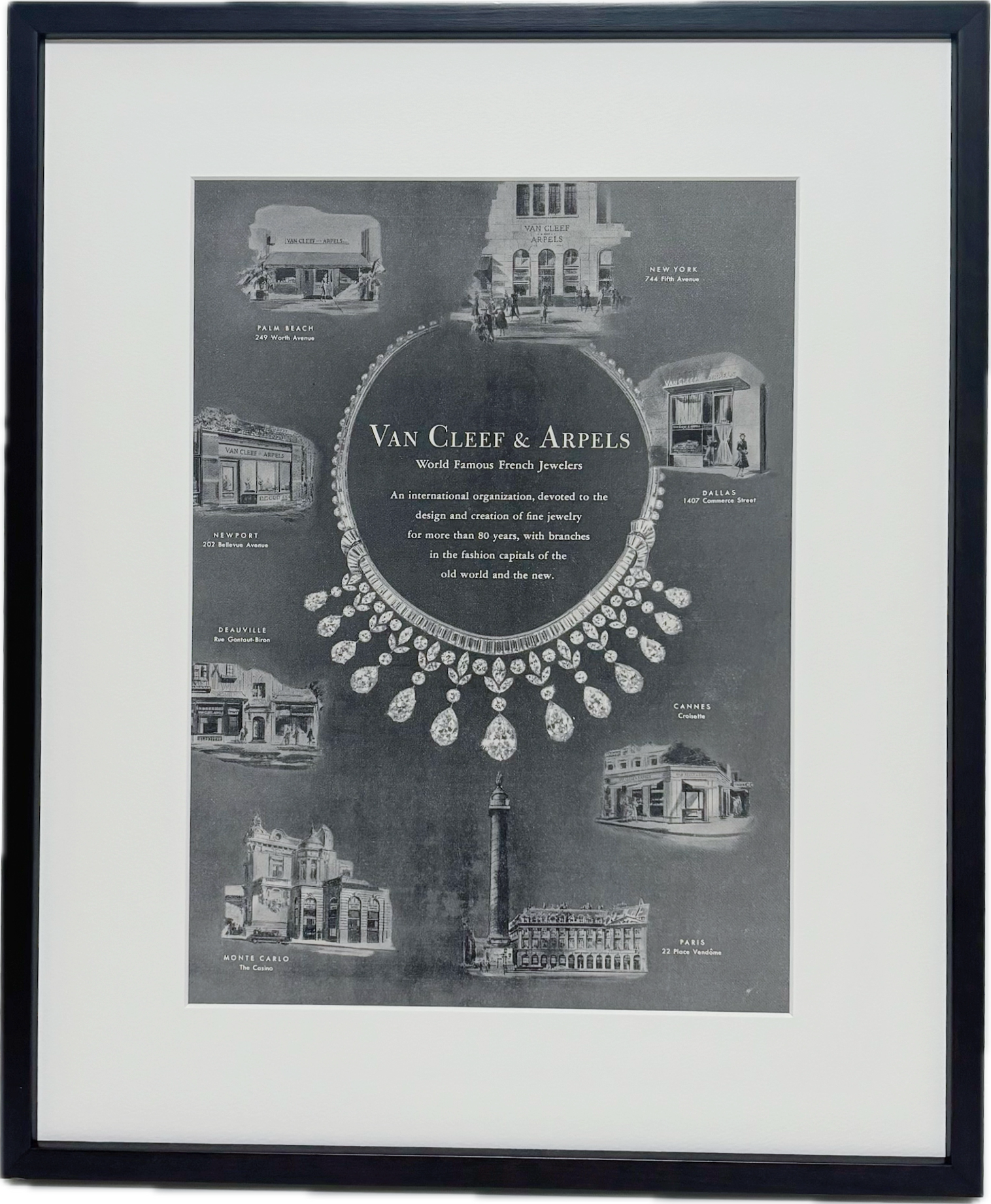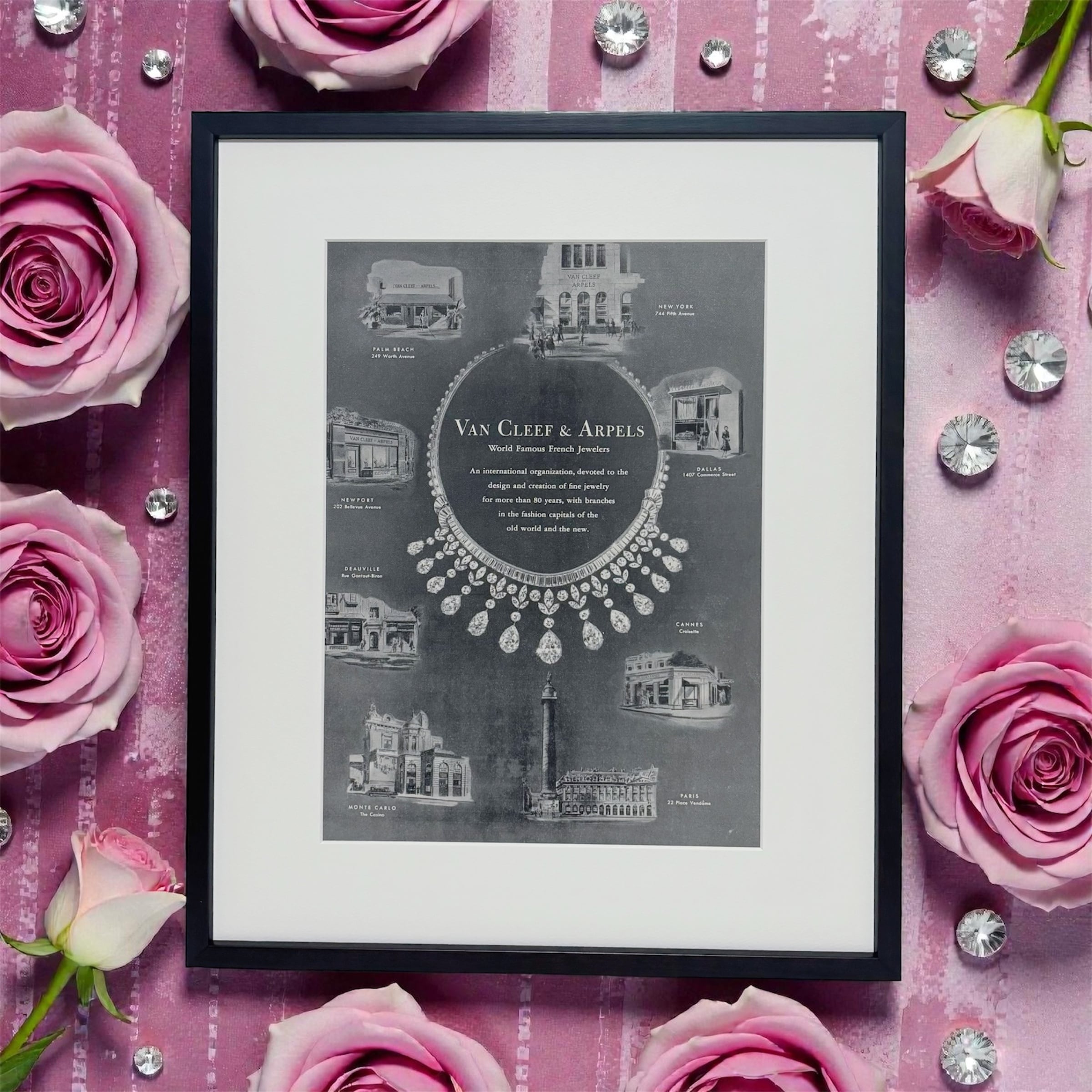 1952年にVan Cleef & Arpels(ヴァン クリーフ&アーペル)の広告を額装したヴィンテージアートポスター。