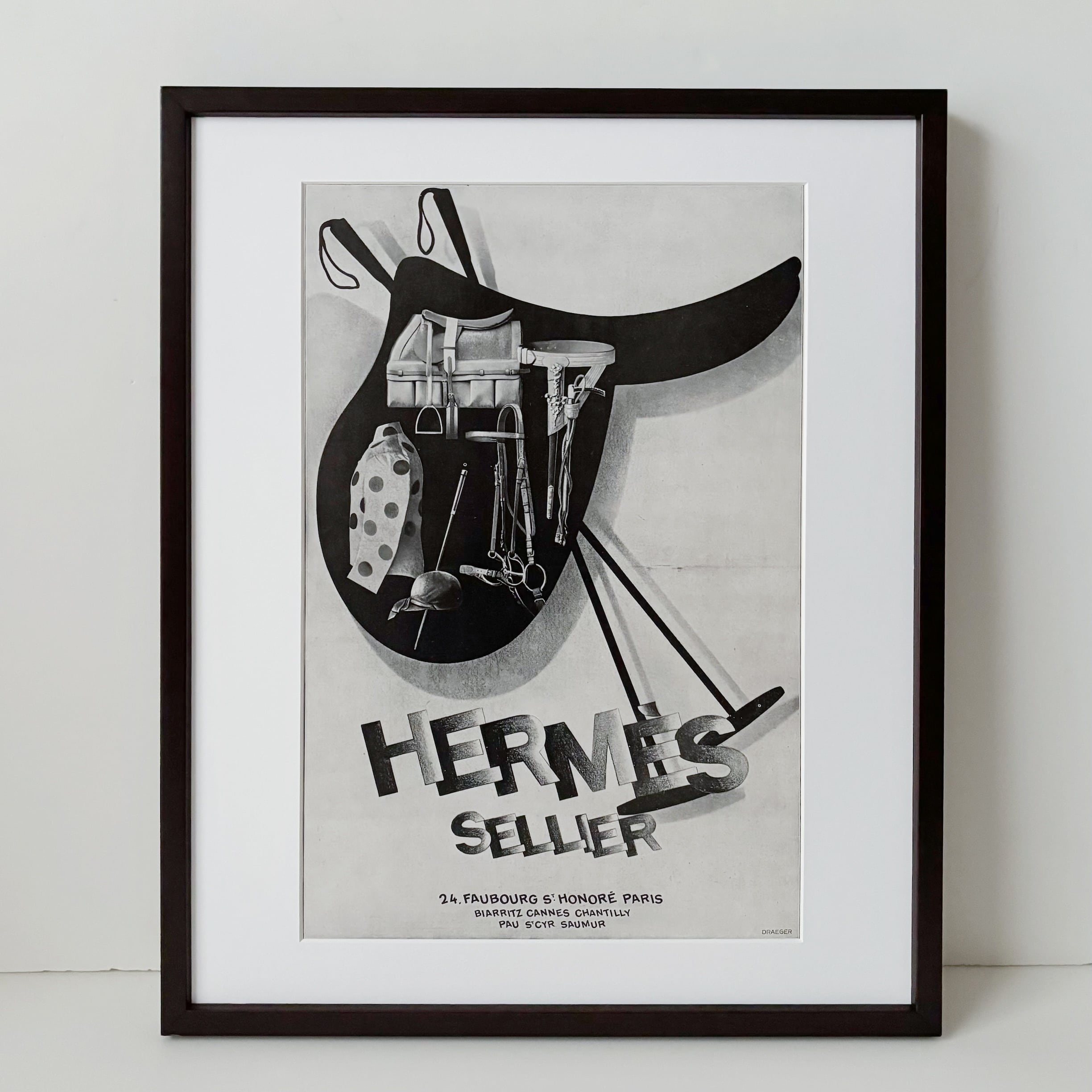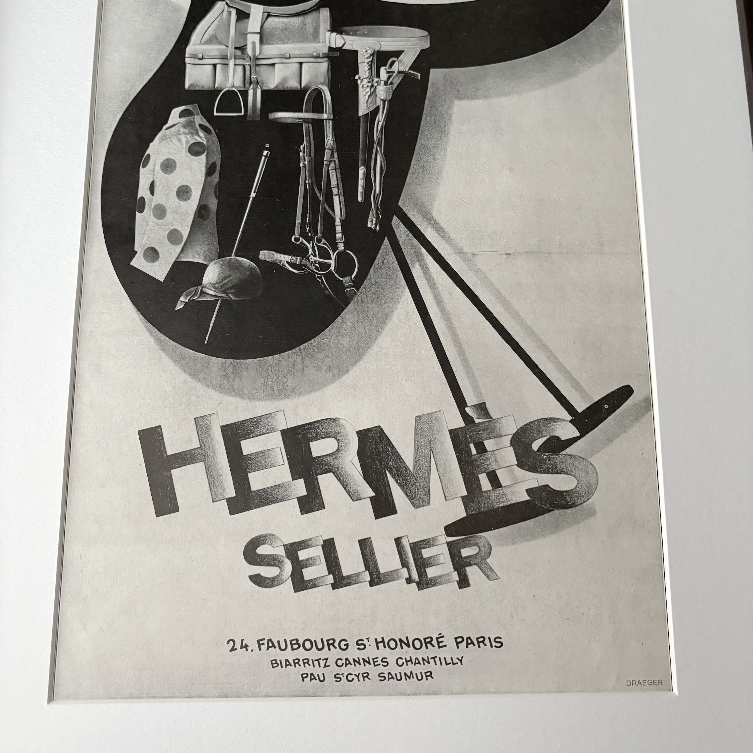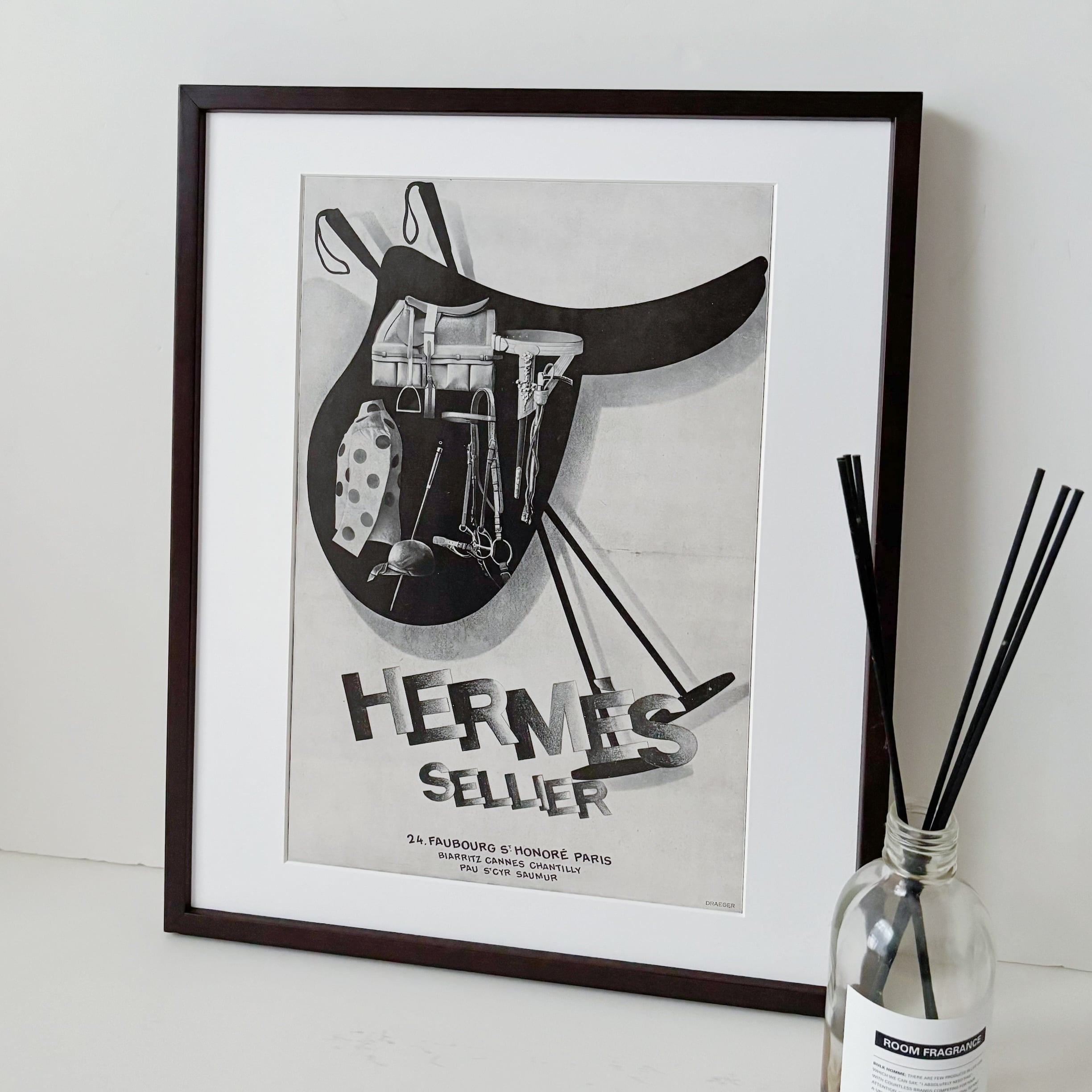 <1928 広告>HERMES エルメス ポスター ヴィンテージ アートポスター フレーム付き 額縁 インテリア モダン おしゃれ かわいい 壁掛け ポップ レトロ モノクロ