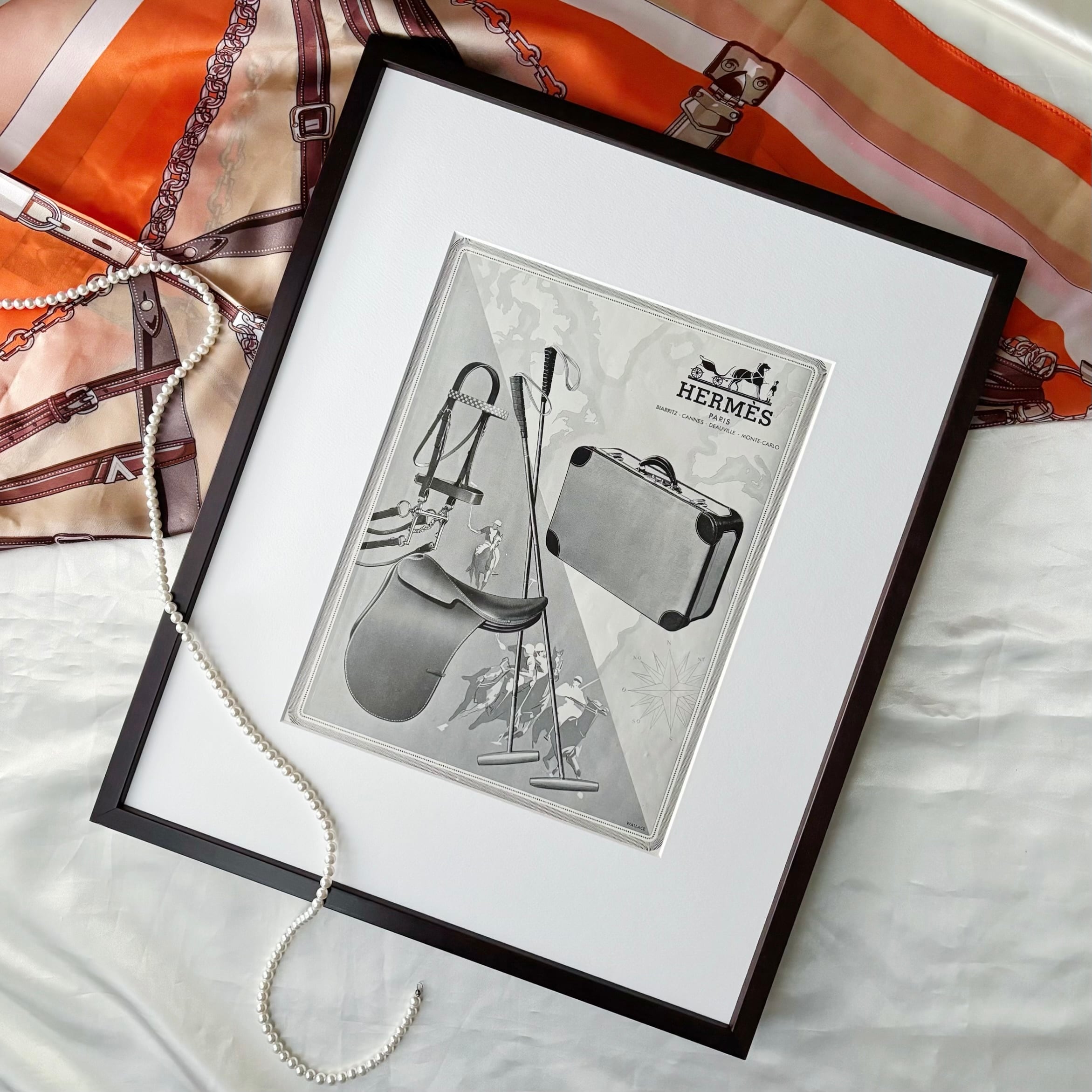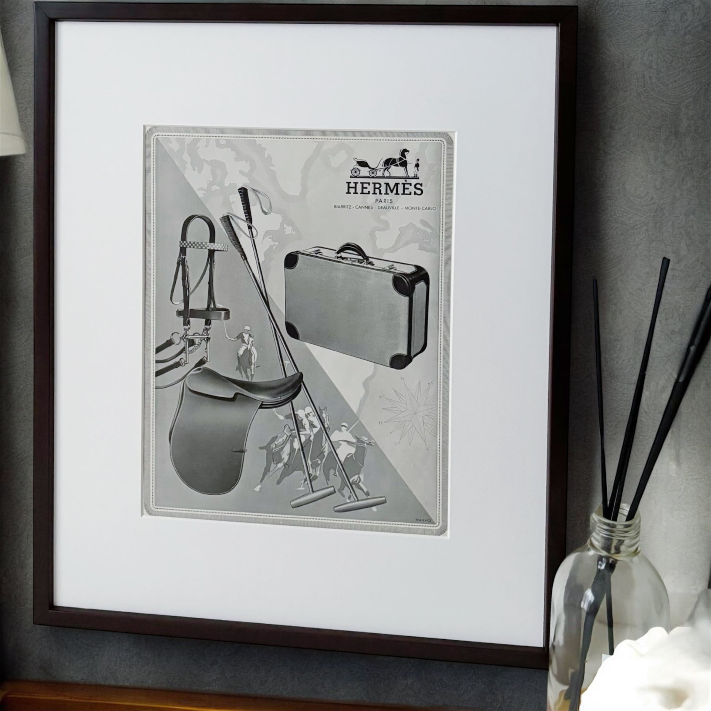 <1947 広告>HERMES エルメス ポスター ヴィンテージ アートポスター フレーム付き 額縁 インテリア モダン おしゃれ かわいい 壁掛け ポップ レトロ モノクロ | Belle_ame ヴィンテージアートポスター
