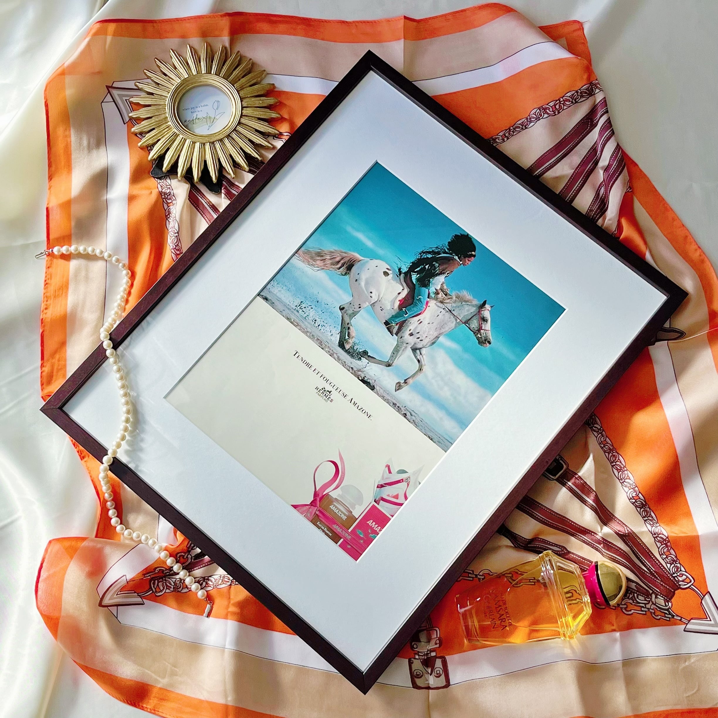 <1989 広告>HERMES エルメス 香水 ポスター ヴィンテージ アートポスター フレーム付き インテリア モダン おしゃれ かわいい 壁掛け ポップ レトロ 海 夏 馬