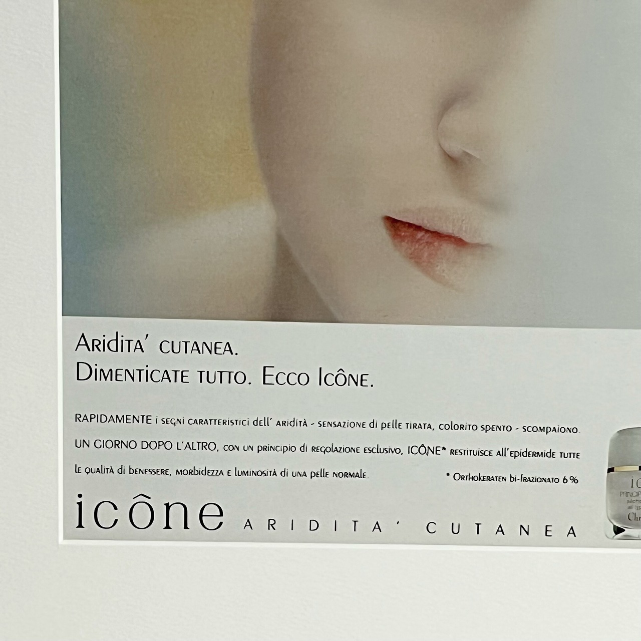 Diorの1990年代のコスメの広告で、女性の顔が靄に包まれたレトロなヴィンテージアートポスター。