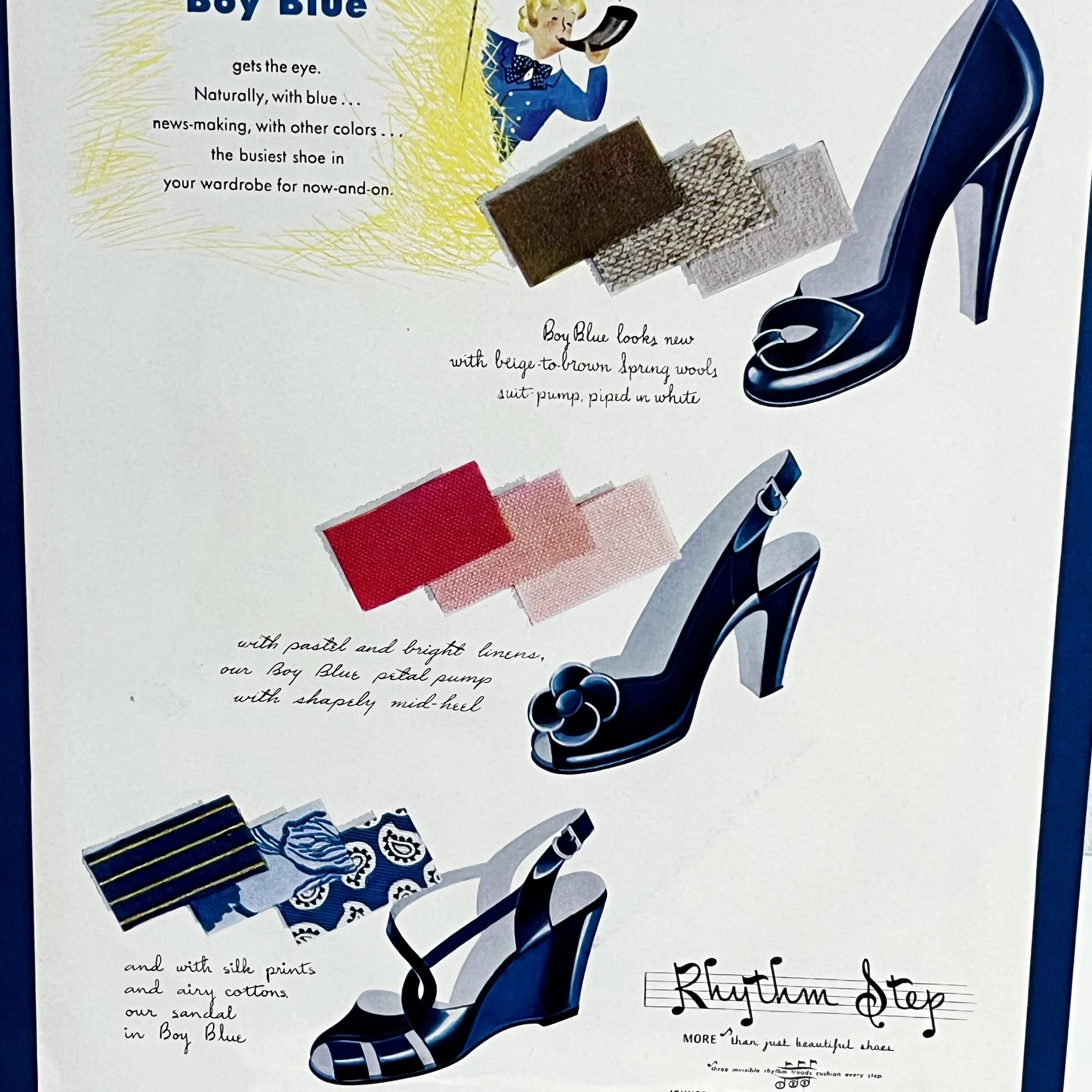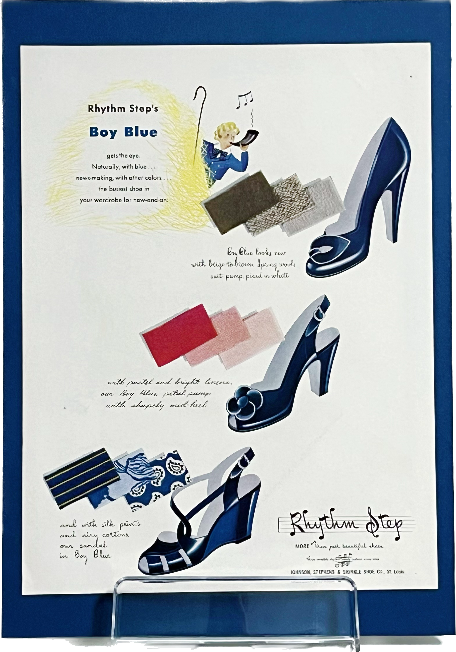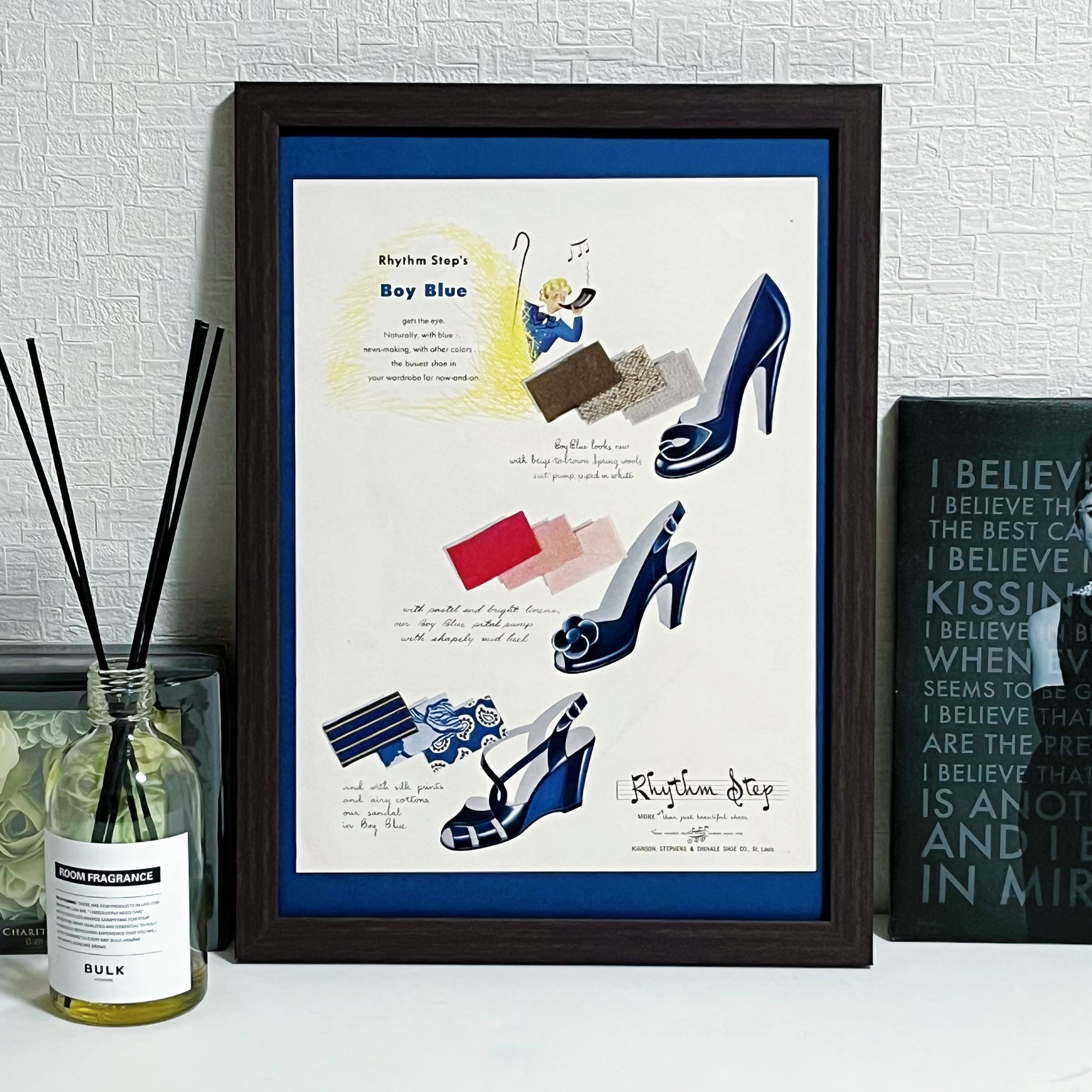 <1点もの>ポスター シート パンプス ヒール アドバタイジング ポスター ヴィンテージ アートポスター 広告 レトロ 青 おしゃれ ハンドメイド インテリア B4サイズ | Belle_ame ヴィンテージアートポスター
