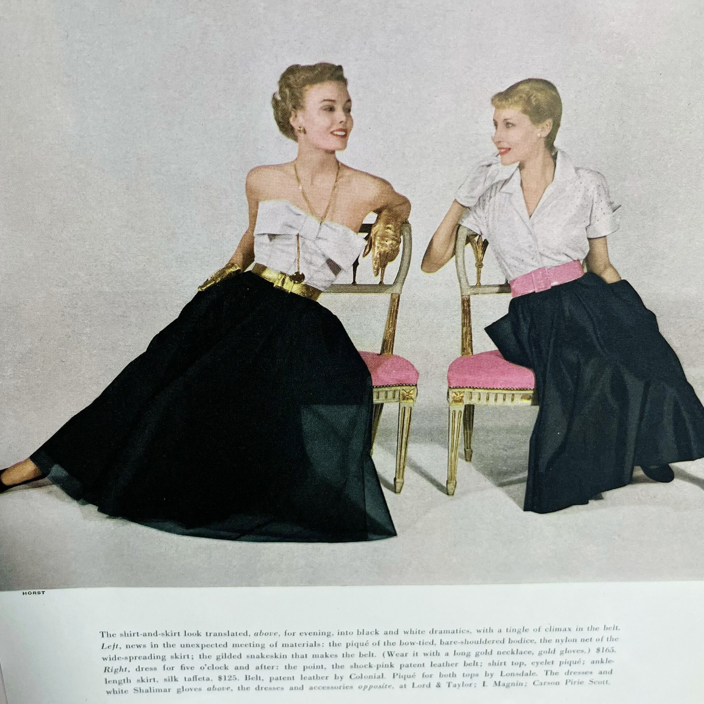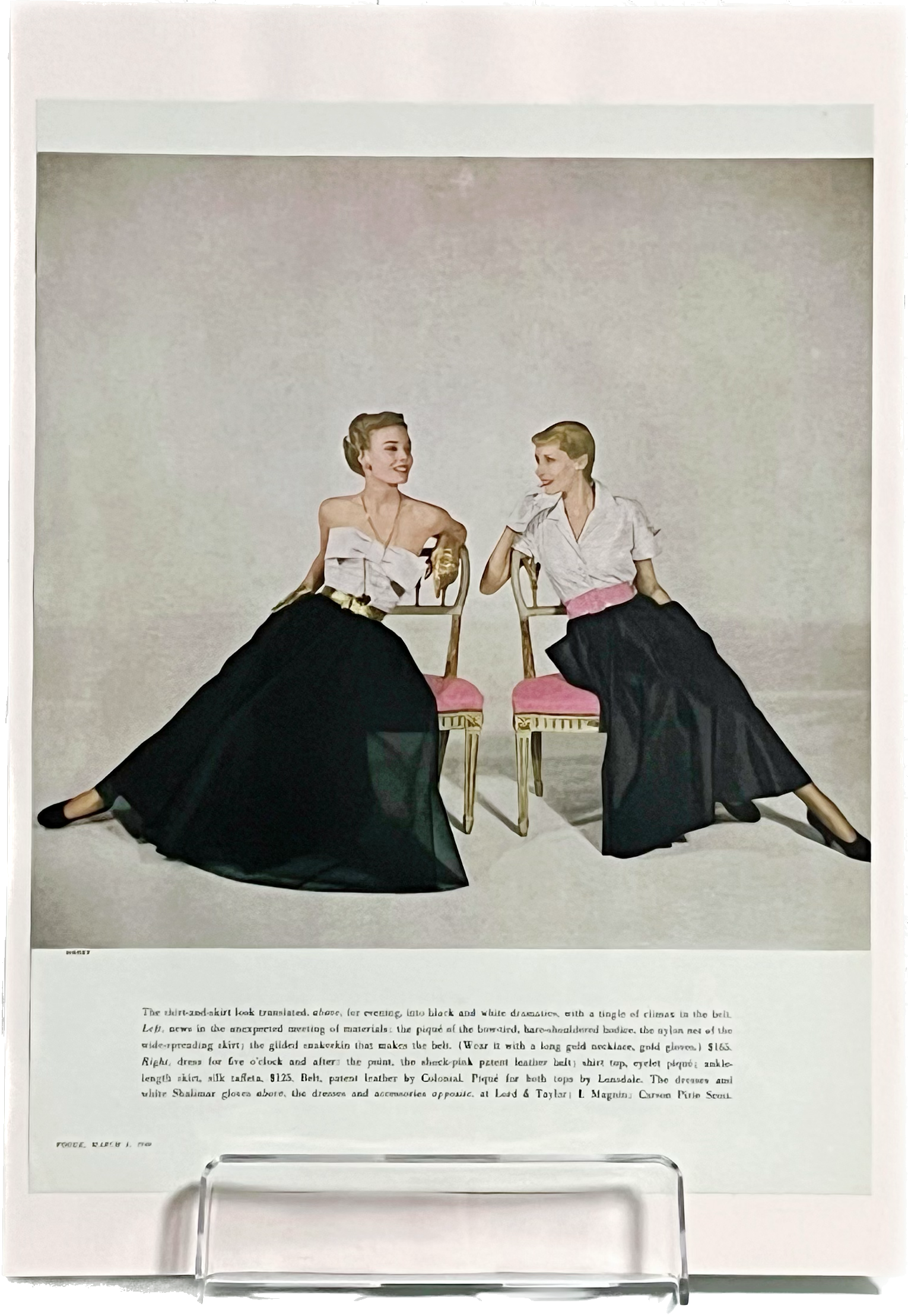 50年代の最先端モードを表現したもので、特にピンクの縁取りが優しい印象を与えます。