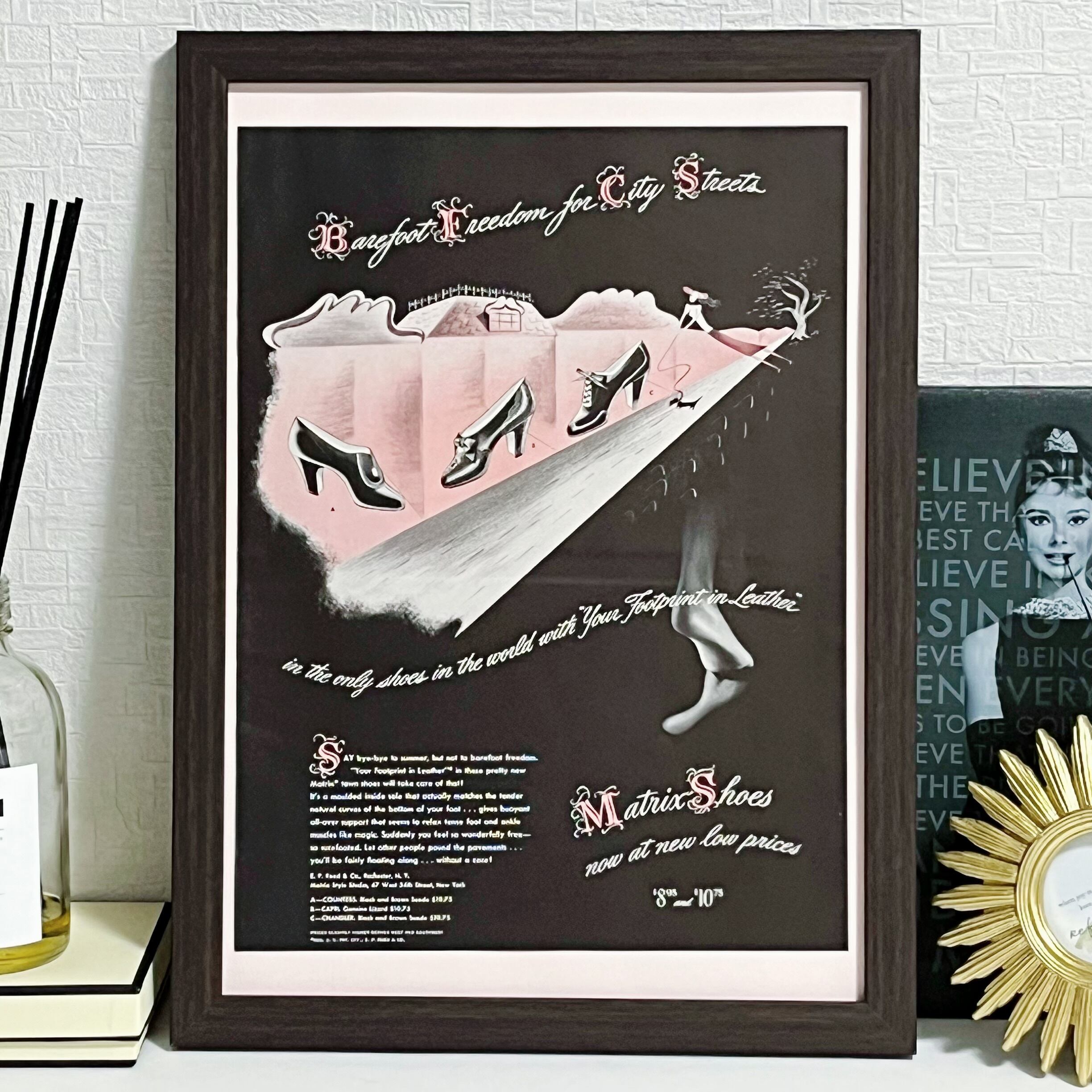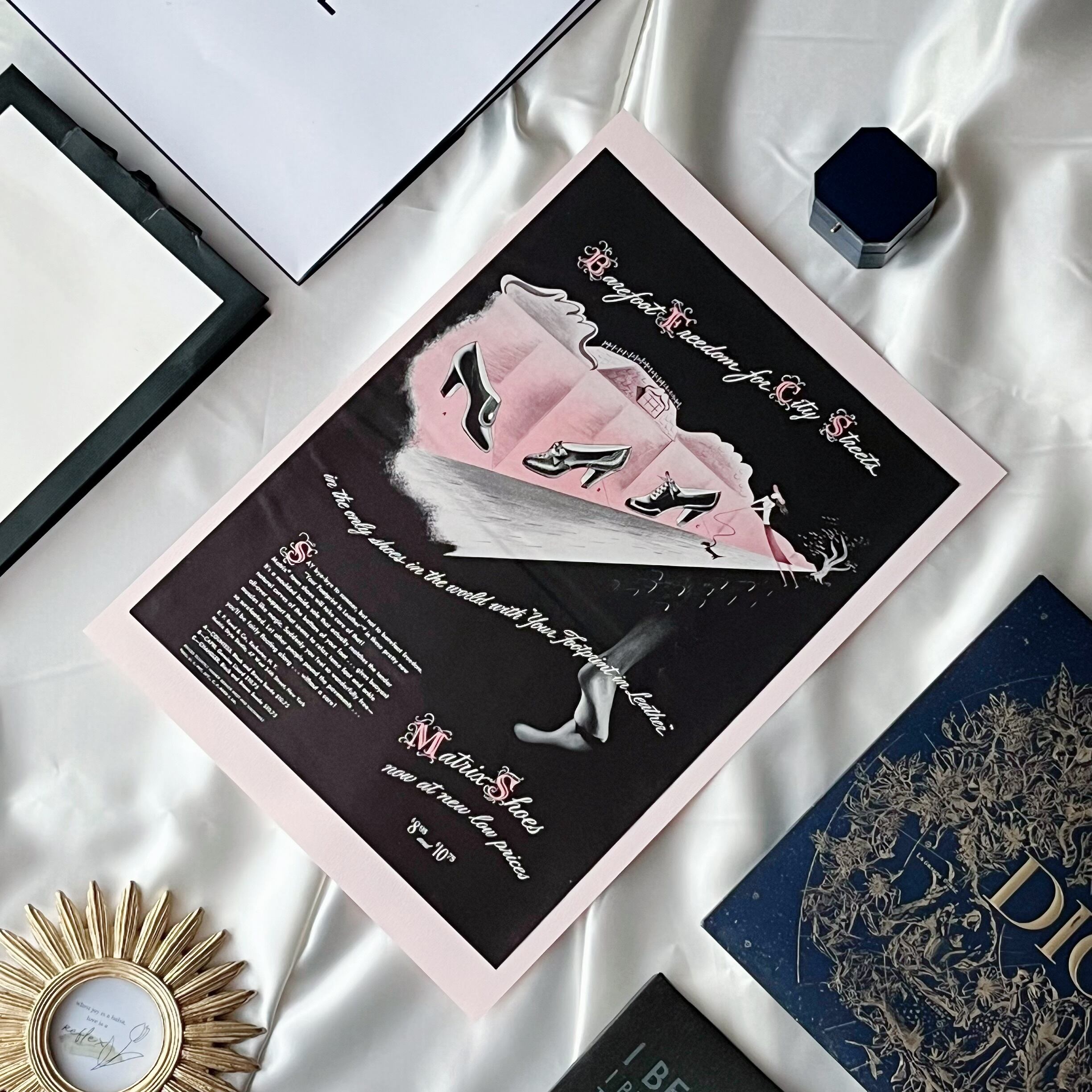 <1点もの>ポスター シート パンプス ヒール レトロ アドバタイジング ポスター ヴィンテージ アートポスター 広告 かわいい ピンク おしゃれ ハンドメイド インテリア B4サイズ | Belle_ame ヴィンテージアートポスター