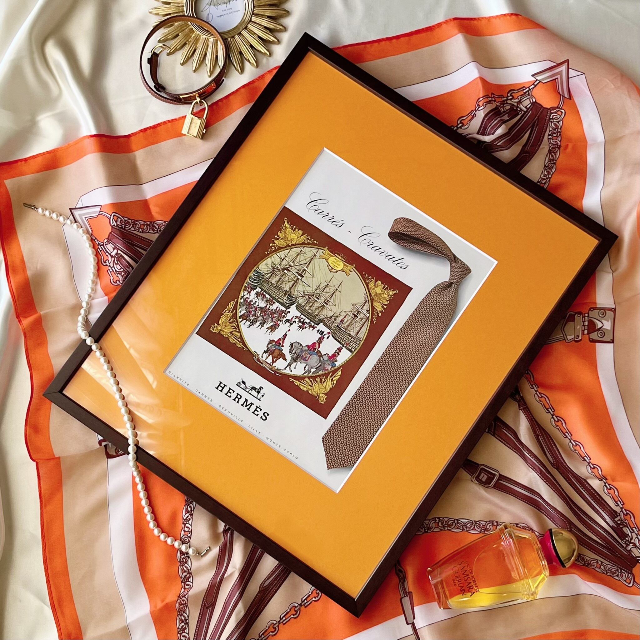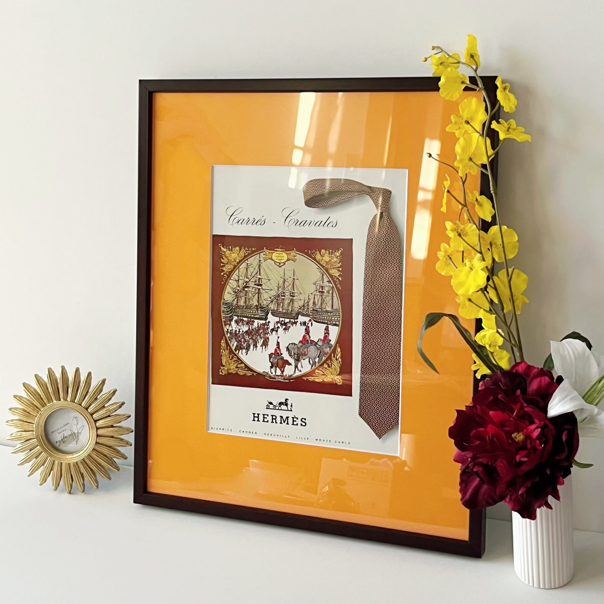 オレンジ色の額装のマットがポップに!華やかに!よりHermèsらしさを引き立てています。