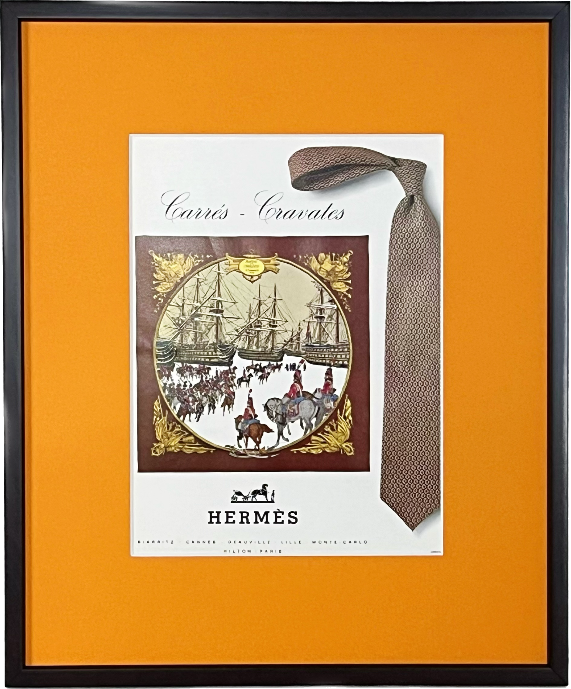 <1968 広告> HERMES エルメス カレ ネクタイ ポスター ヴィンテージ アートポスター フレーム付き インテリア モダン おしゃれ かわいい 壁掛け オレンジ ポップ レトロ スカーフ