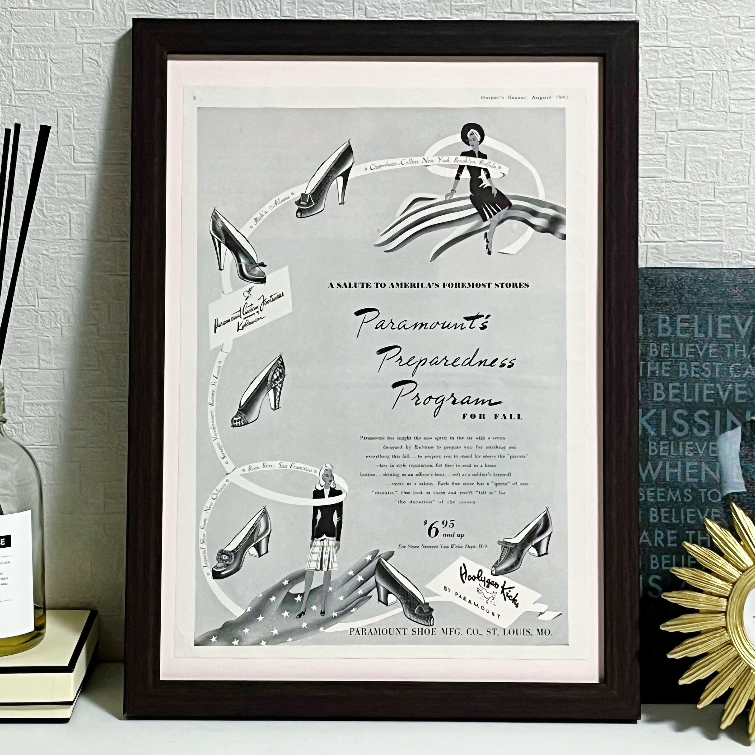 <1点もの>ポスター シート 靴 ヒール パンプス アドバタイジング ポスター ヴィンテージ アートポスター 広告 ピンク かわいい おしゃれ ハンドメイド インテリア B4サイズ | Belle_ame ヴィンテージアートポスター
