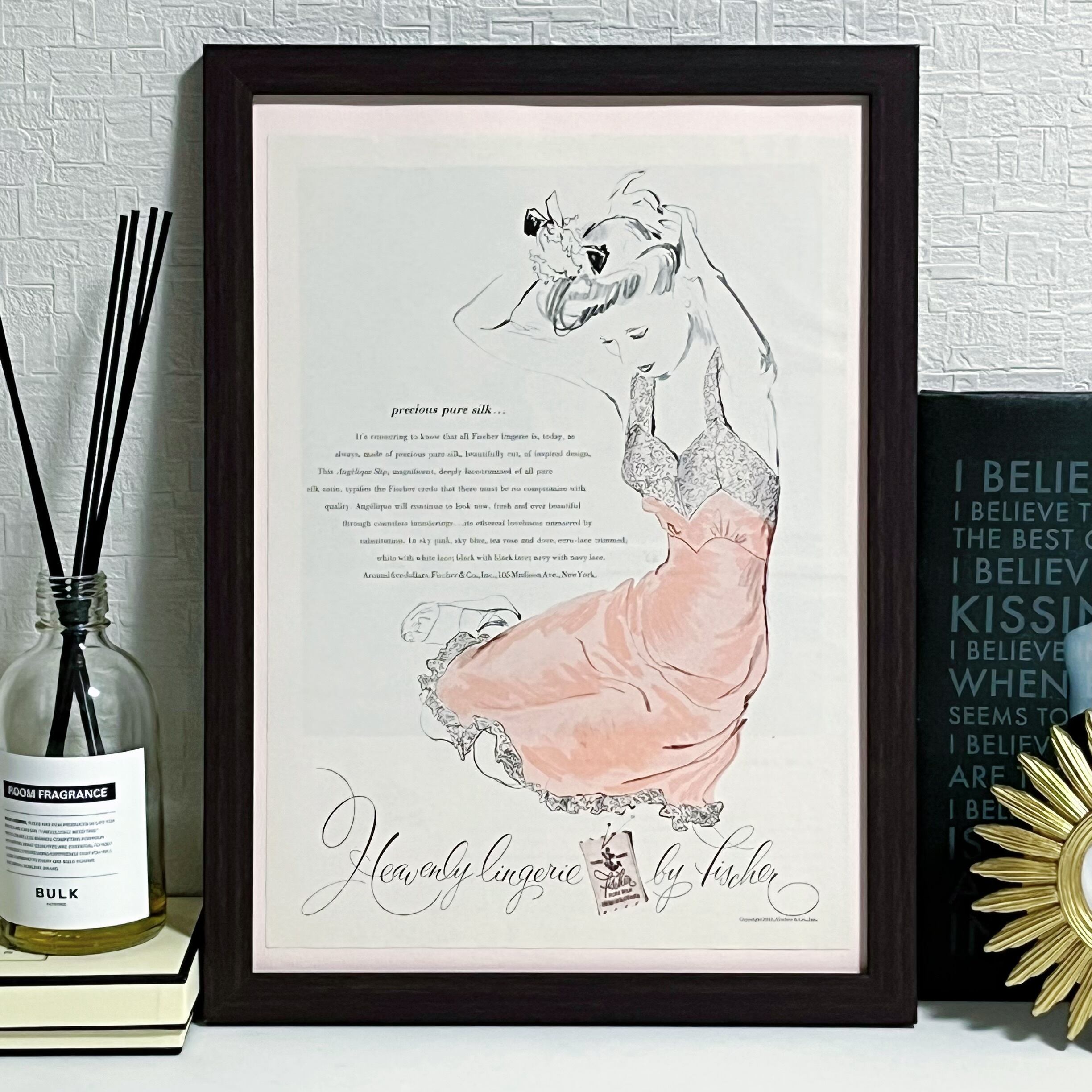 <1点もの>ポスター シート ランジェリー アドバタイジング ポスター ヴィンテージ アートポスター 広告 かわいい ピンク おしゃれ ハンドメイド インテリア B4サイズ | Belle_ame ヴィンテージアートポスター