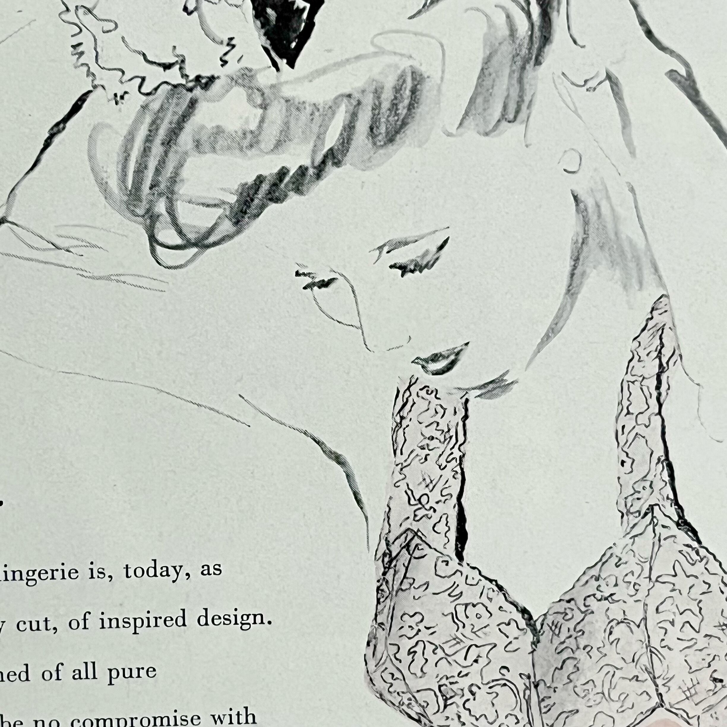 柔らかで温かみのある筆致で描かれたランジェリーのアドバタイジングポスター。