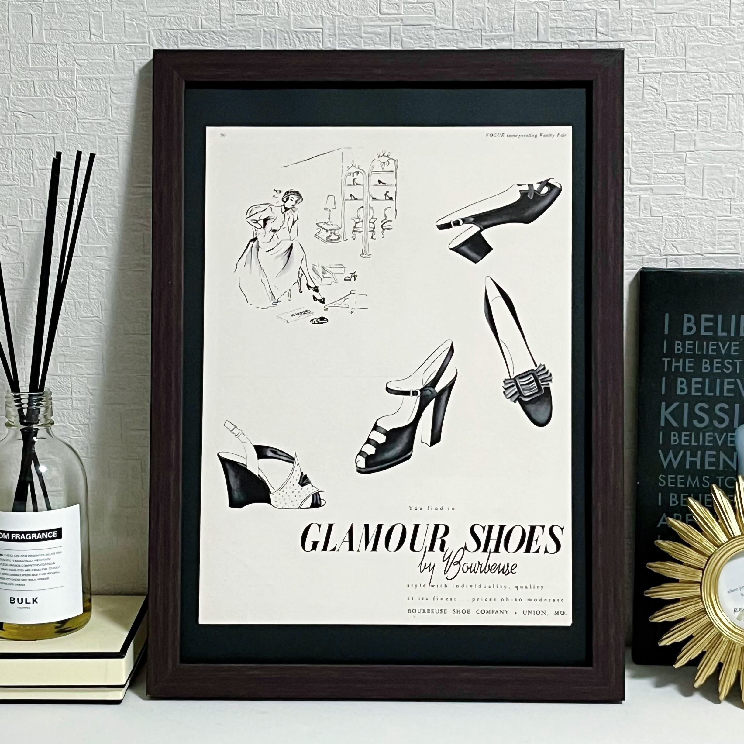 <1点もの>ポスター シート パンプス ヒール アドバタイジング ポスター ヴィンテージ アートポスター 広告 モダン 黒 おしゃれ ハンドメイド インテリア B4サイズ | Belle_ame ヴィンテージアートポスター