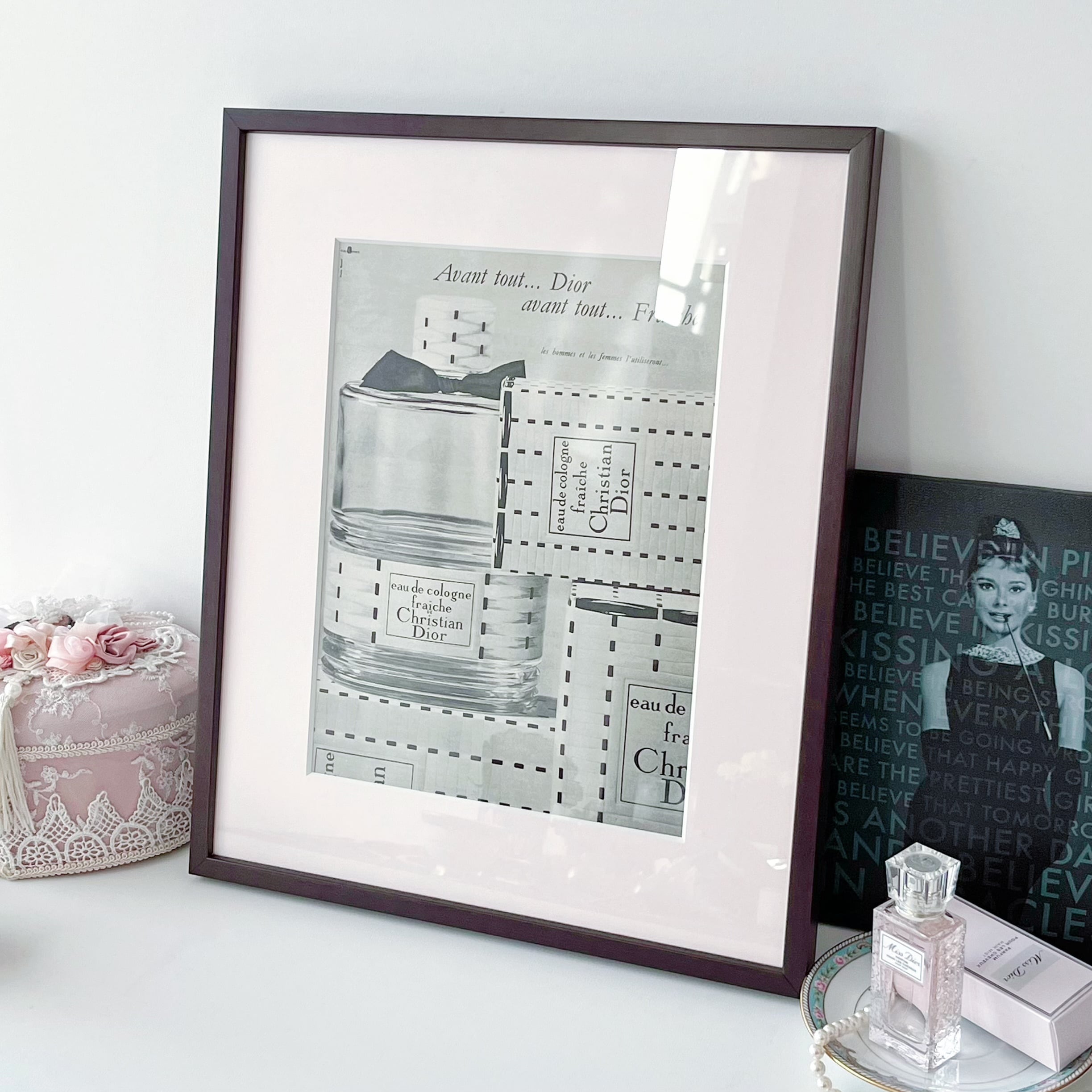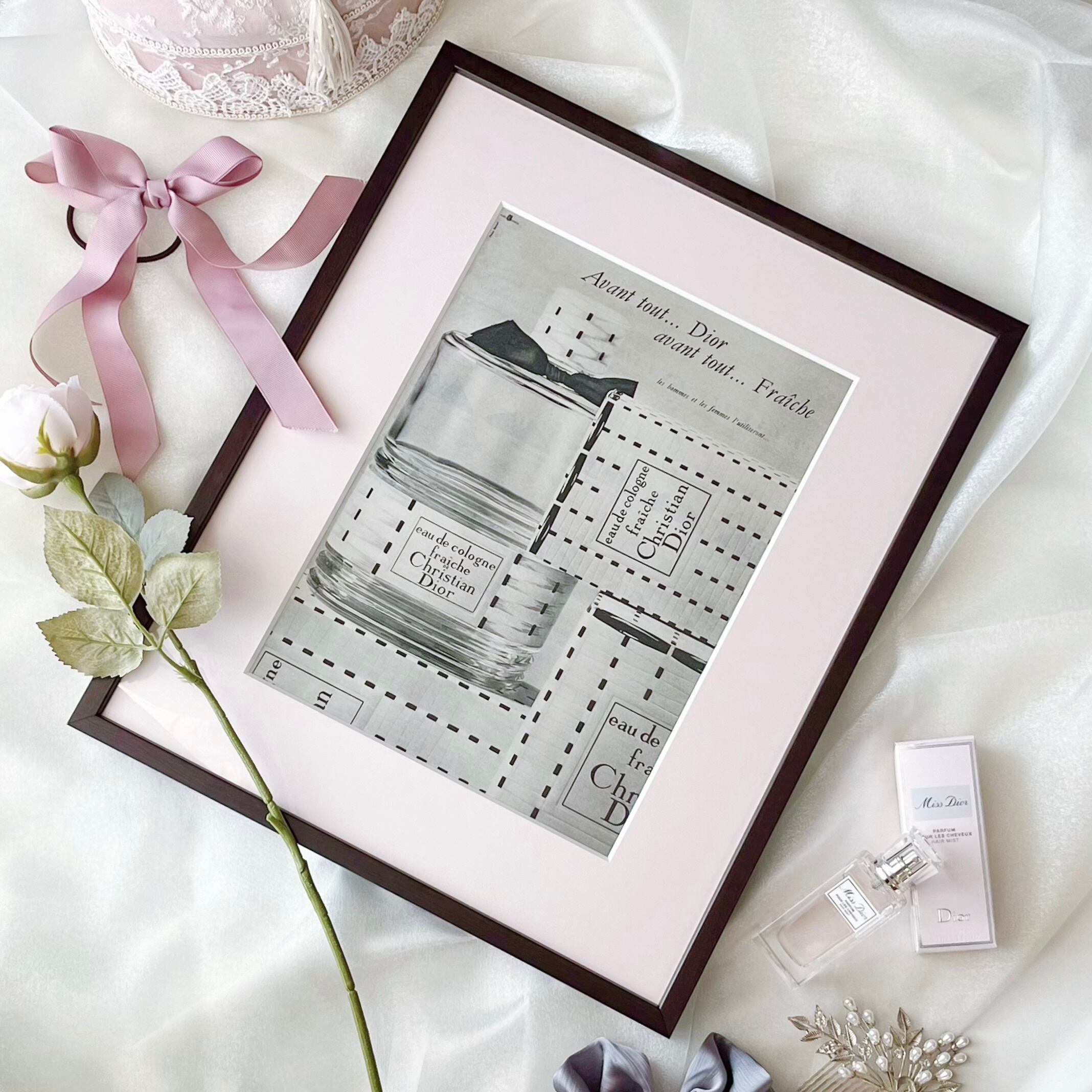 <1962 広告> Dior ディオール 香水 ポスター ヴィンテージ アートポスター フレーム付き インテリア モダン おしゃれ かわいい 壁掛け ポップ レトロ ピンク モノクロ モノトーン | Belle_ame ヴィンテージアートポスター