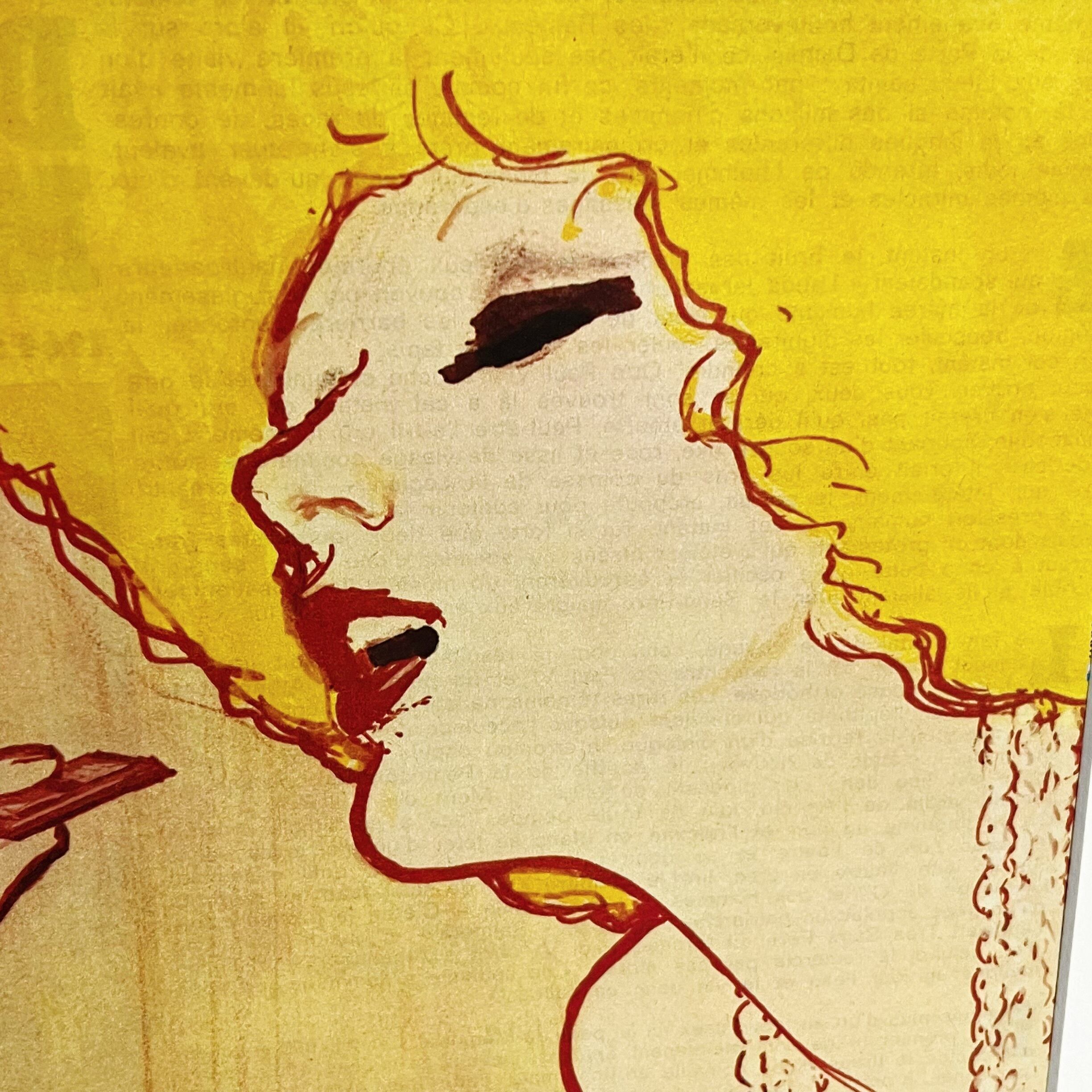 明るいポップな色使いとビタミンカラーが特徴で、口を開ける女性がどこかエロティック。