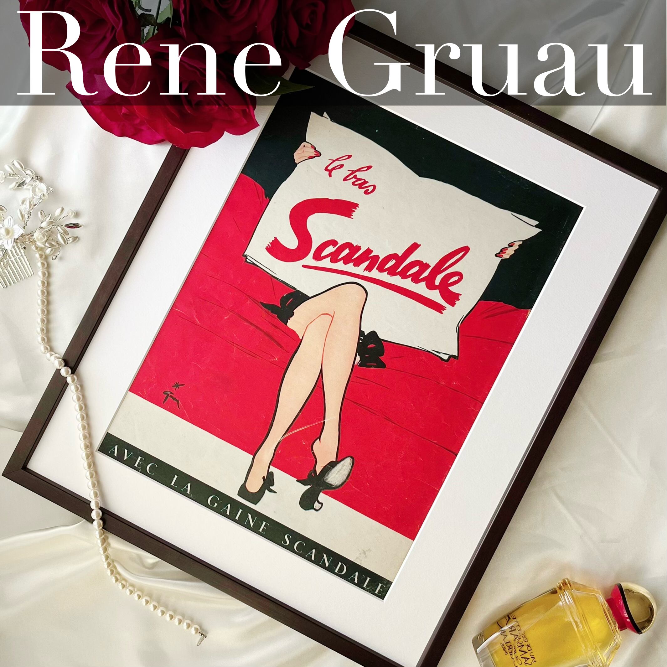 <1953 広告>Rene Gruau ルネ グリュオ scandale アドバタイジング ポスター ヴィンテージ アートポスター 額縁付き