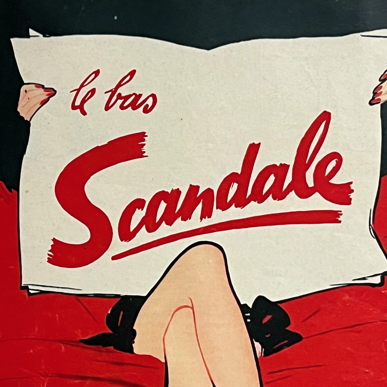 1940~1950年代にパリのファッション雑誌で活躍したイラストレーター、Gruau(グリュオ)により描かれた、Scandaleのヴィンテージアートポスター。