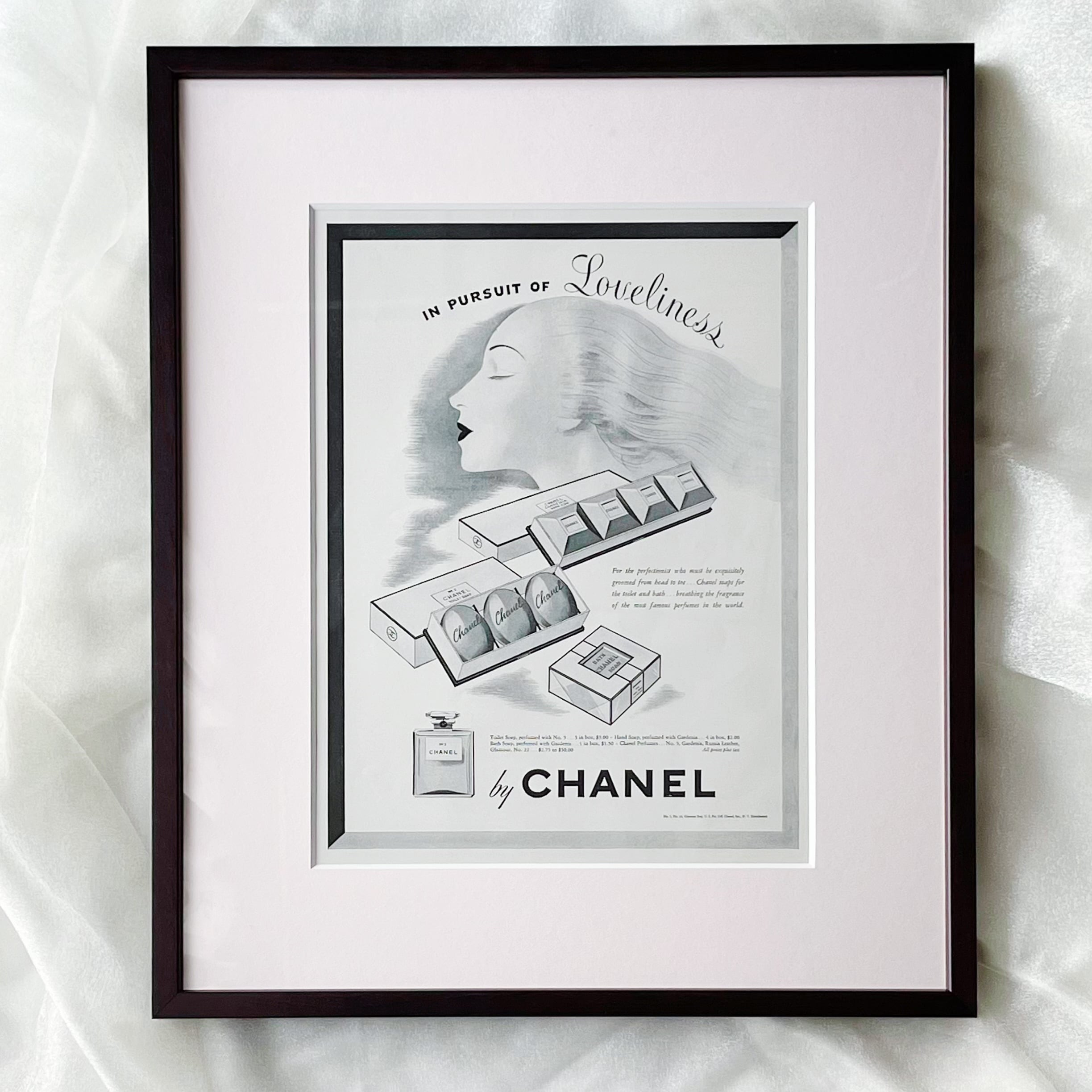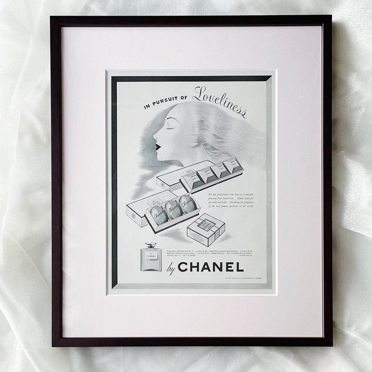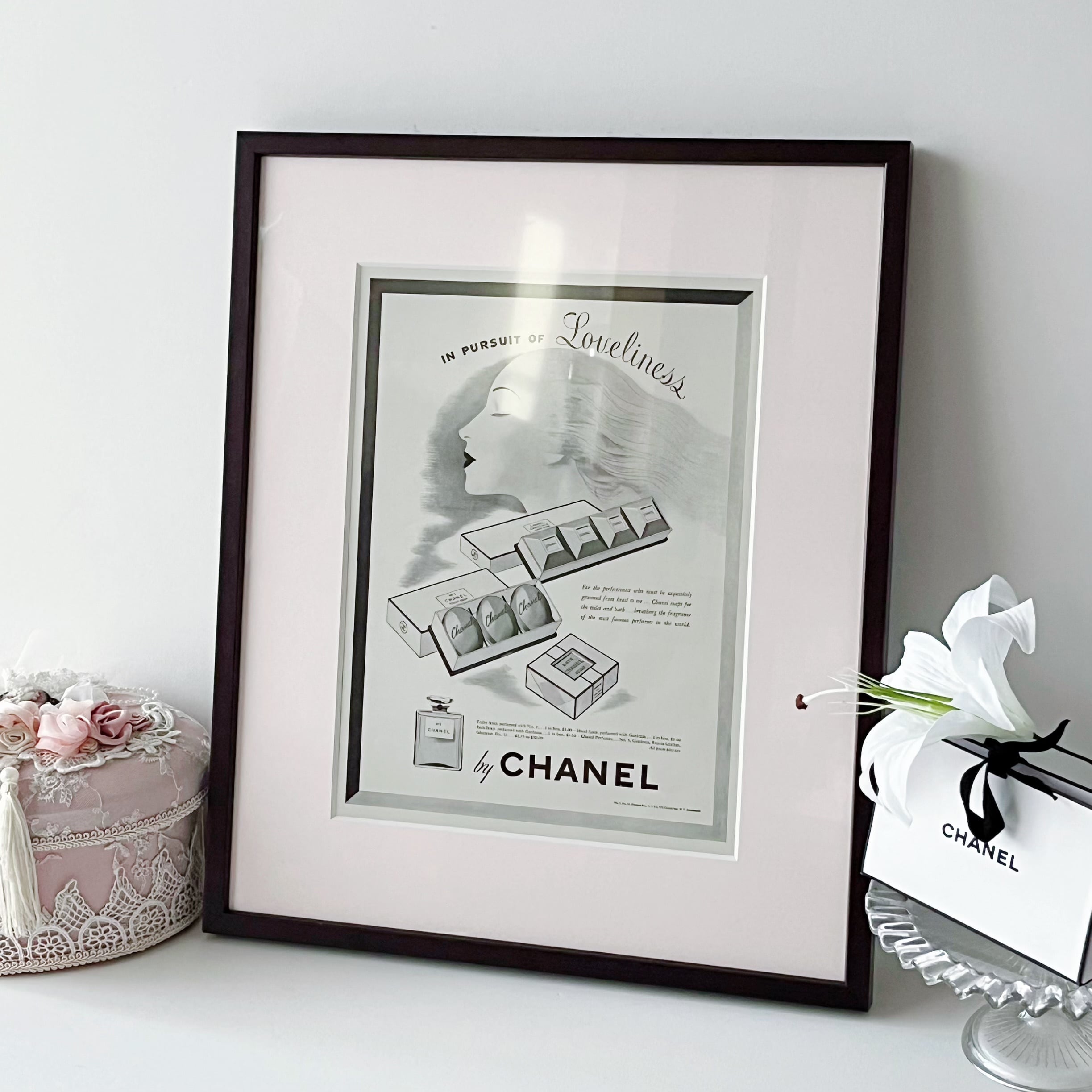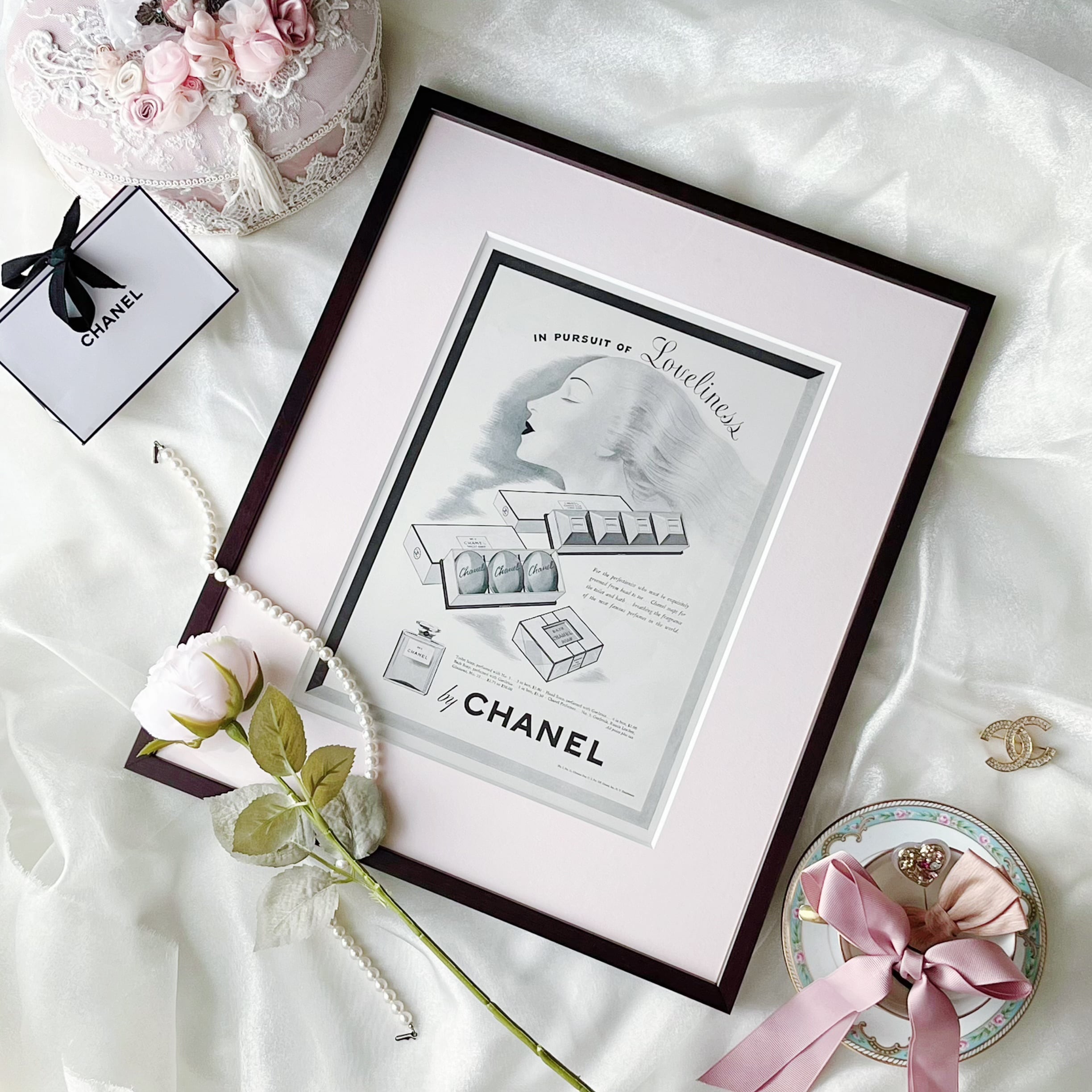 <1942 広告> CHANEL シャネル ポスター ヴィンテージ アートポスター フレーム付き 額縁 インテリア モダン おしゃれ かわいい 壁掛け ポップ レトロ モノクロ モノトーン ピンク 女性 | Belle_ame ヴィンテージアートポスター