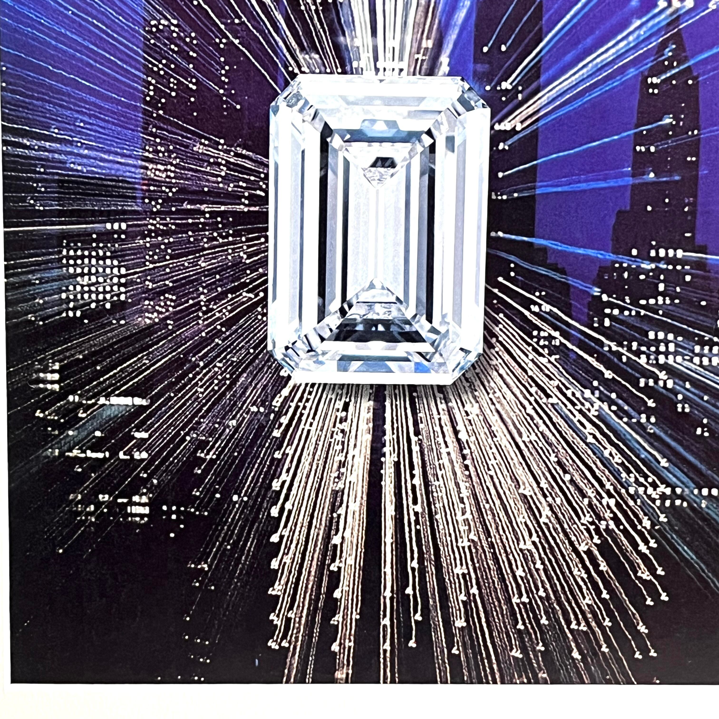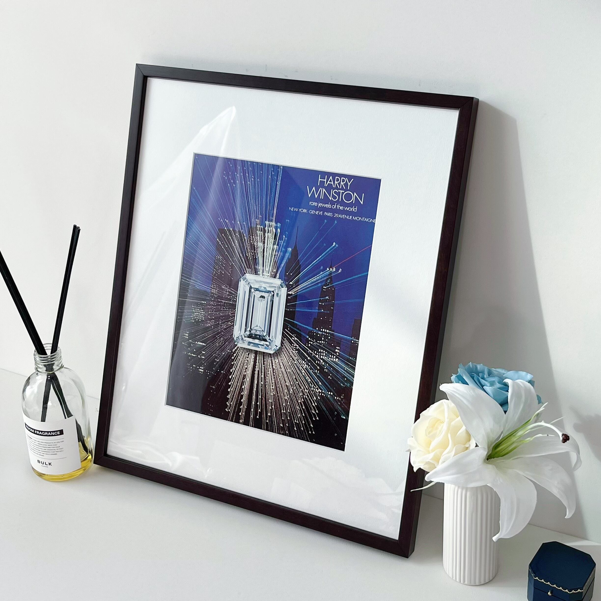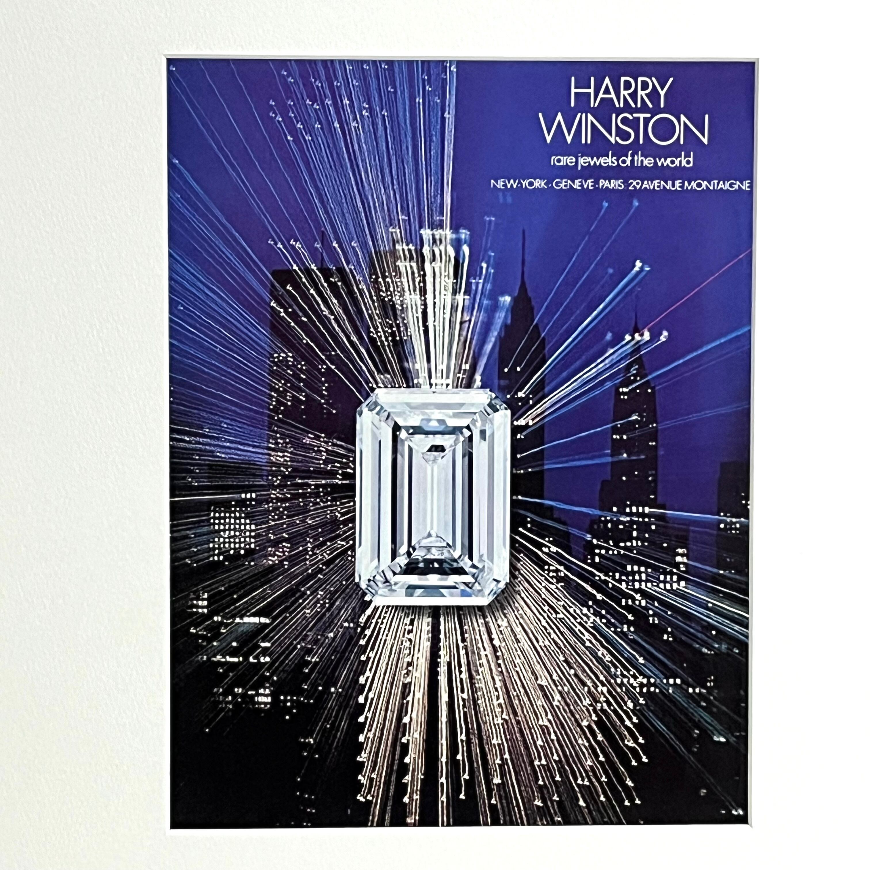 夜の都会の光とダイヤモンドの輝きが美しい、ハリーウィンストンのレトロなヴインテージアートポスター。
