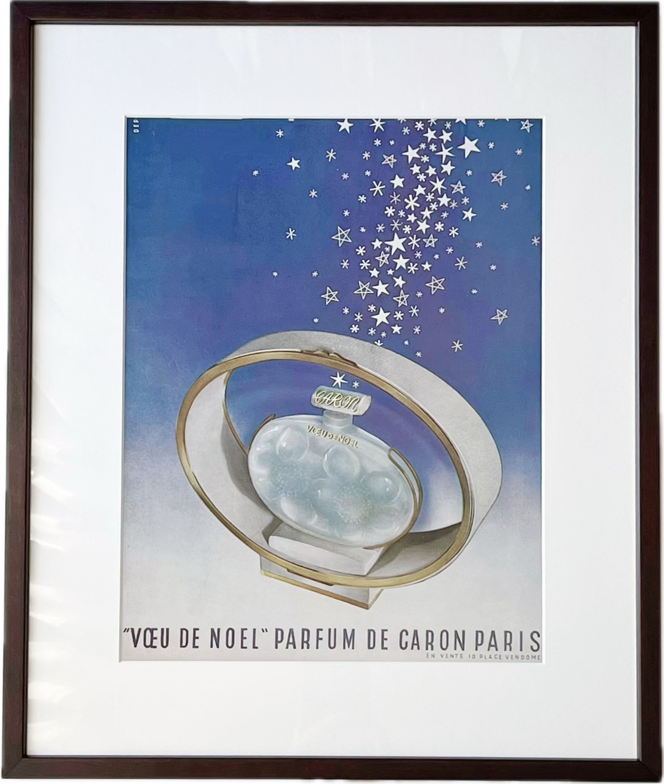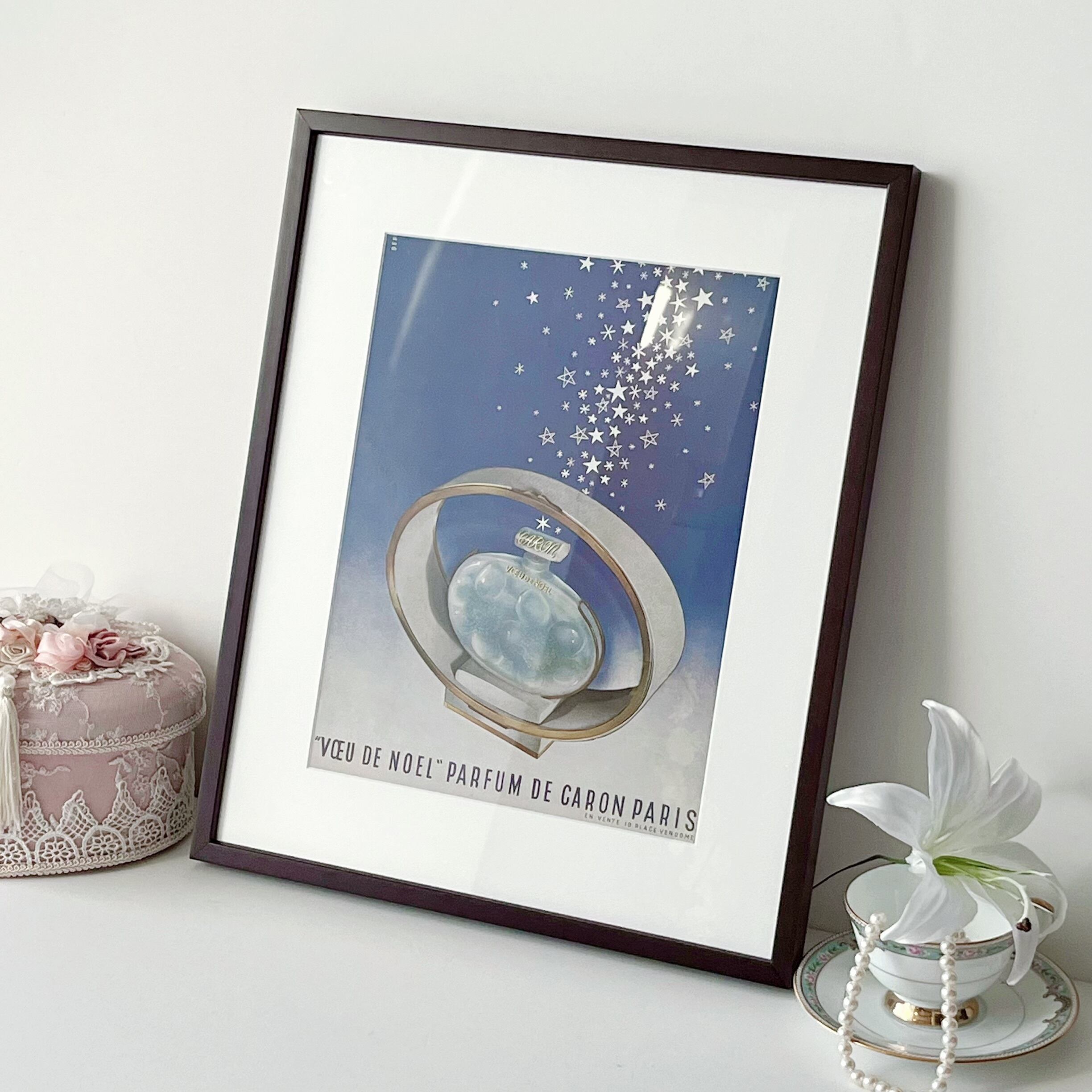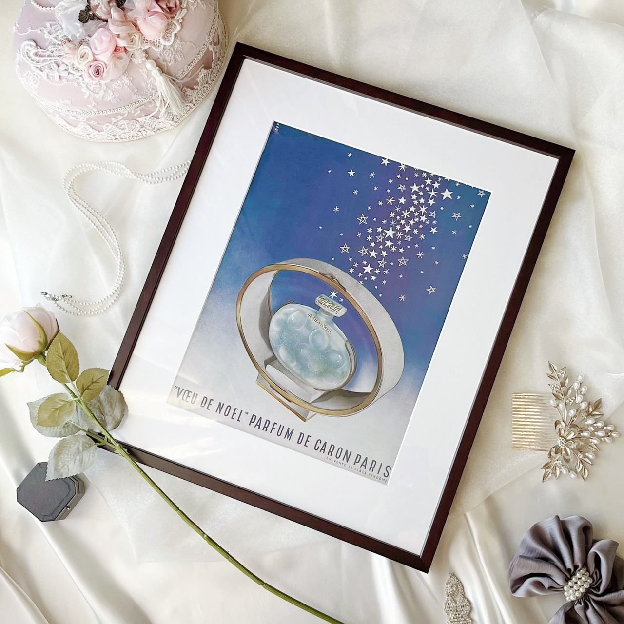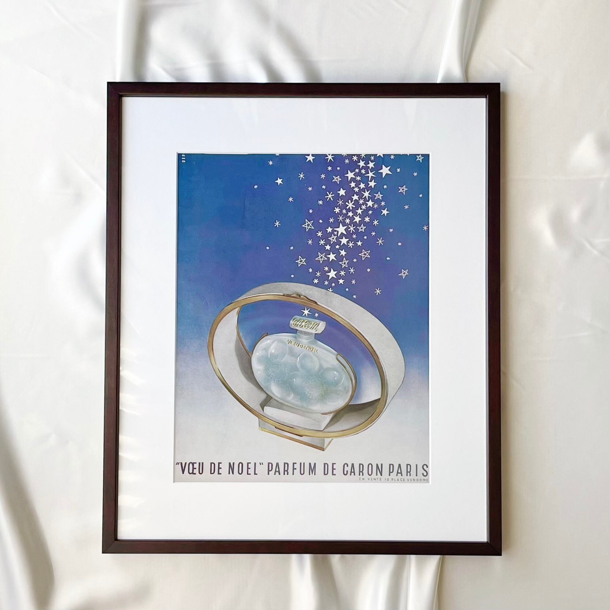 <1946 広告>CARON キャロン ヴィンテージ ビンテージ アートポスター 額縁 フレーム付き インテリア モダン レトロ おしゃれ かわいい 壁掛け フランス ポップ 青