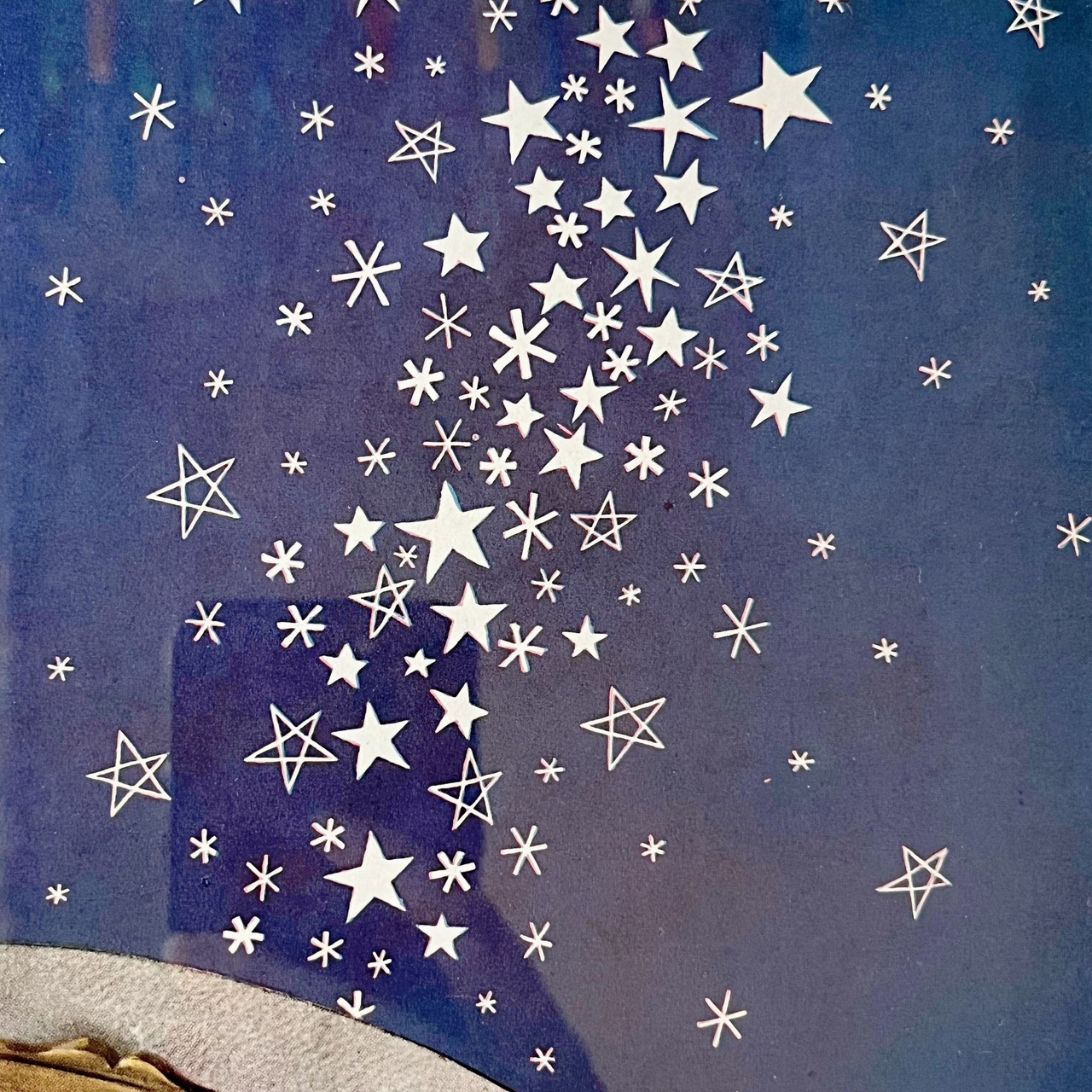星降る夜空をバックに描かれたCaronのレトロなヴィンテージアートポスター。