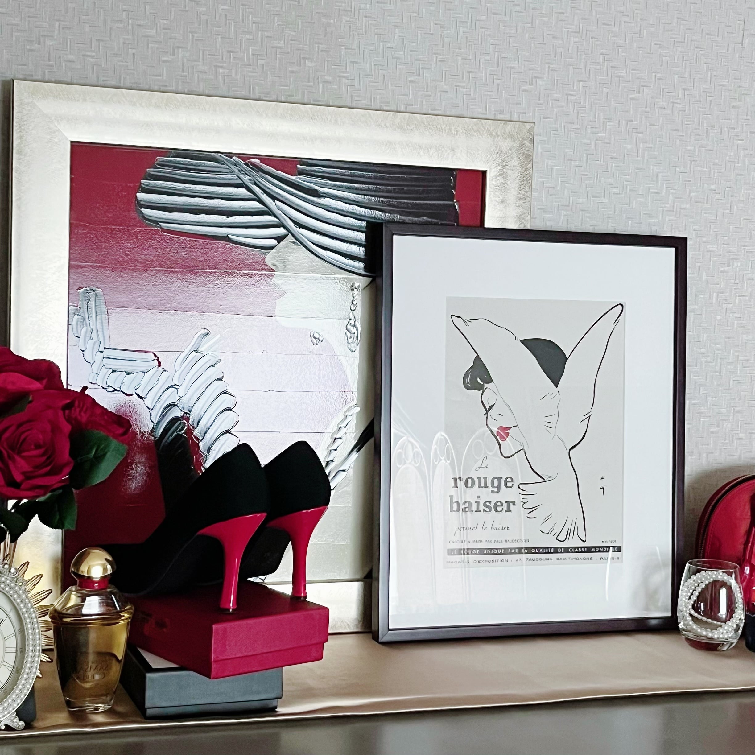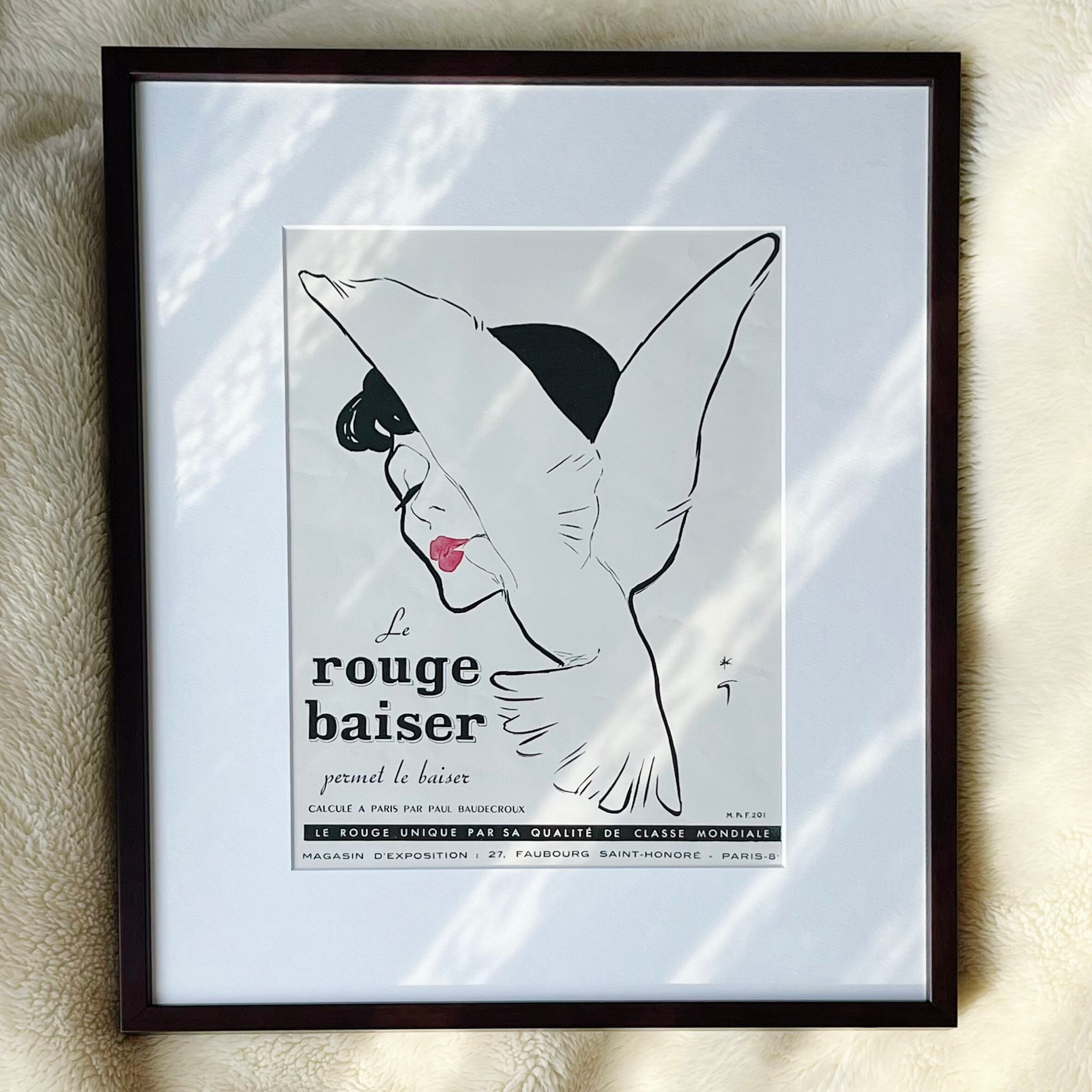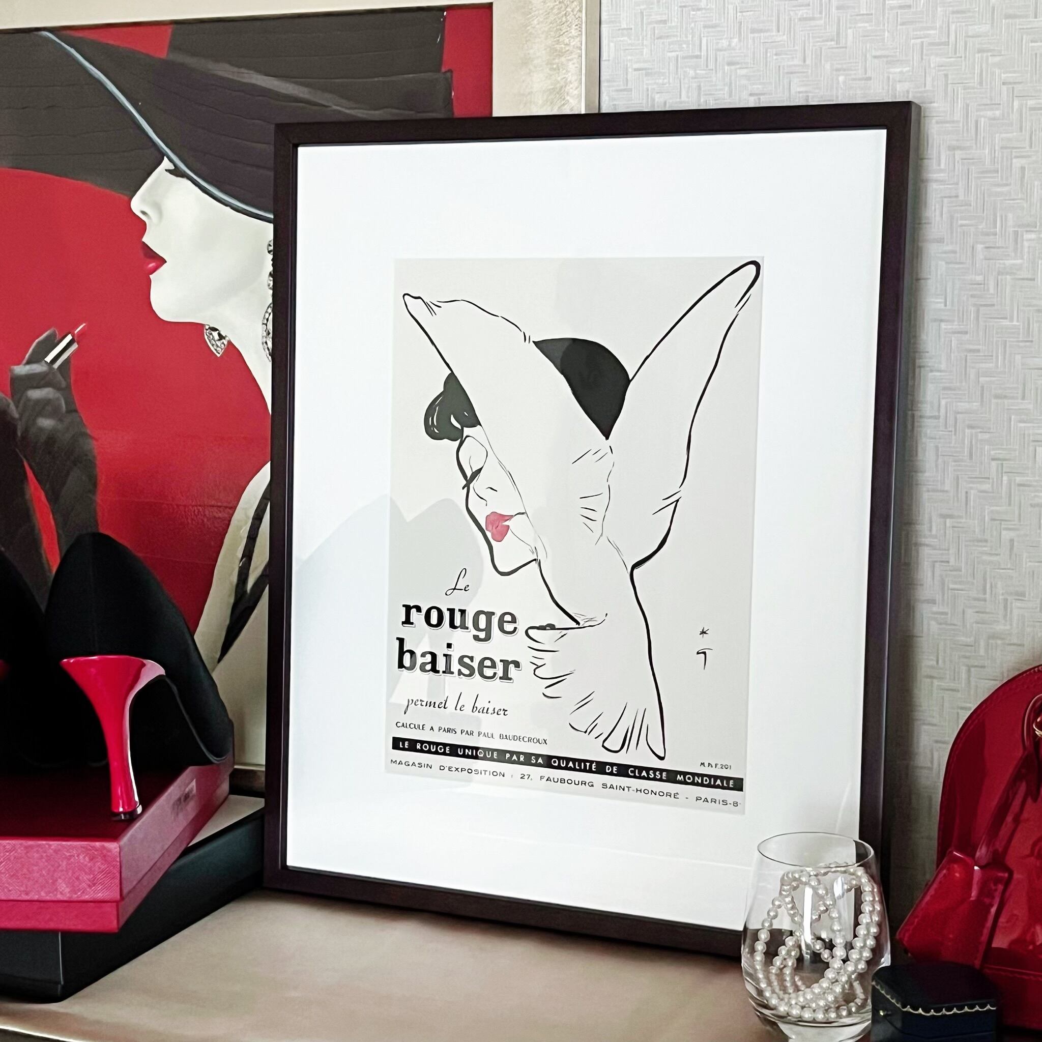 <1948 広告>Rene Gruau ルネ グリュオ Rouge Baiser ポスター ヴィンテージ アートポスター フレーム付き インテリア モダン おしゃれ かわいい 壁掛け ポップ レトロ モノトーン モノクロ 赤 | Belle_ame ヴィンテージアートポスター