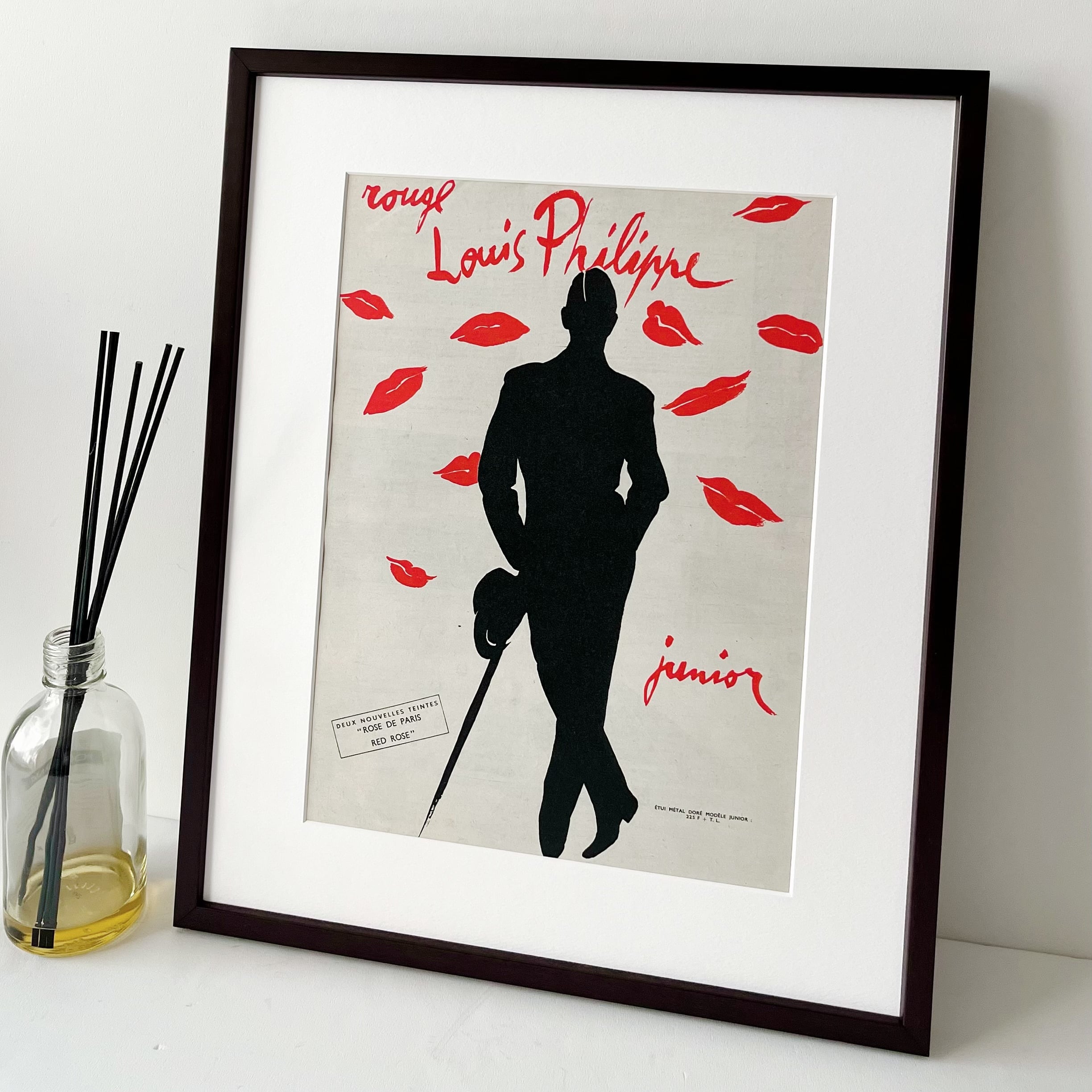 1940~1950年代のパリのファッション雑誌で活躍したイラストレーターRene Gruau(ルネ・グリュオ)が描いた、Louis Philippeのヴィンテージアートポスター。