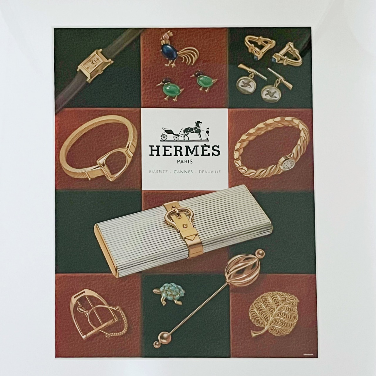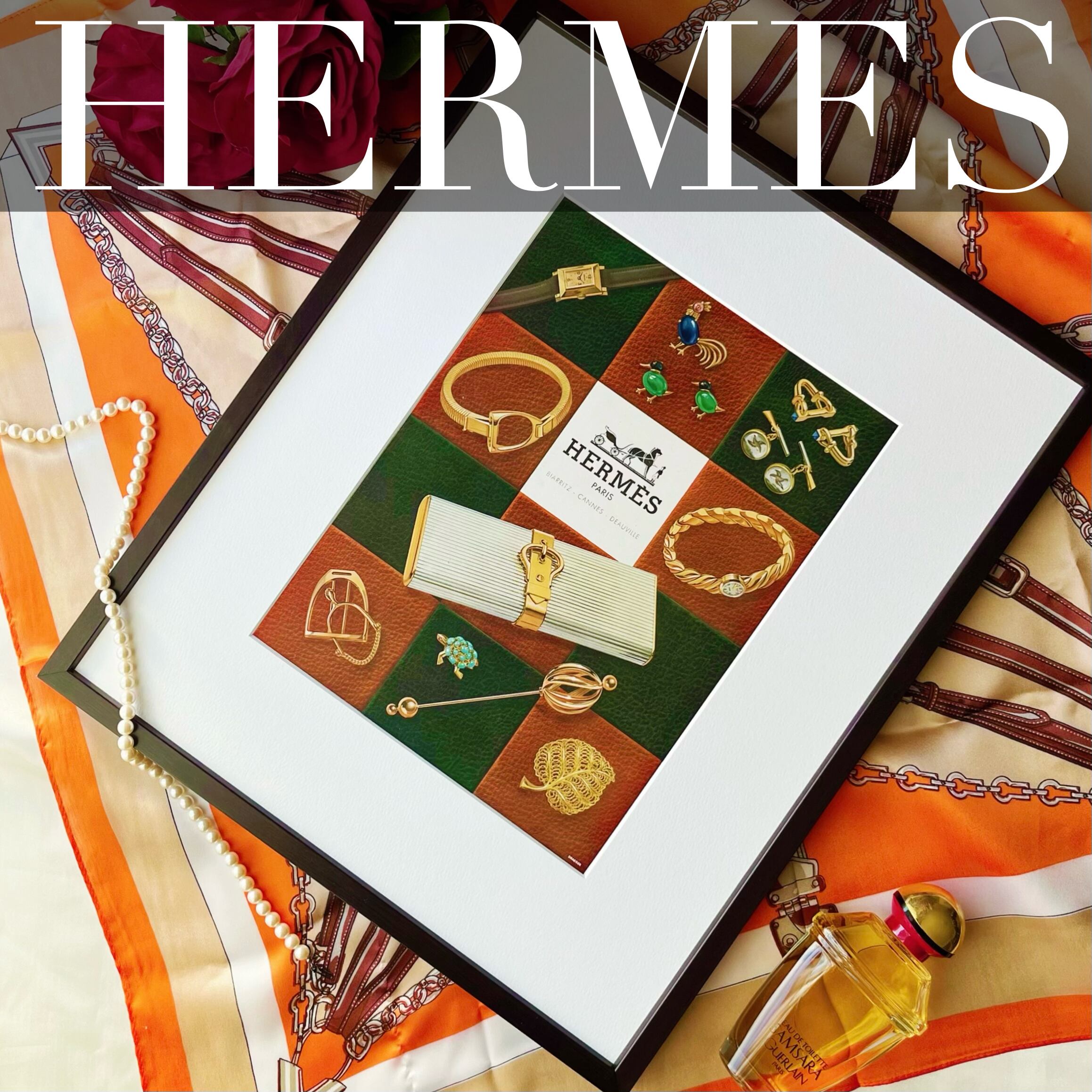 <1952 広告> Hermès エルメス ポスター ヴィンテージ アートポスター フレーム付き インテリア モダン おしゃれ かわいい 壁掛け ポップ レトロ