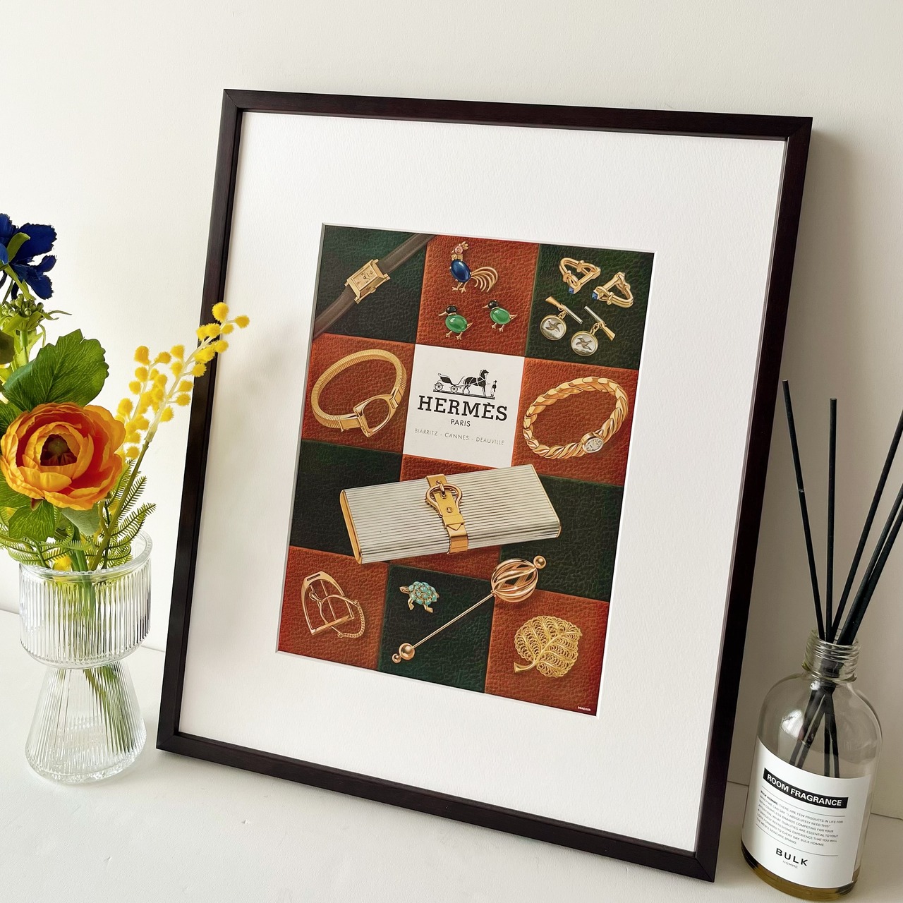 エルメスのラグジュアリーなアートポスターは、壁掛けインテリアとして空間を格上げするだけでなく、特別な存在感を与えます。