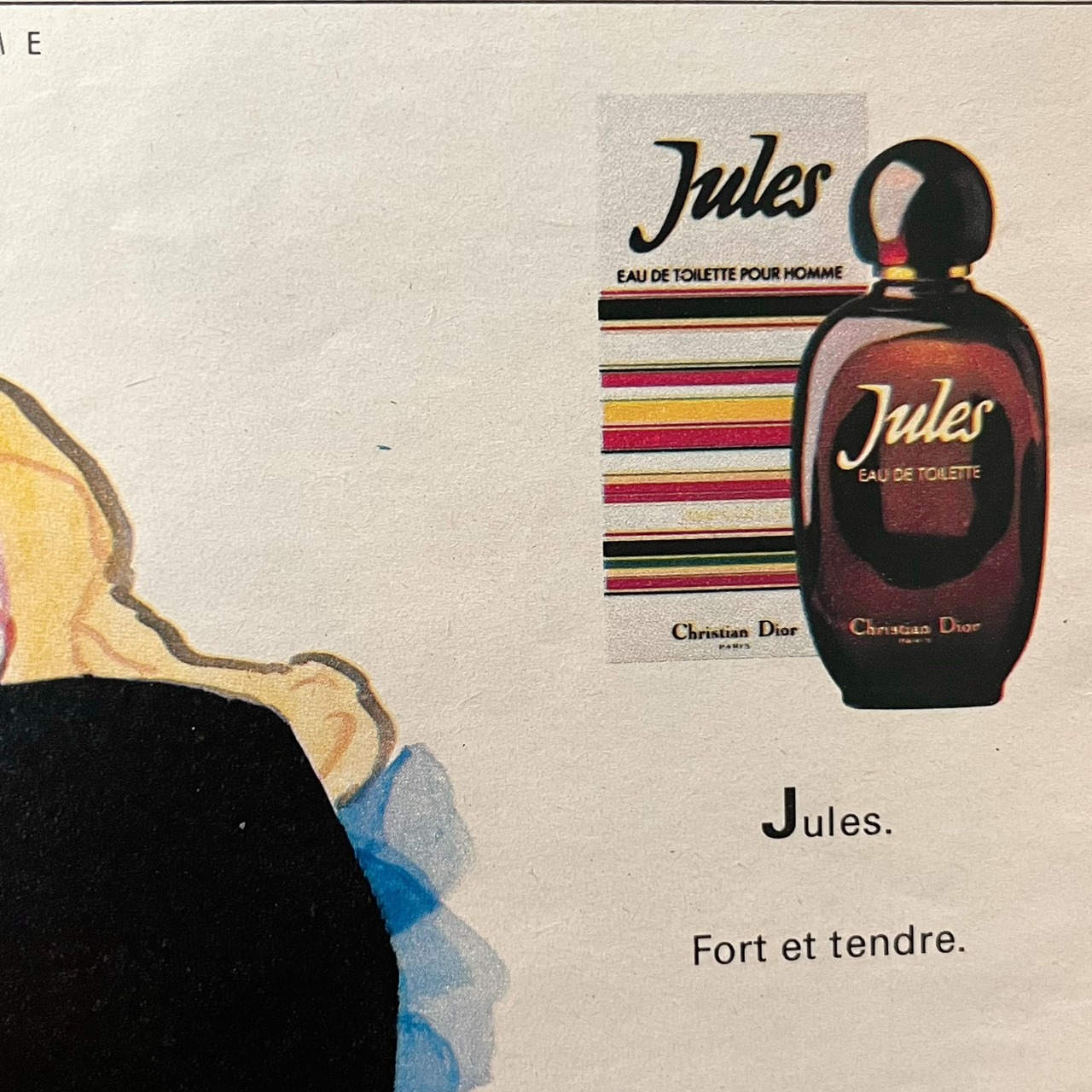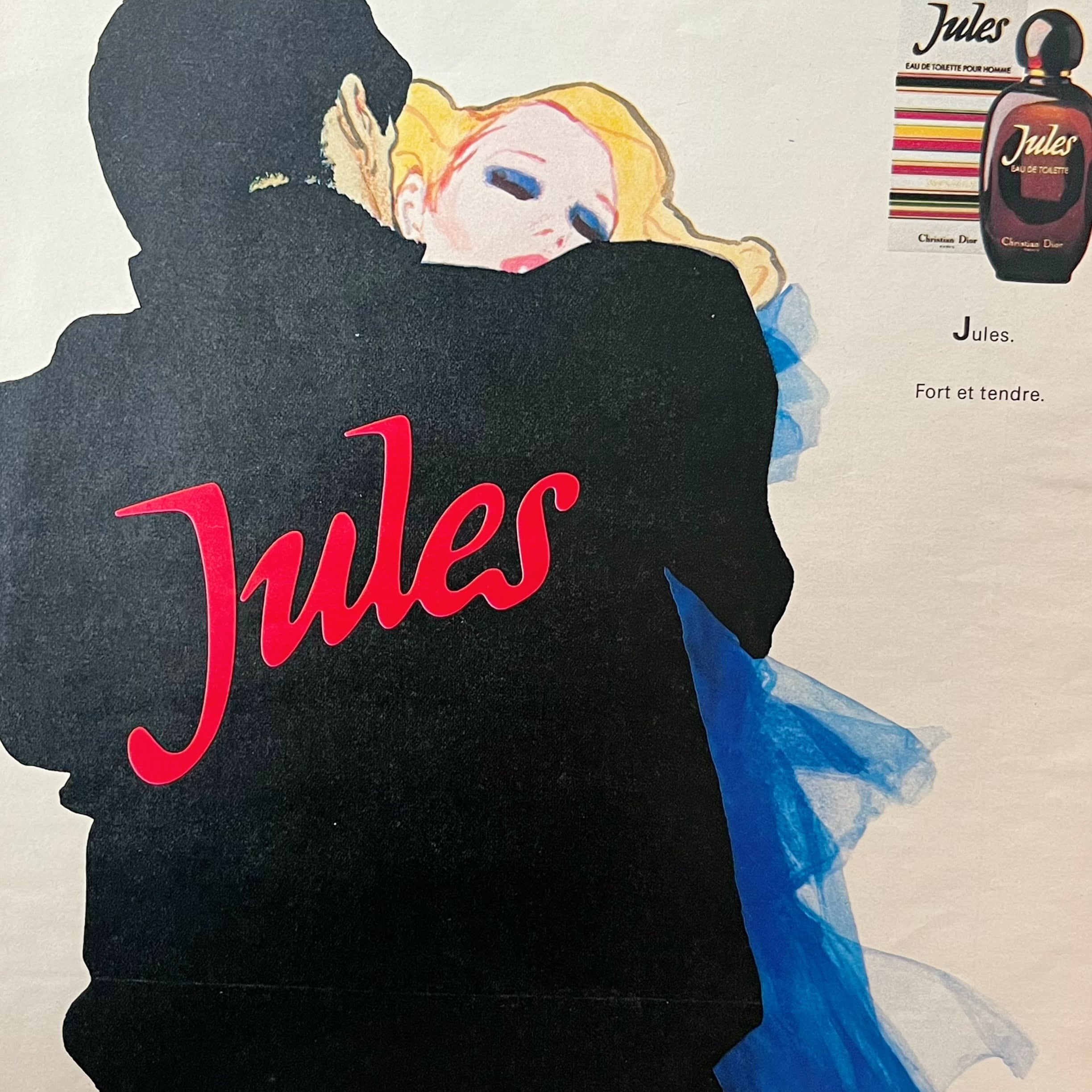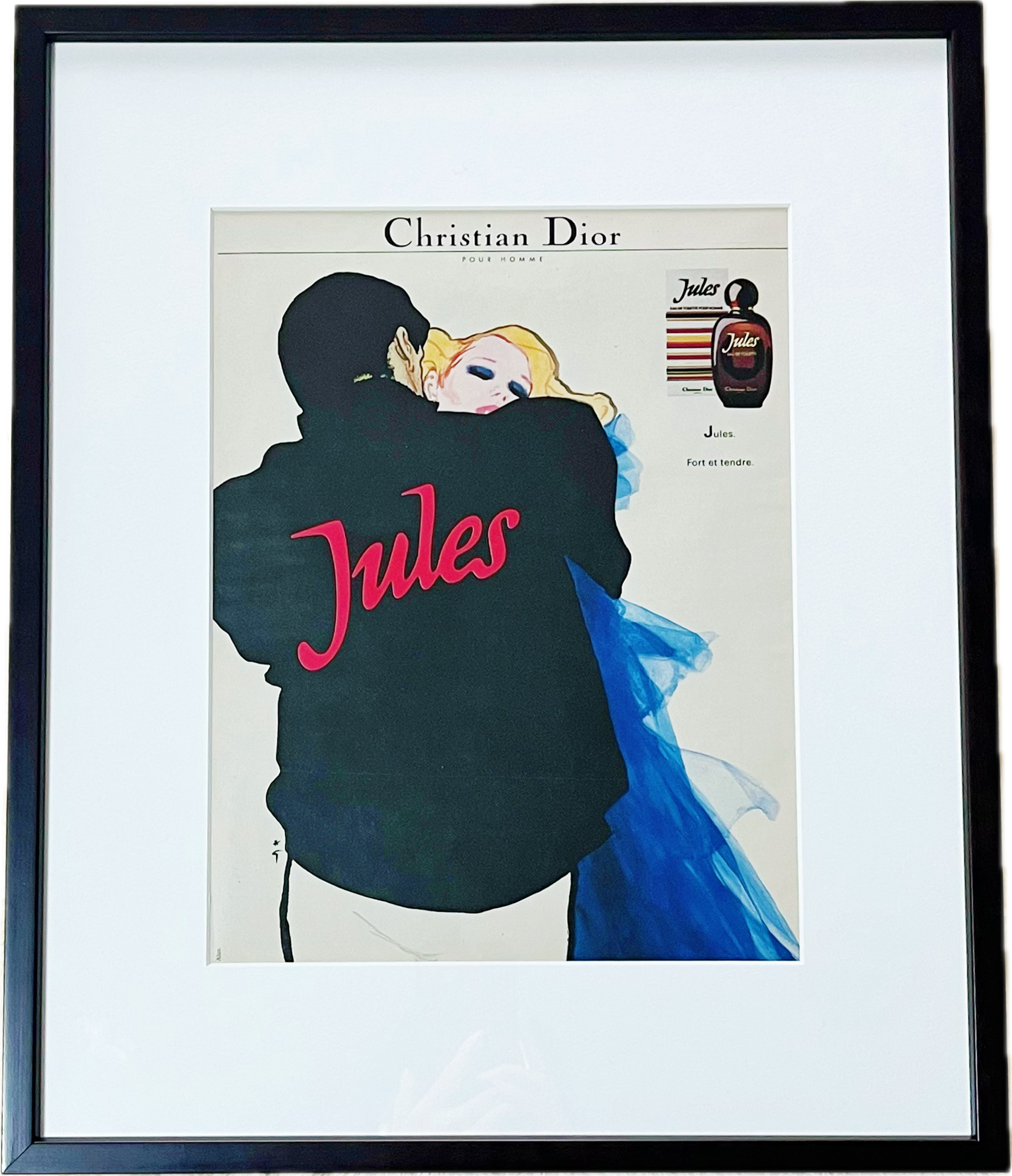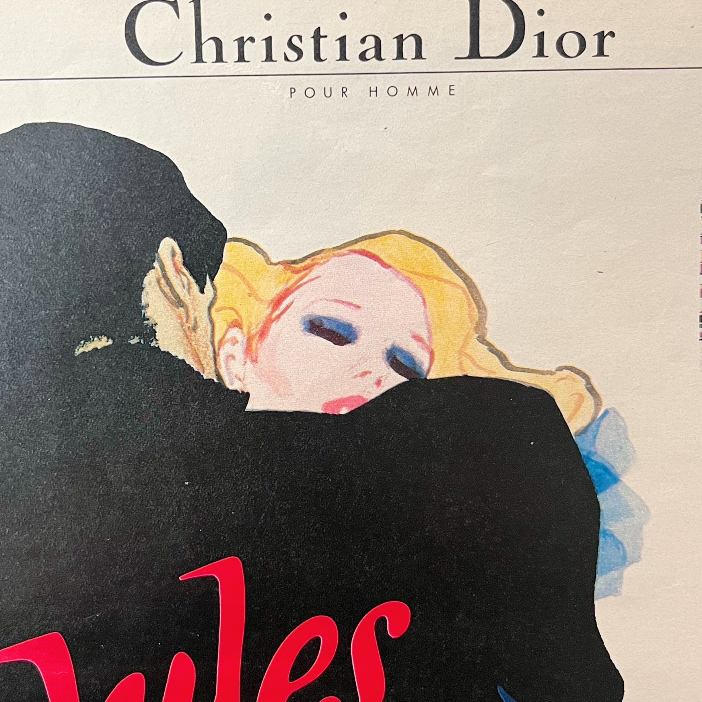 1940~1950年代パリのファッション雑誌で活躍したイラストレーター、Gruau(グリュオ)により描かれた、1984年Diorのメンズフレグランスのレトロなヴィンテージアートポスター。