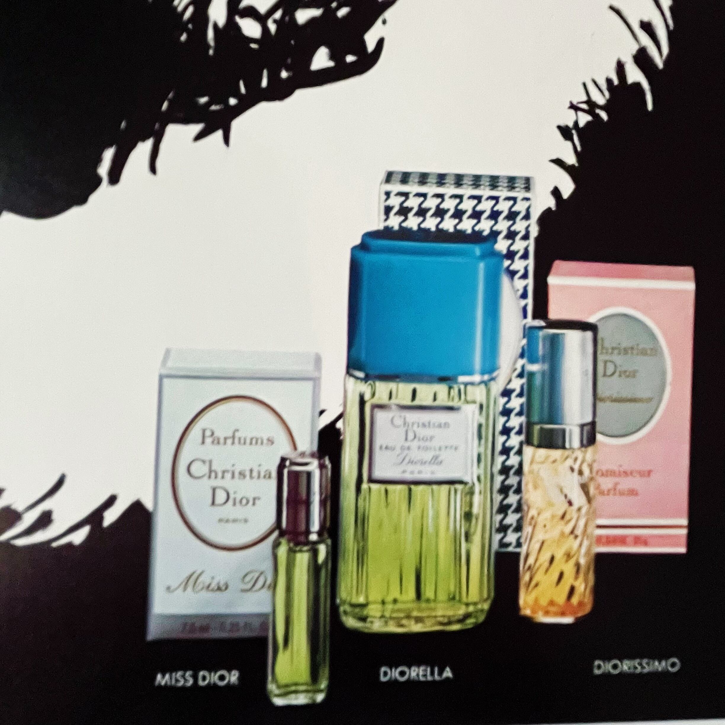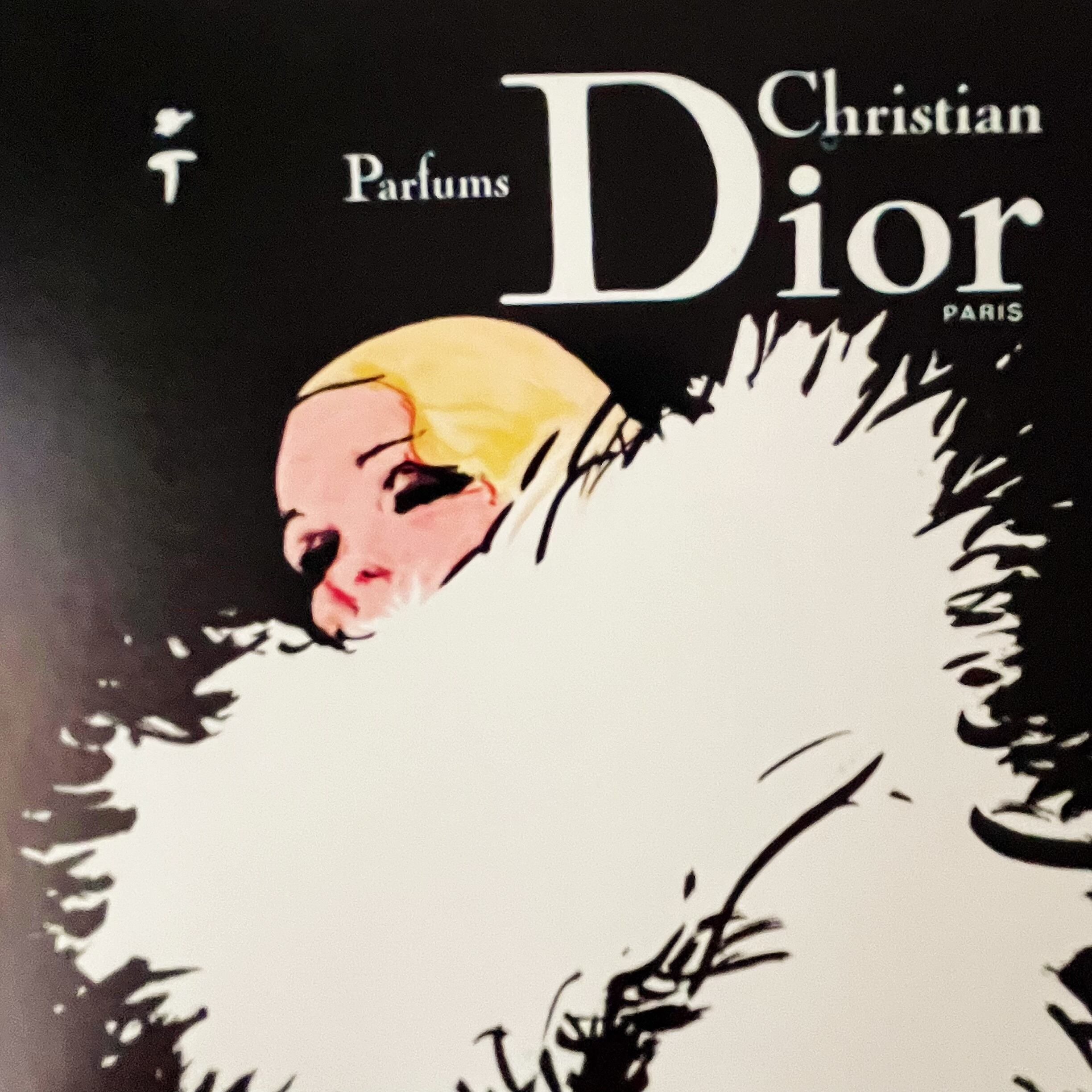 1940~1950年代パリのファッション雑誌で活躍したイラストレーター、Gruau(グリュオ)により描かれた、Diorのフレグランスのレトロなヴィンテージアートポスター。