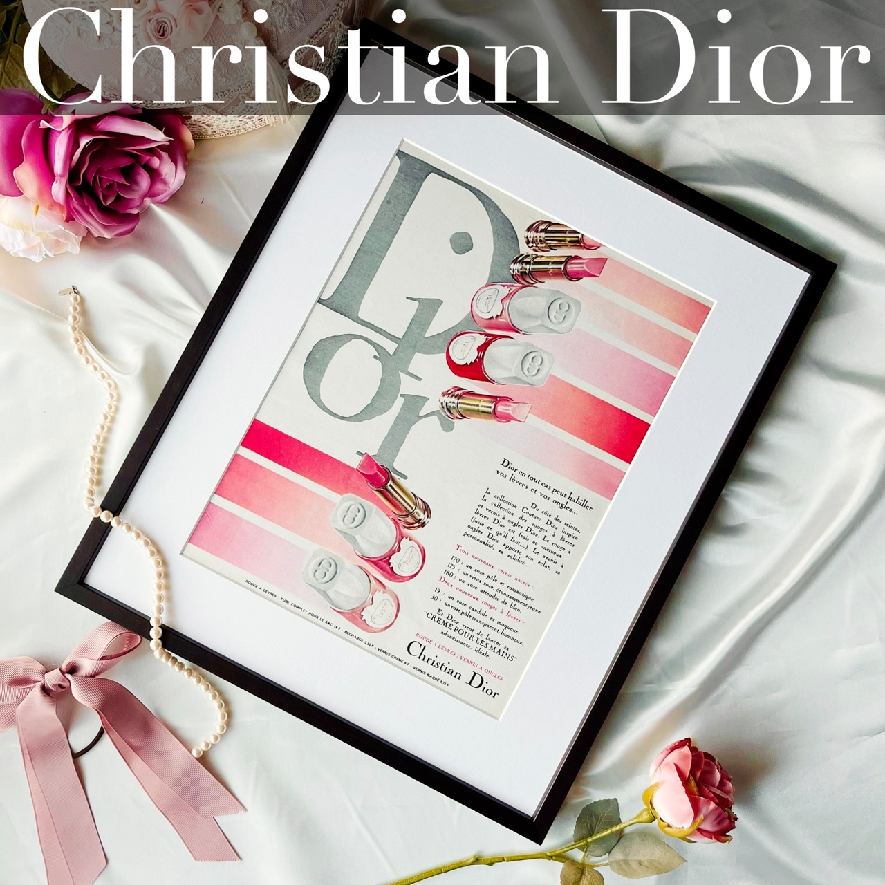 <1964 広告>Dior ディオール ポスター ヴィンテージ ビンテージ アートポスター 額付 フレーム付きインテリア モダン おしゃれ かわいい 壁掛け ピンク ポップ レトロ