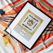 エルメスの象徴ともいえるスカーフの美しい柄が描かれており、おしゃれで上品な色合いが特徴です。