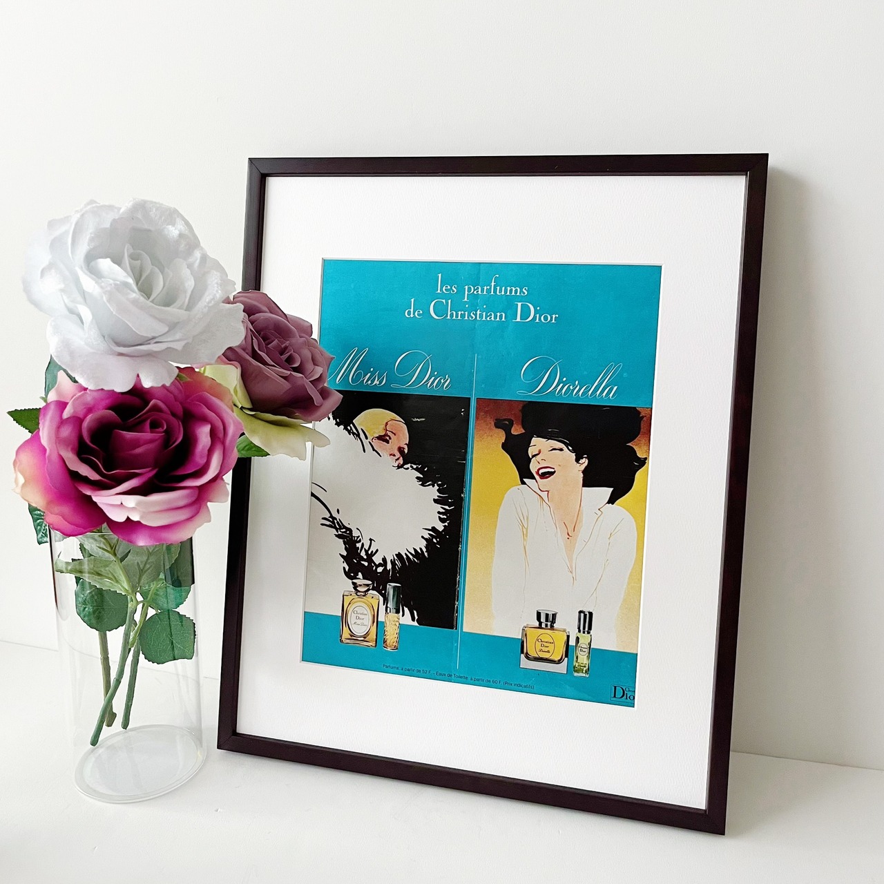 <1975 広告>Christian Dior クリスチャン ディオール Rene Gruau ルネ グリュオ ポスター ヴィンテージ アートポスター フレーム付き インテリア モダン おしゃれ かわいい 壁掛け ポップ レトロ | Belle_ame ヴィンテージアートポスター