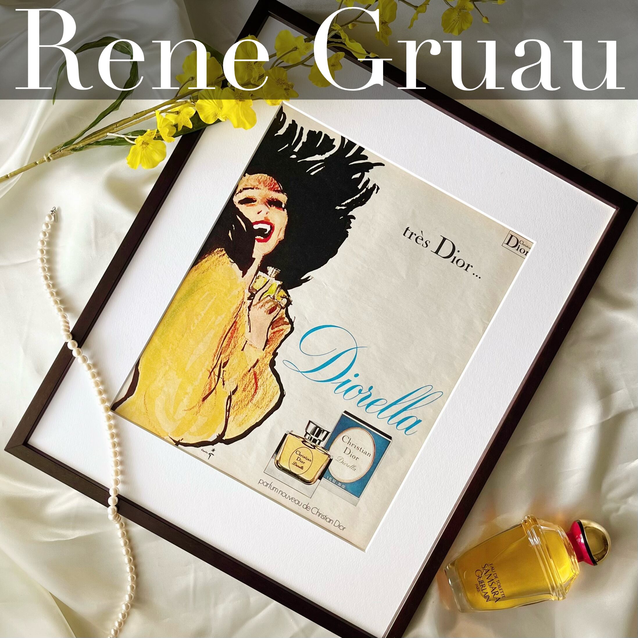 1940~1950年代にパリのファッション雑誌で活躍したイラストレーター、Gruau(グリュオ)により描かれた、Diorのフレグランスのヴィンテージアートポスター。