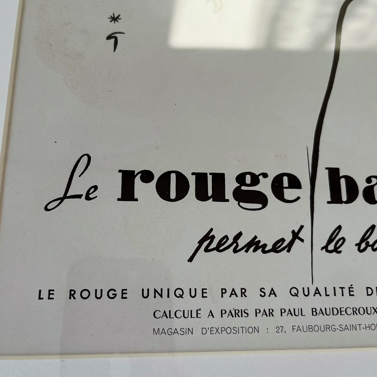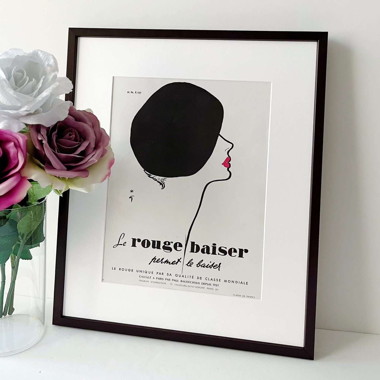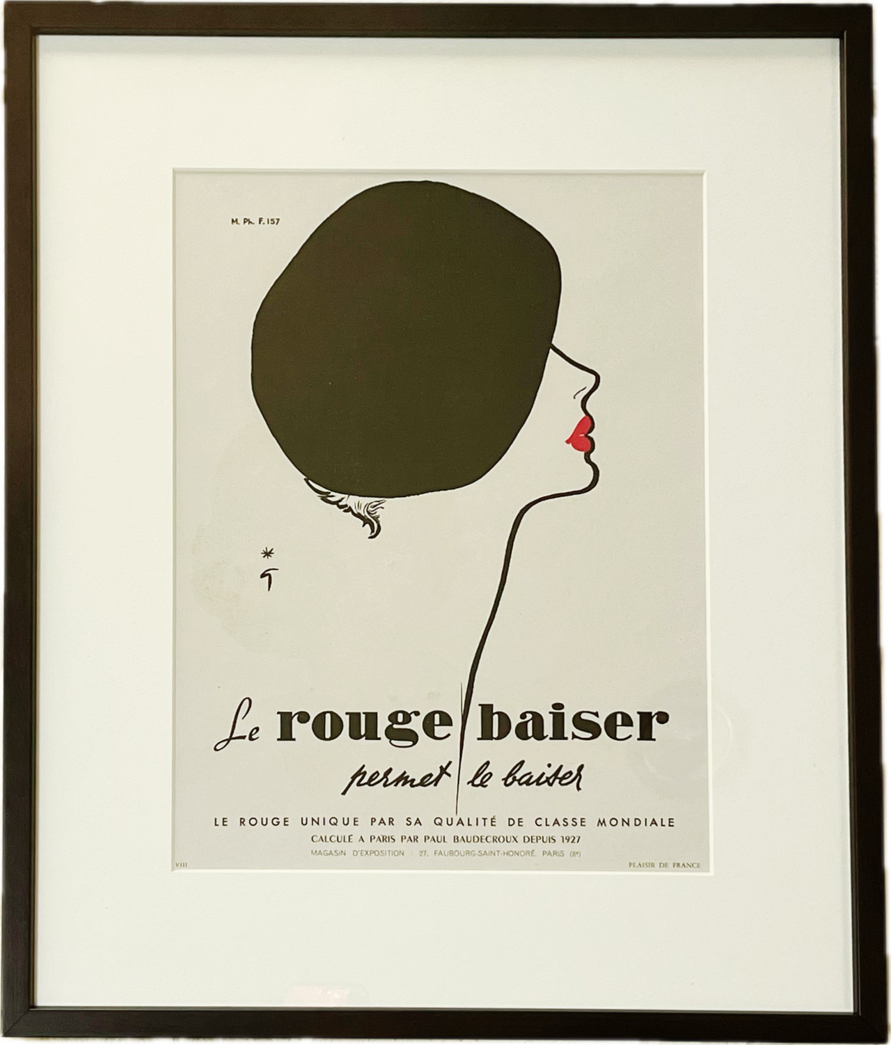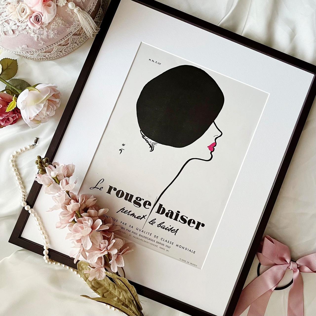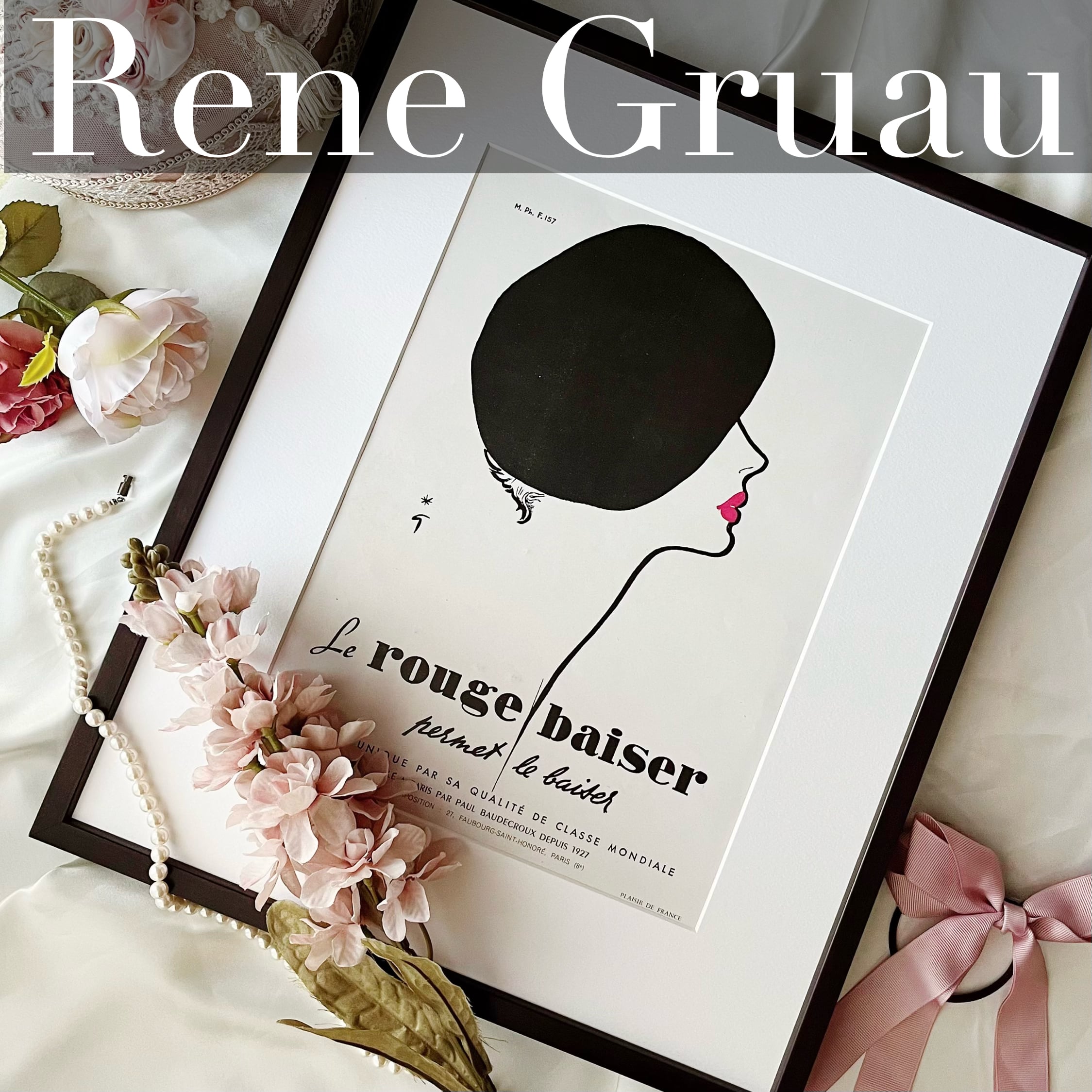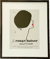 1940~1950年代にパリのファッション雑誌で活躍したイラストレーター、Gruau(グリュオ)が描いたRougeBaiserのレトロなヴィンテージアートポスター。