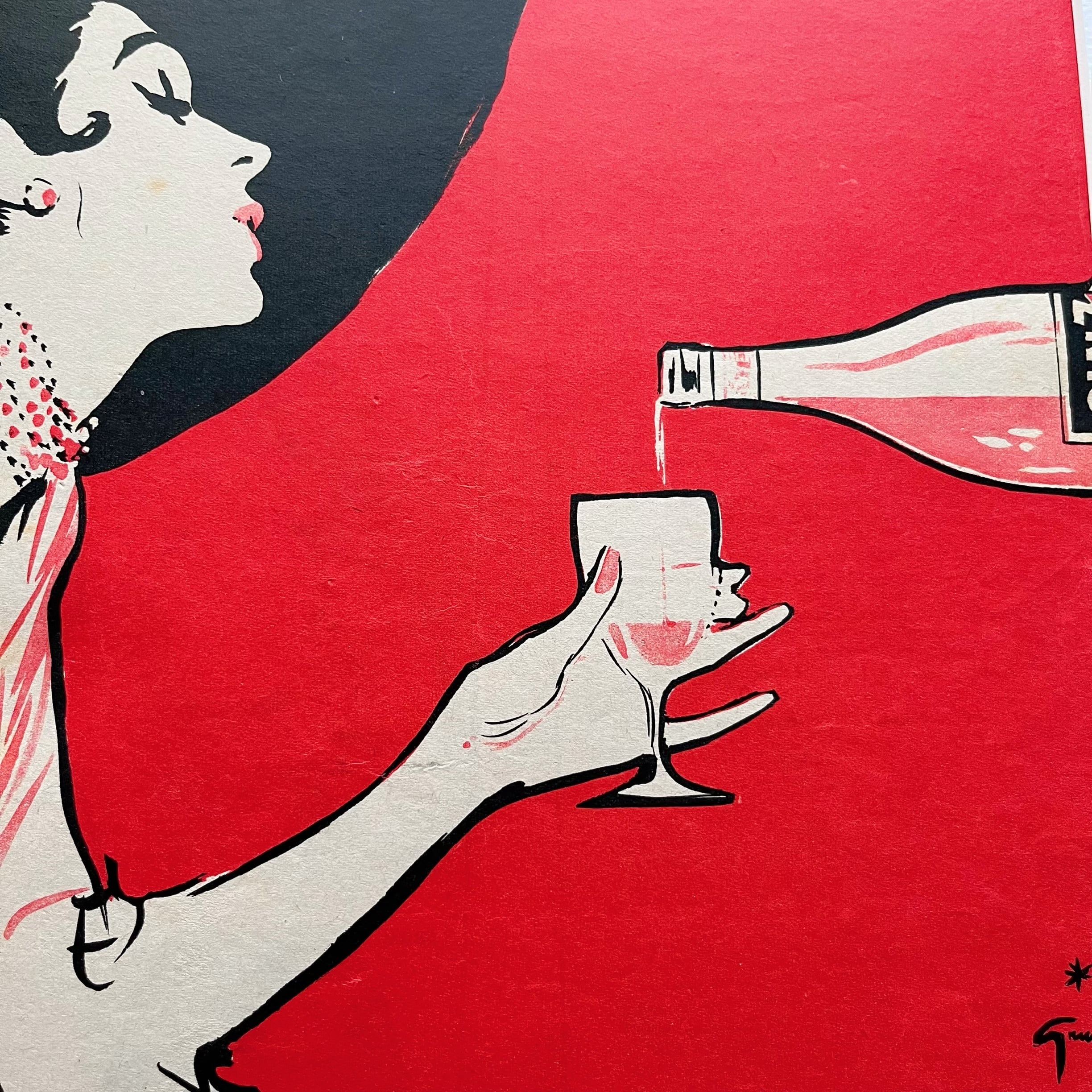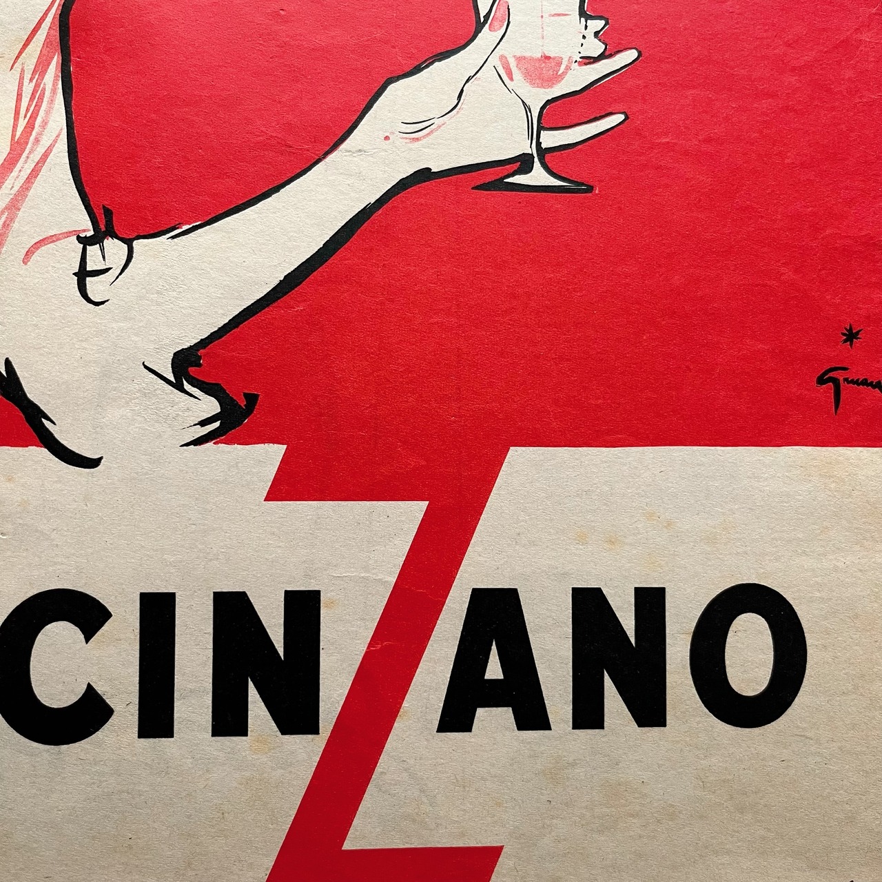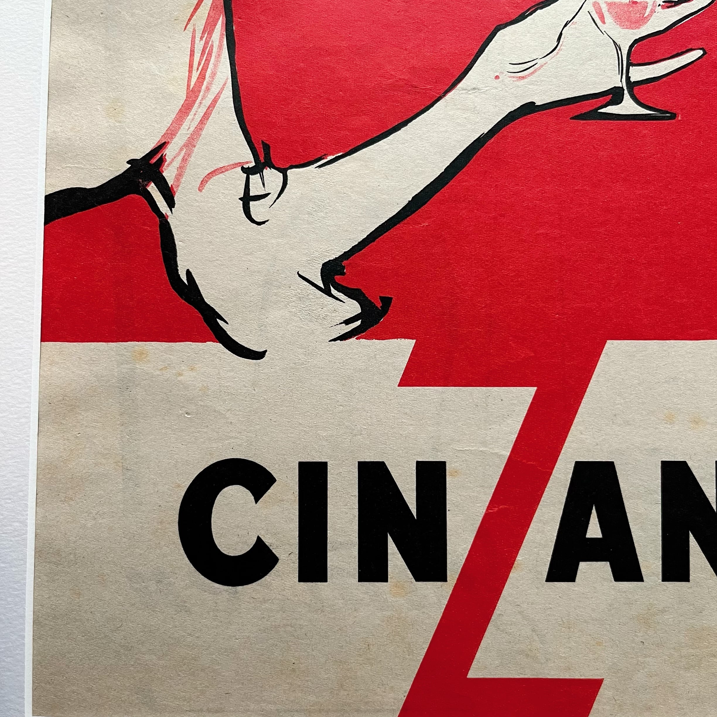 1940~1950年代にパリのファッション雑誌で活躍したイラストレーター、Gruau(グリュオ)により描かれた、CINZANOのヴィンテージアートポスター。