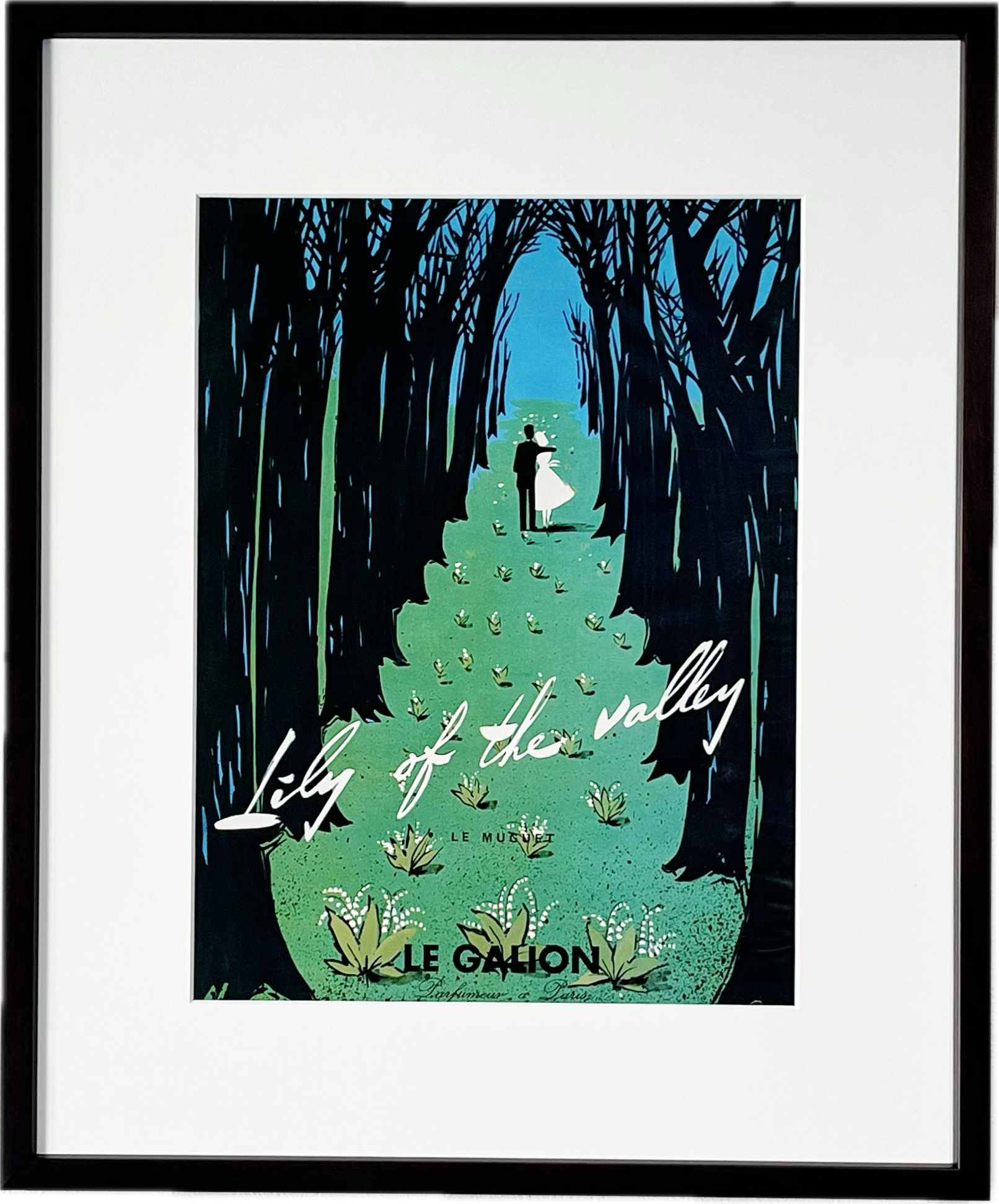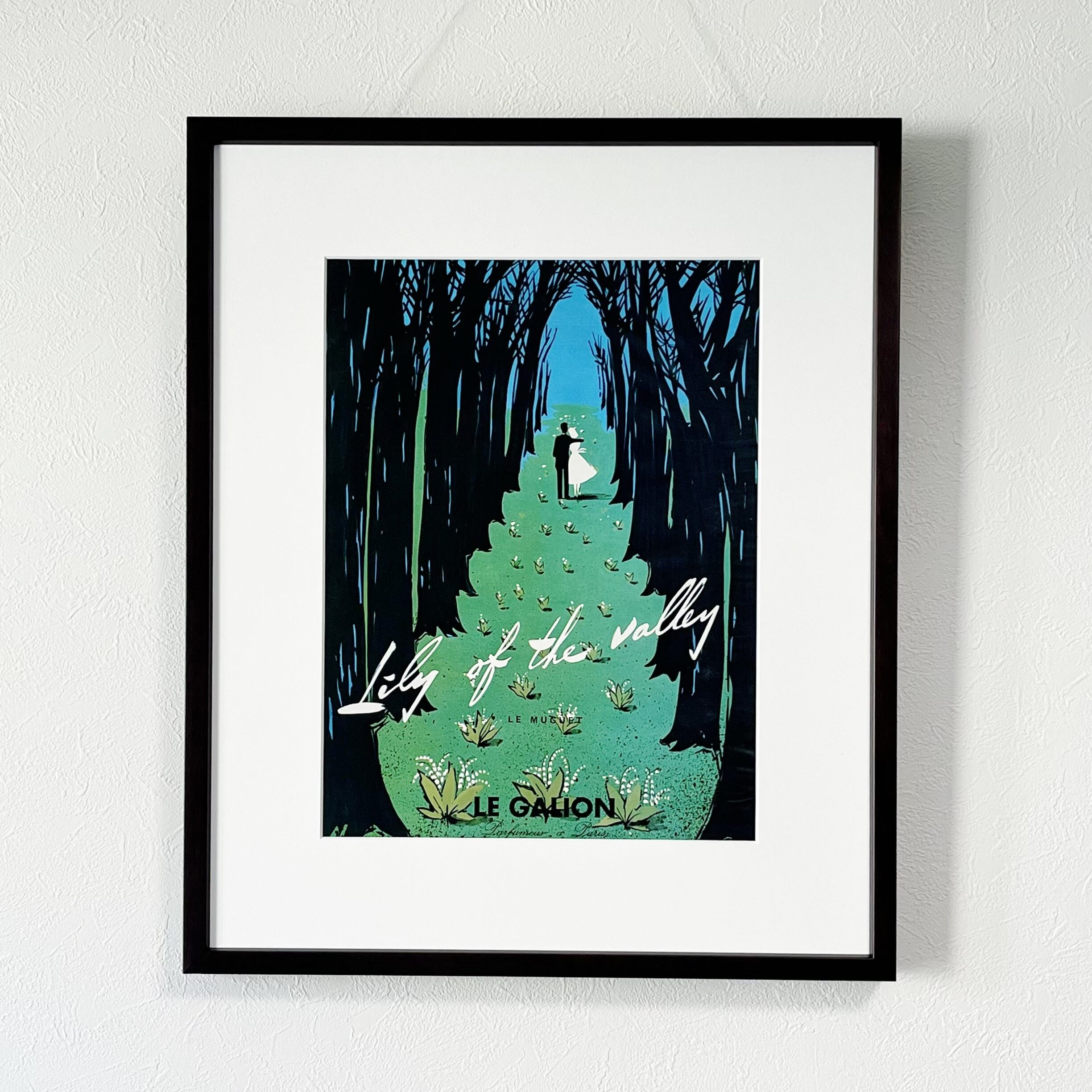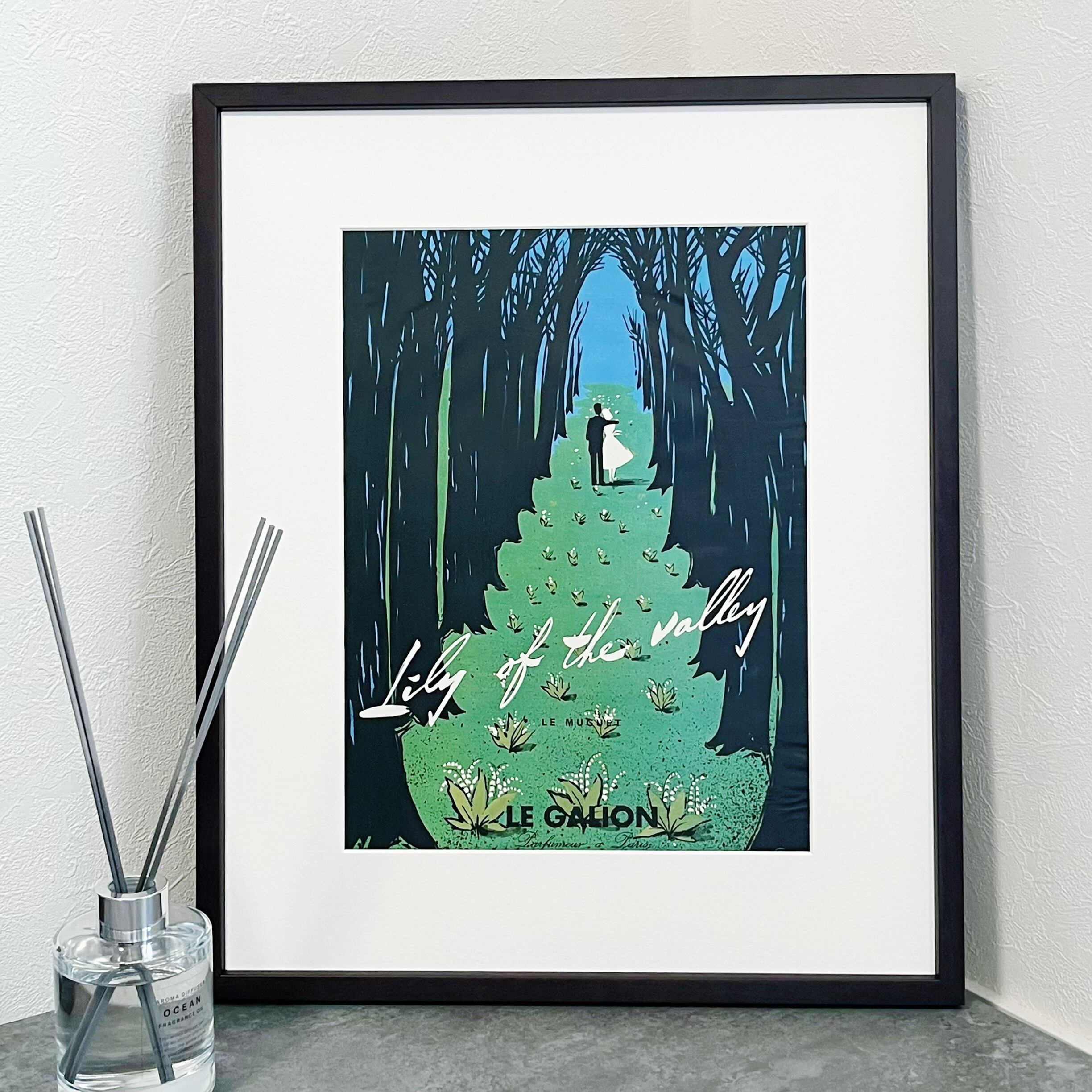 <1950年代 広告> LE GALION ポスター ヴィンテージ アートポスター フレーム付き インテリア モダン おしゃれ かわいい 壁掛け ポップ レトロ 花 結婚祝い すずらん