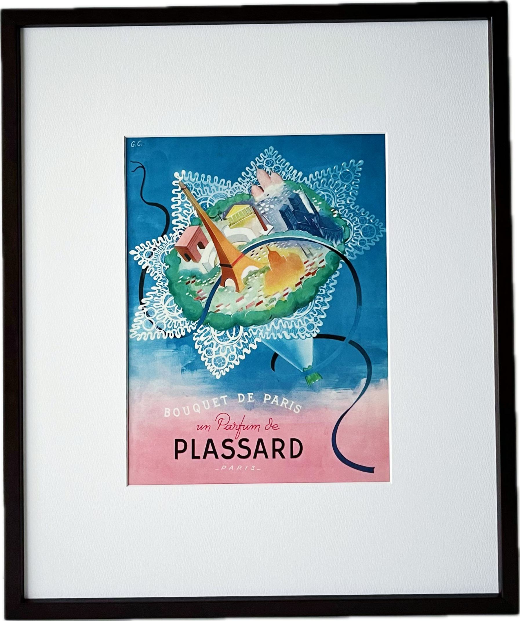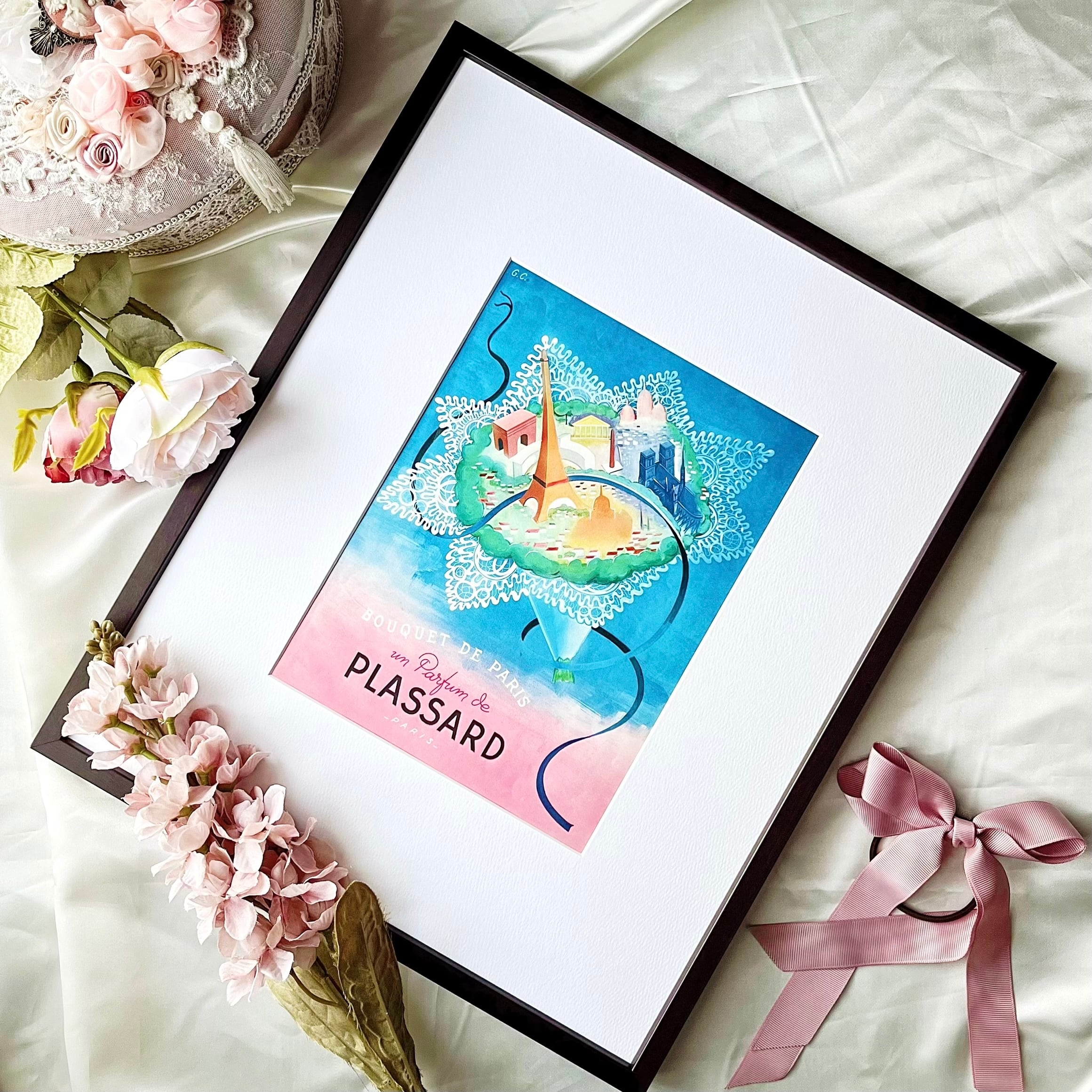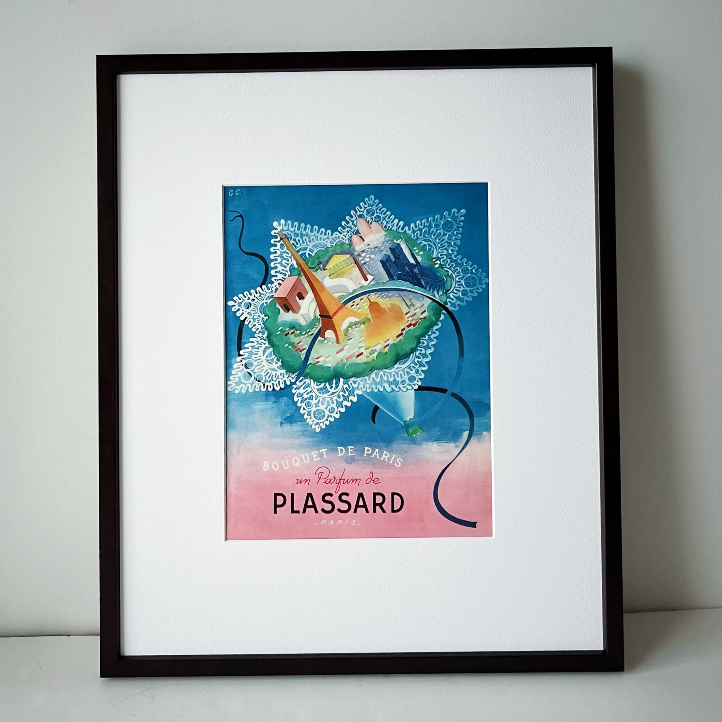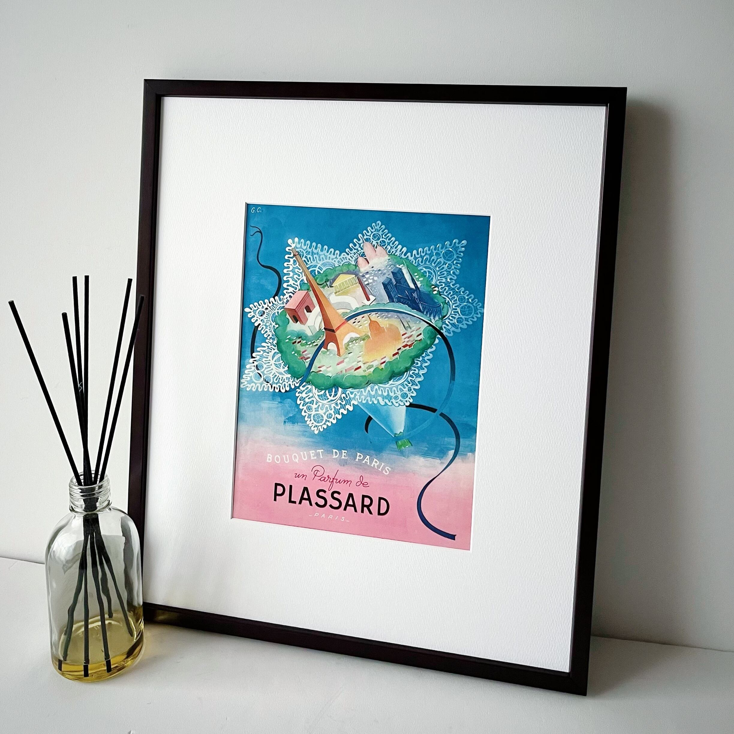 <1945 広告>Plassard ポスター ヴィンテージ アートポスター フレーム付き インテリア モダン おしゃれ かわいい 壁掛け ピンク 花 フランス ポップ レトロ | Belle_ame ヴィンテージアートポスター