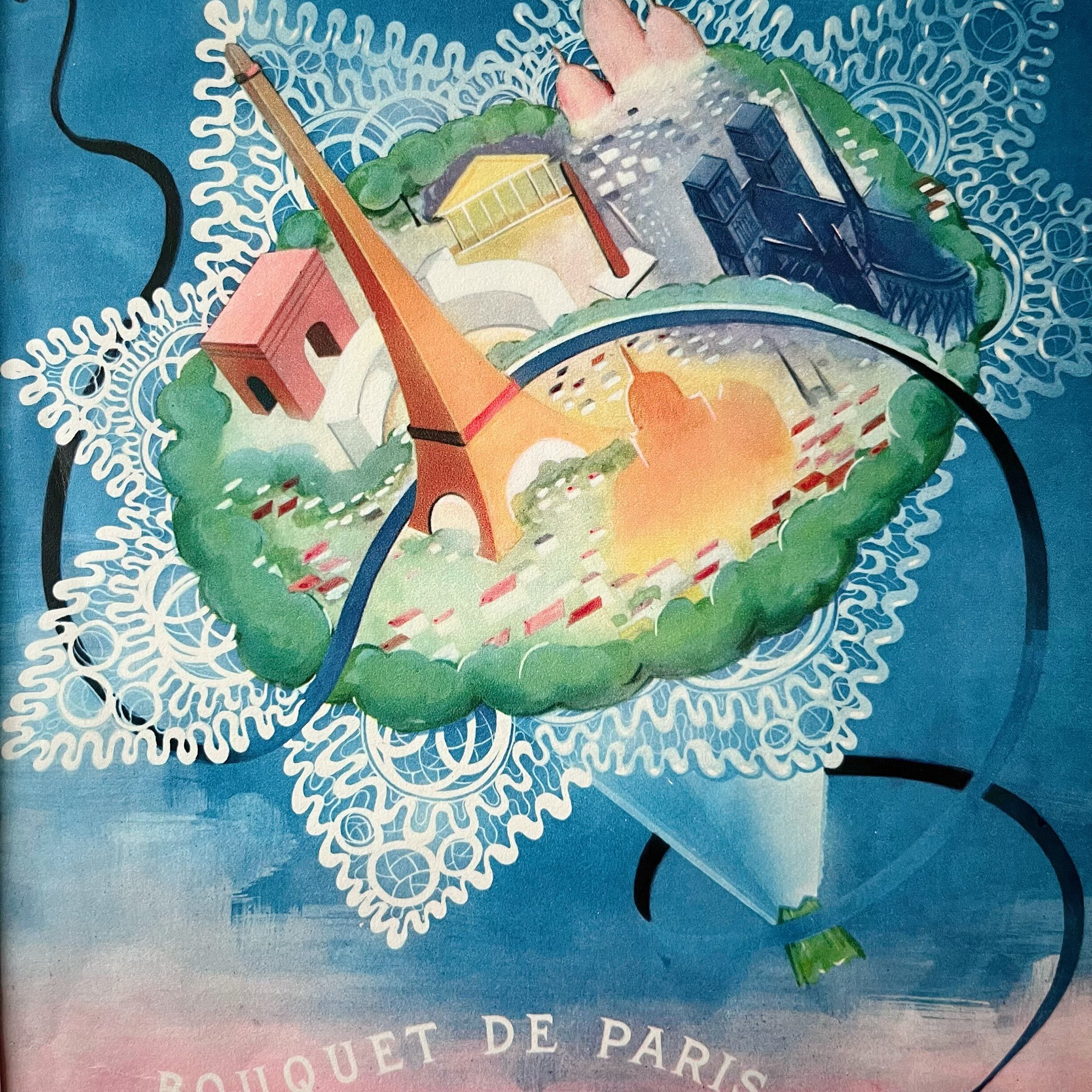パリの街並みがブーケになったデザインはまるで抽象画のように美しく、エッフェル塔や凱旋門など建物のかわいいイラストが描かれています。