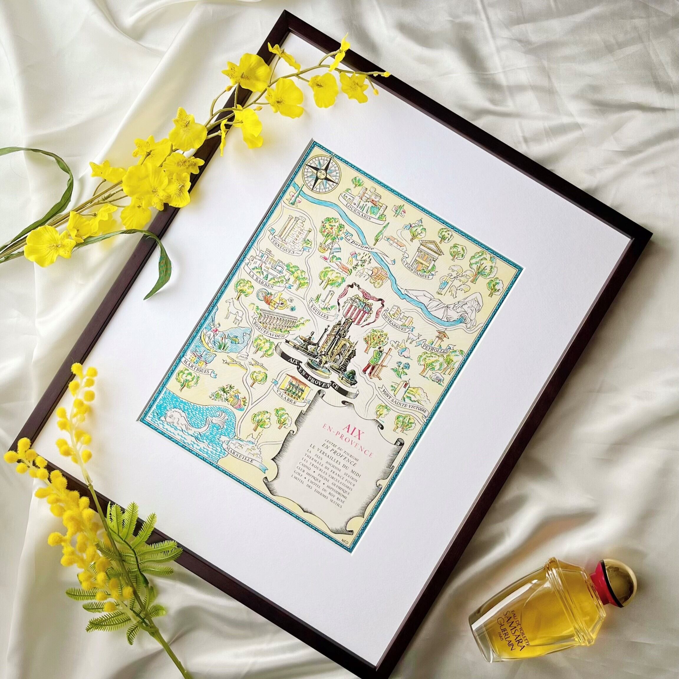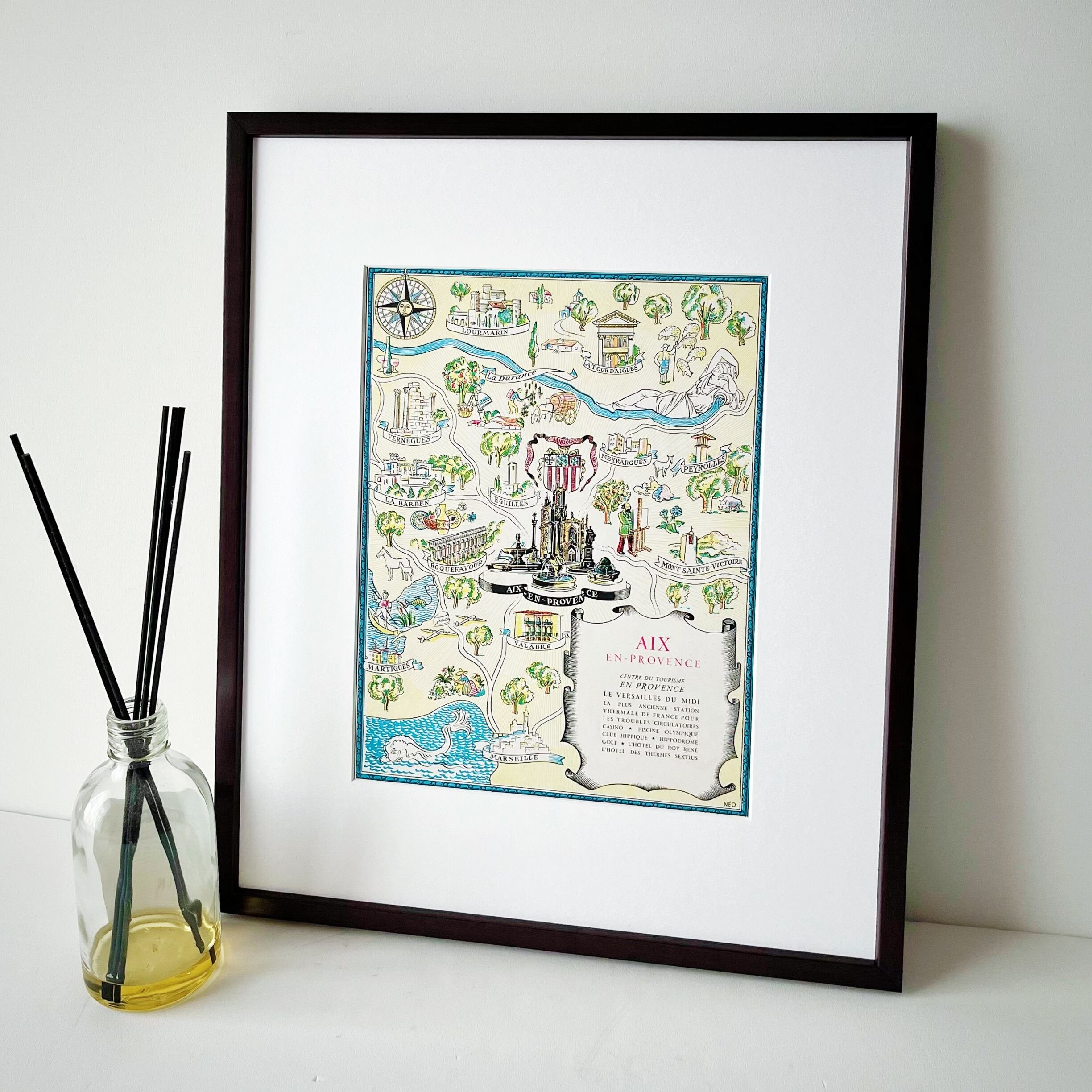 <1947 広告>Provance プロバンス ポスター ヴィンテージ アートポスター フレーム付き インテリア モダン おしゃれ かわいい 壁掛け フランス ポップ レトロ 地図