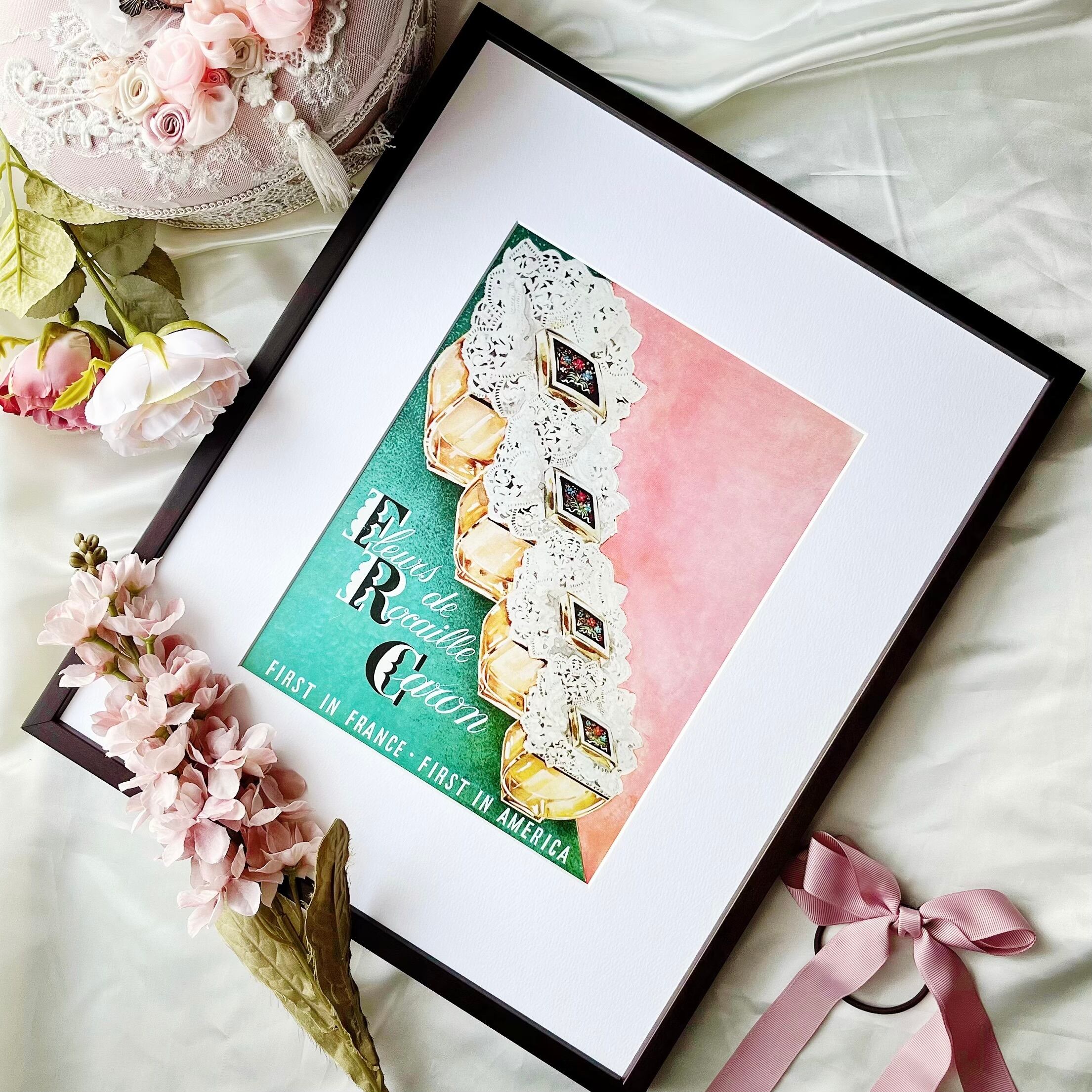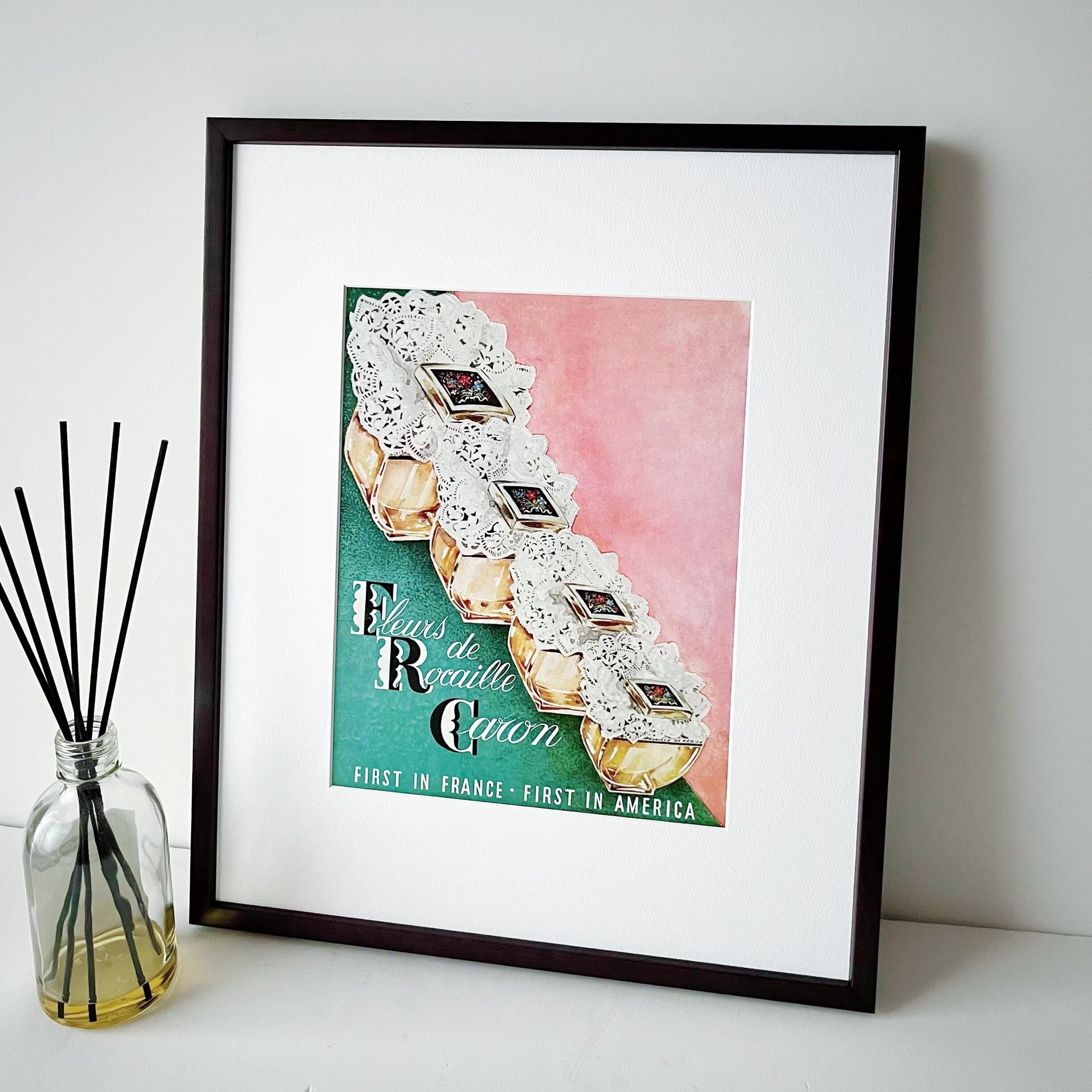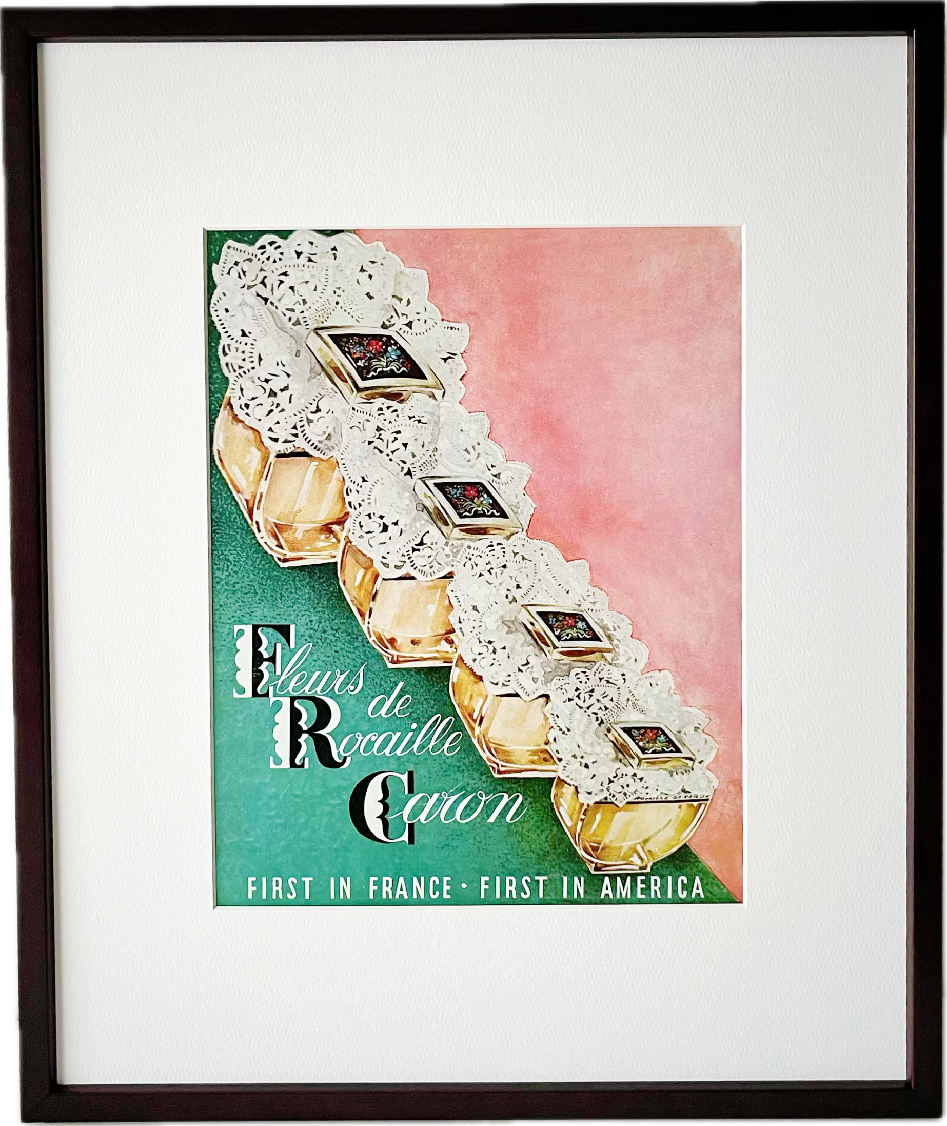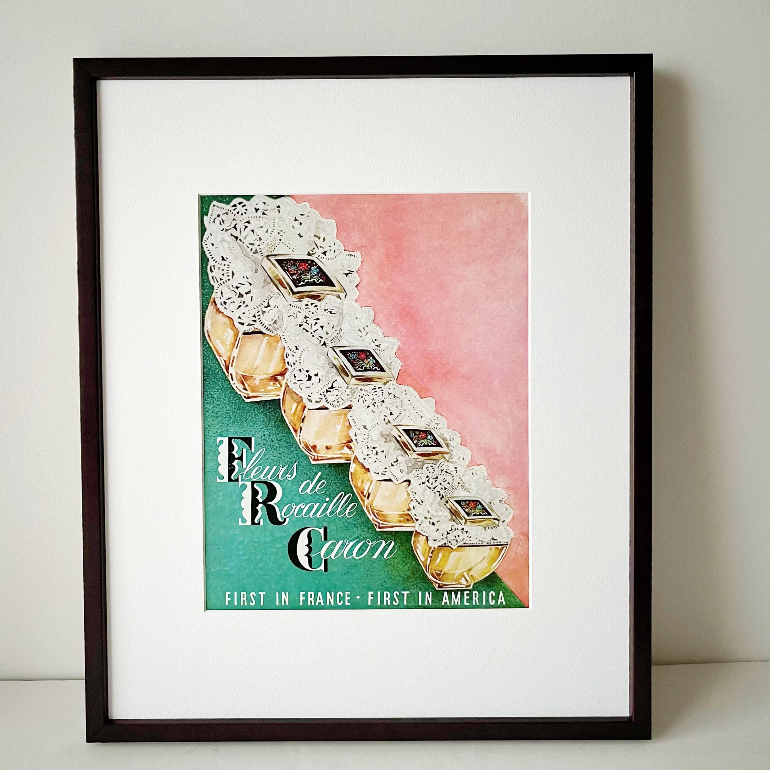 <1960 広告>CARON キャロン ポスター ヴィンテージ ビンテージ アートポスター 額付 フレーム付き インテリア モダン おしゃれ かわいい 壁掛け フランス ポップ ピンク 香水瓶