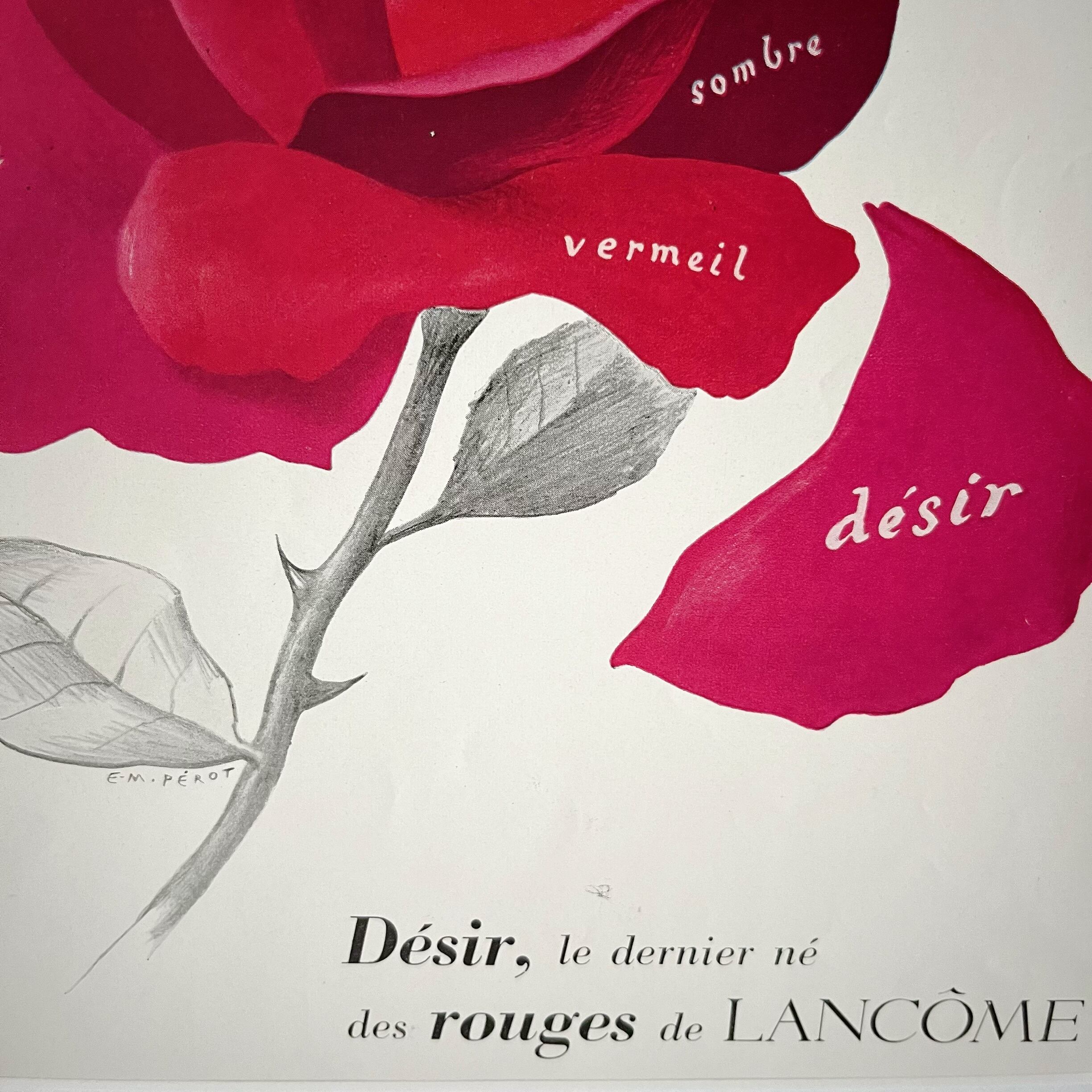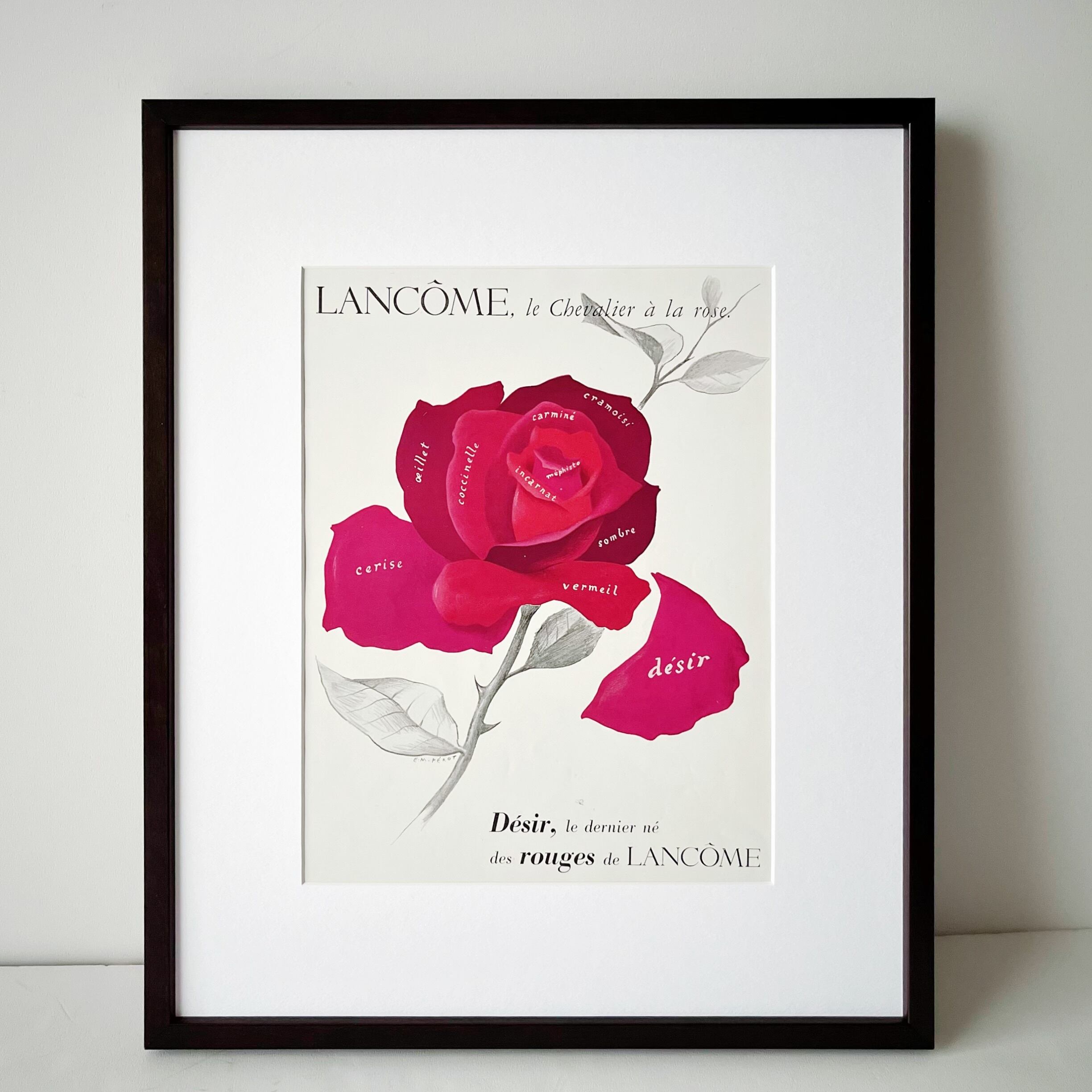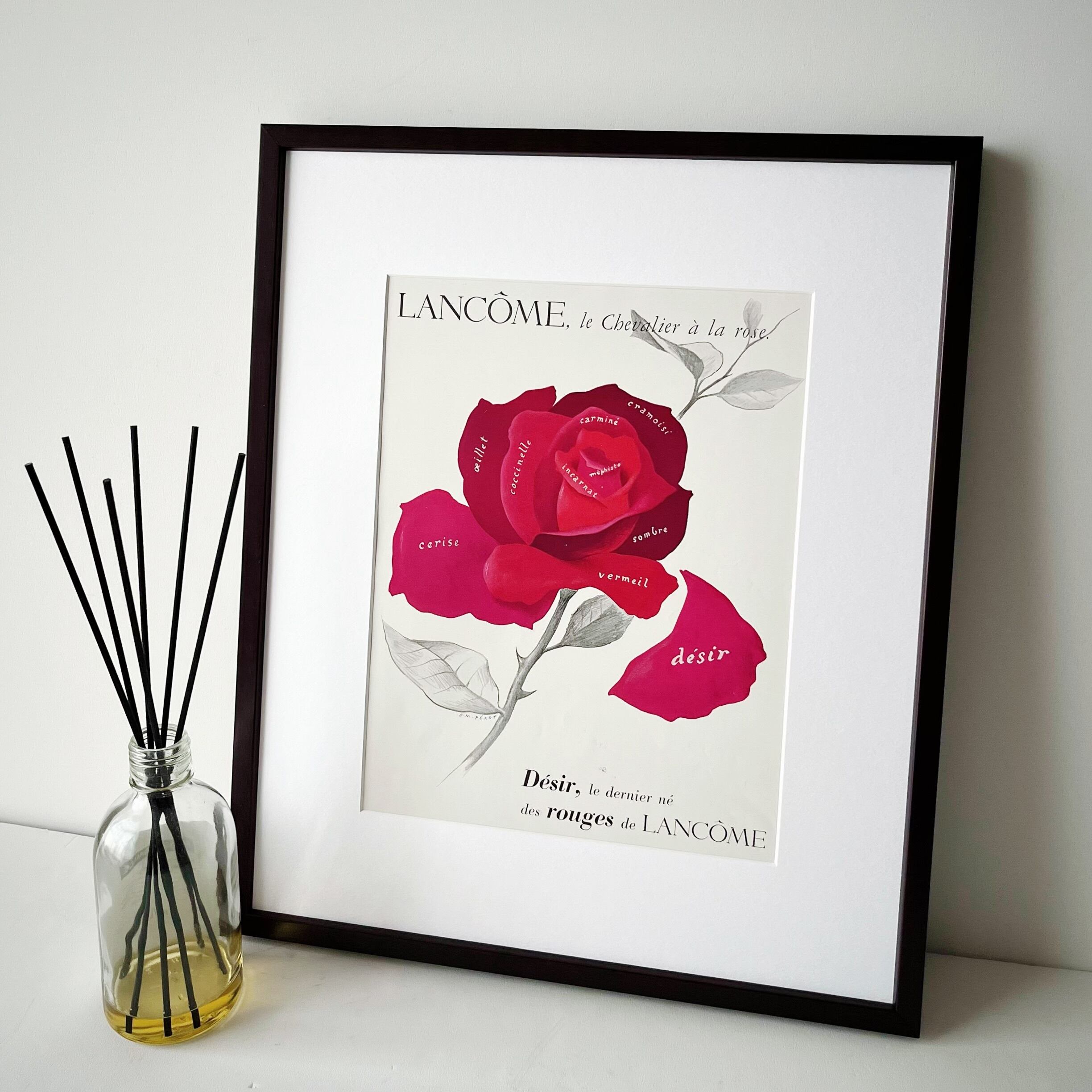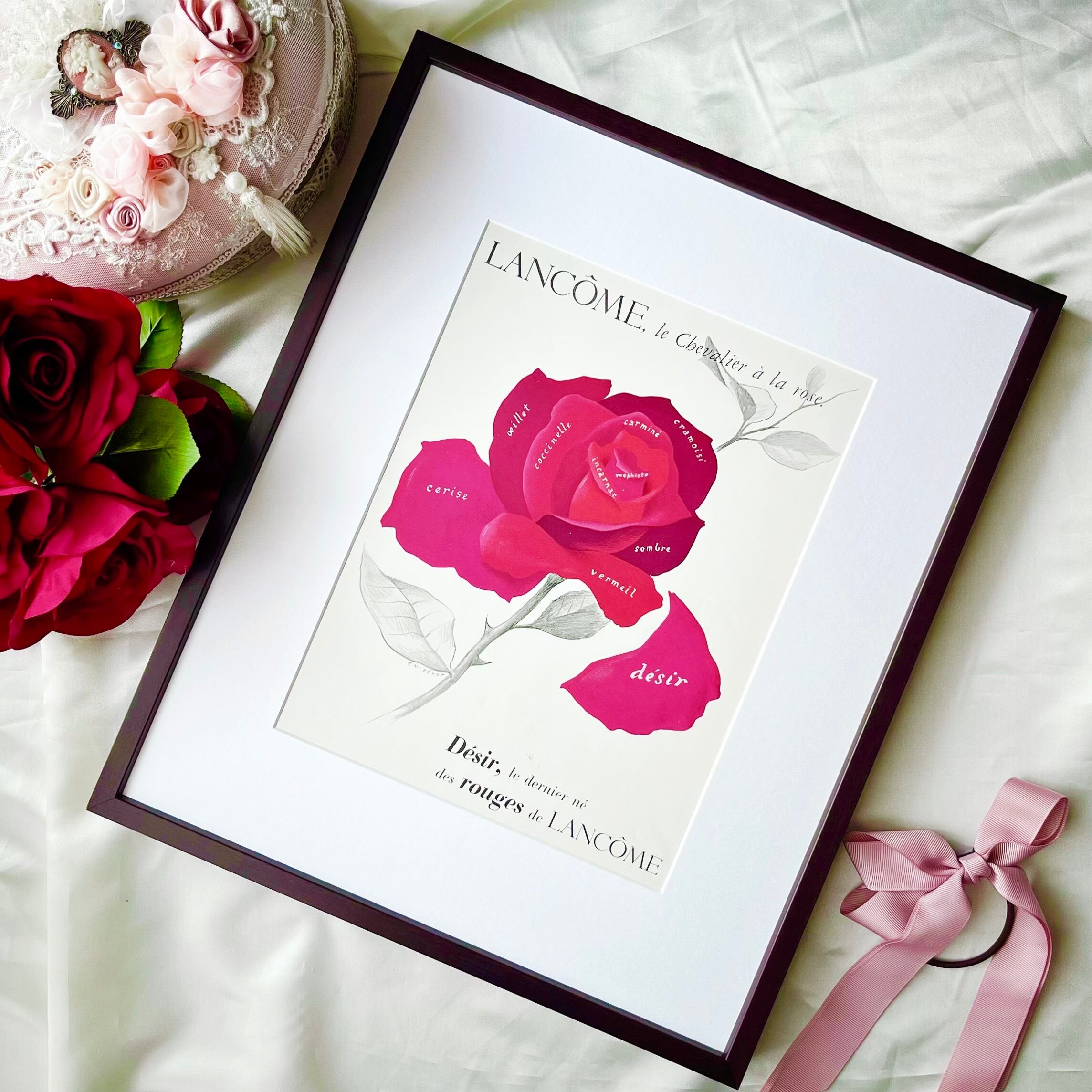 <1952 広告>LANCOME ランコム ポスター ヴィンテージ ビンテージ アートポスター 額縁 フレーム付き インテリア モダン おしゃれ かわいい 壁掛け フランス ポップ 赤 花 バラ