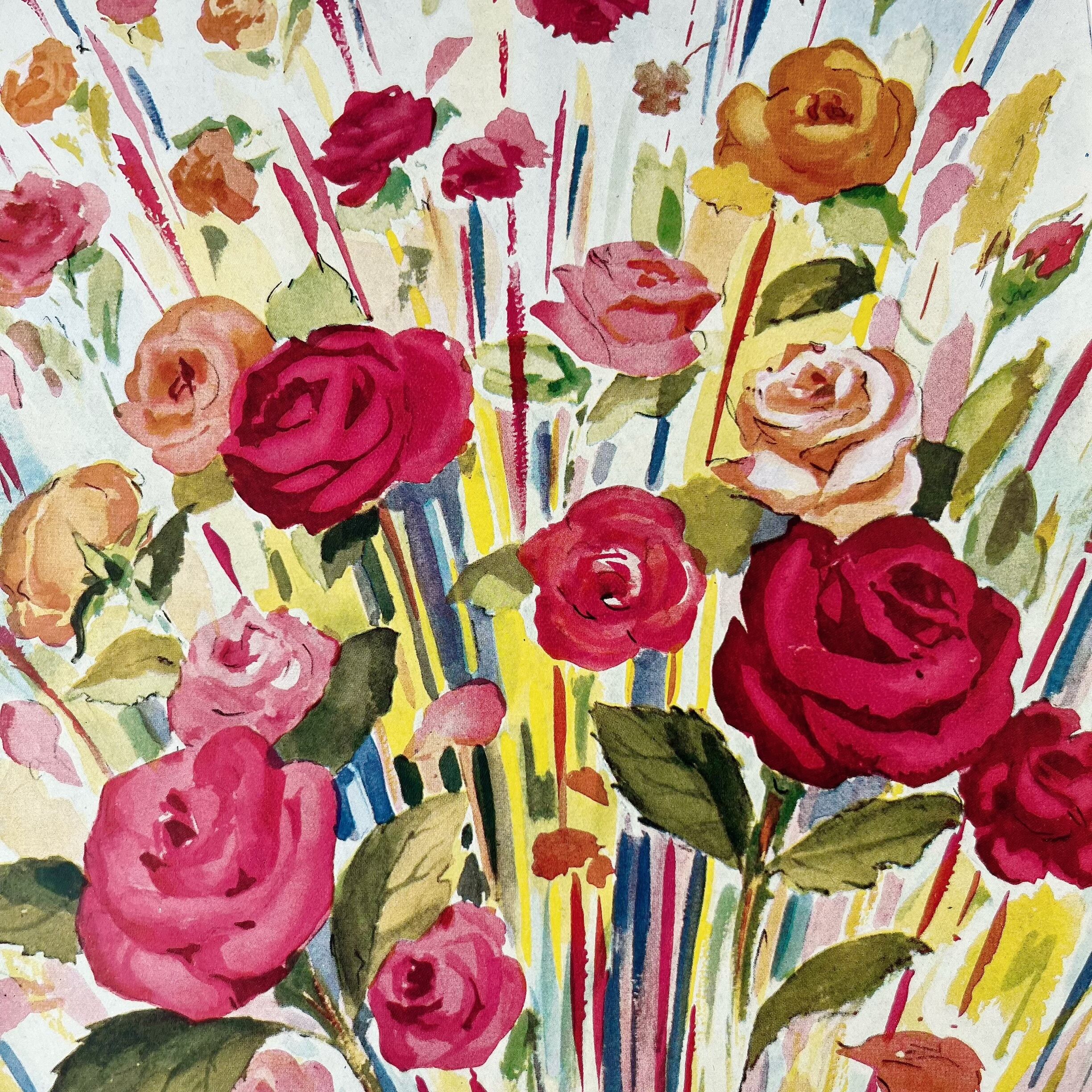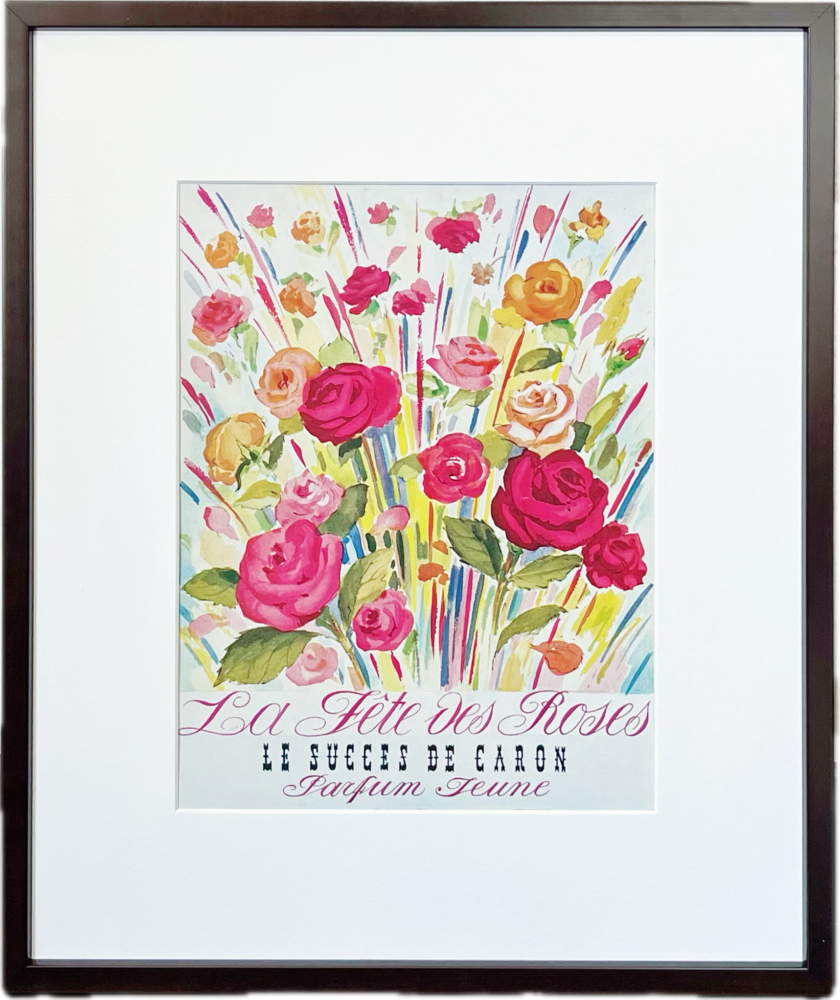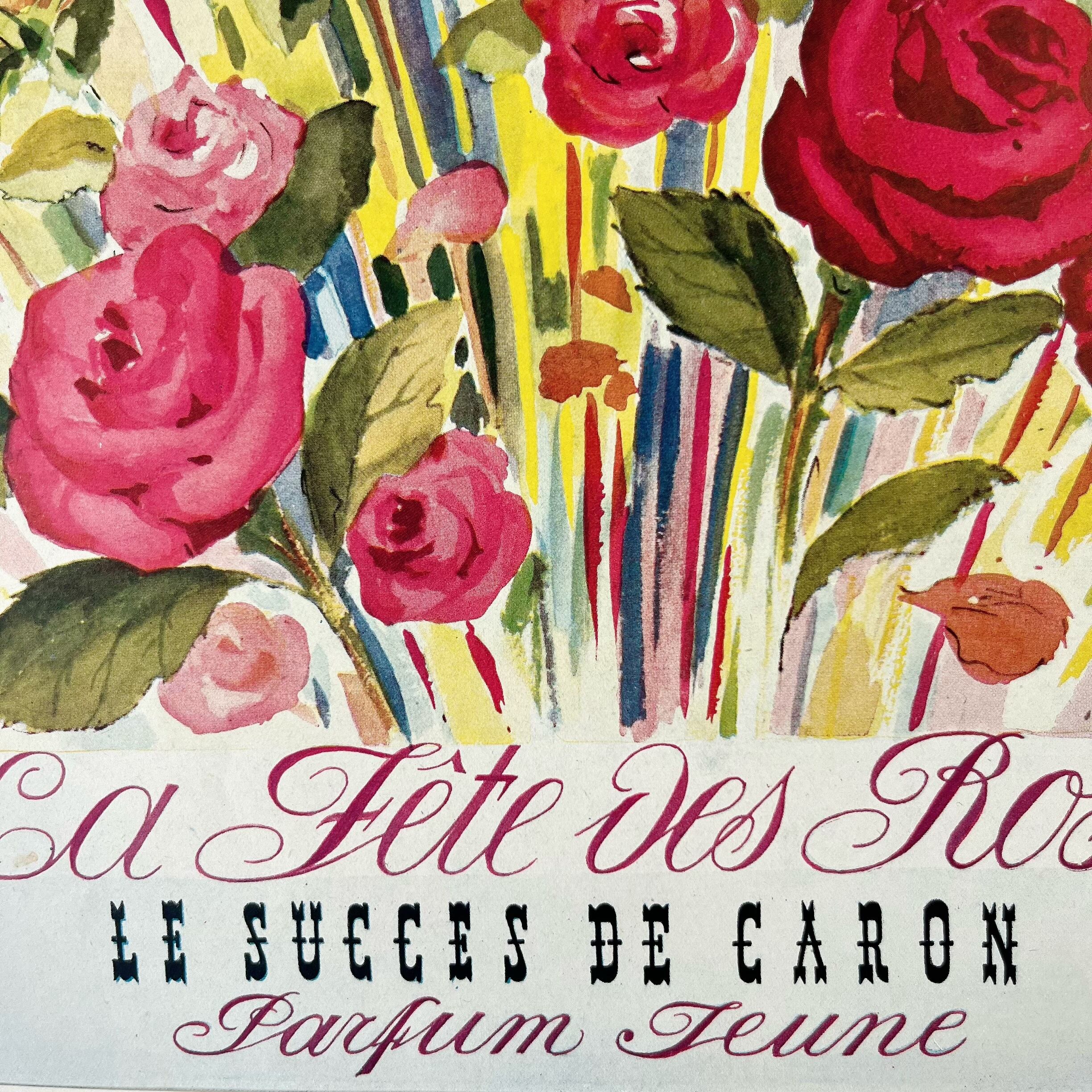 咲き乱れるバラが美しいCARONのレトロなヴィンテージアートポスター。