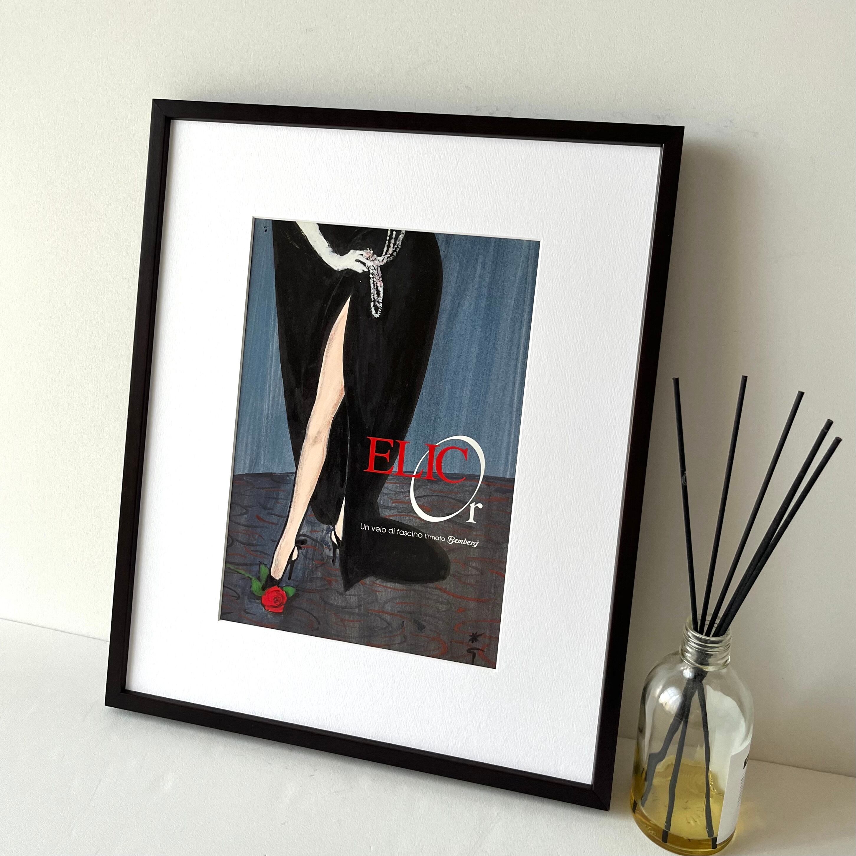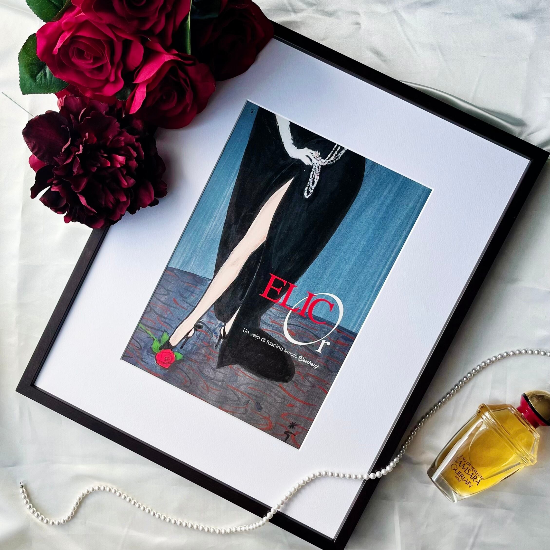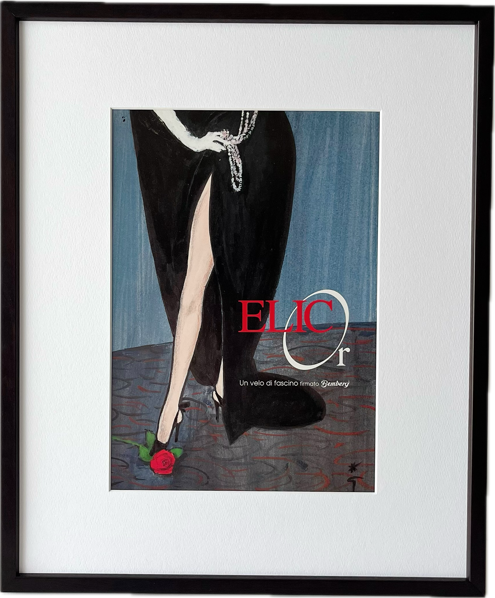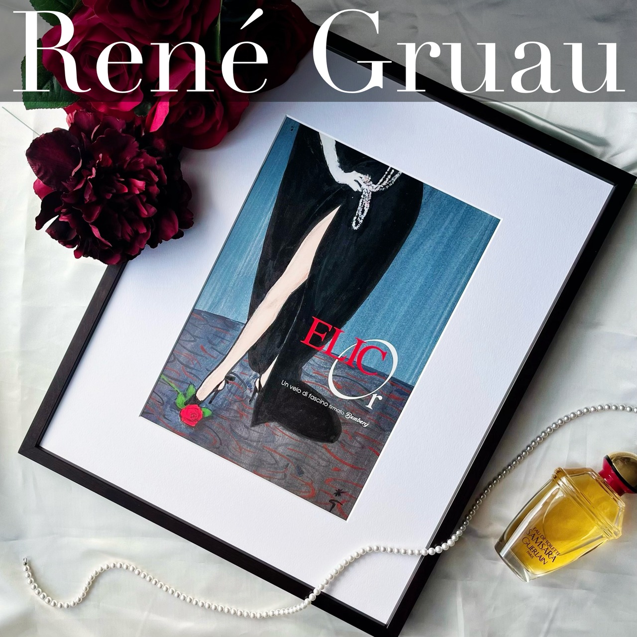 <1991 広告>Rene Gruau ルネ・グリュオ Bemberg "Elic Or" ヴィンテージ ビンテージ アートポスター 額縁 フレーム付き インテリア モダン おしゃれ かわいい 壁掛け フランス ポップ