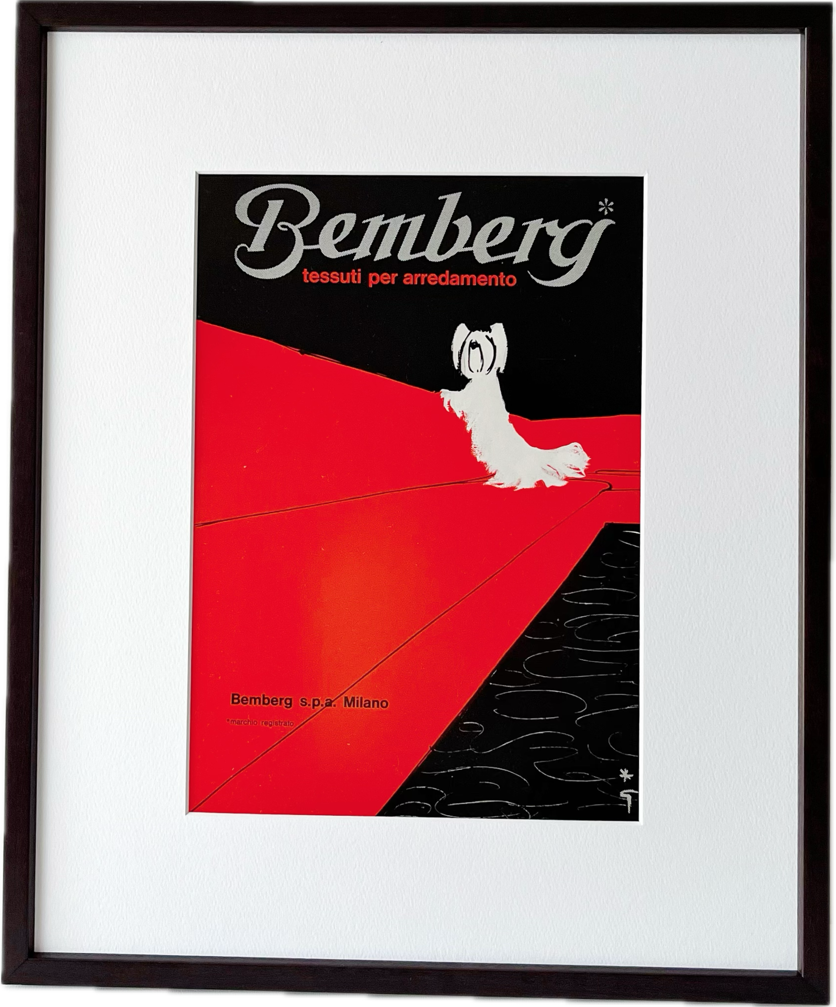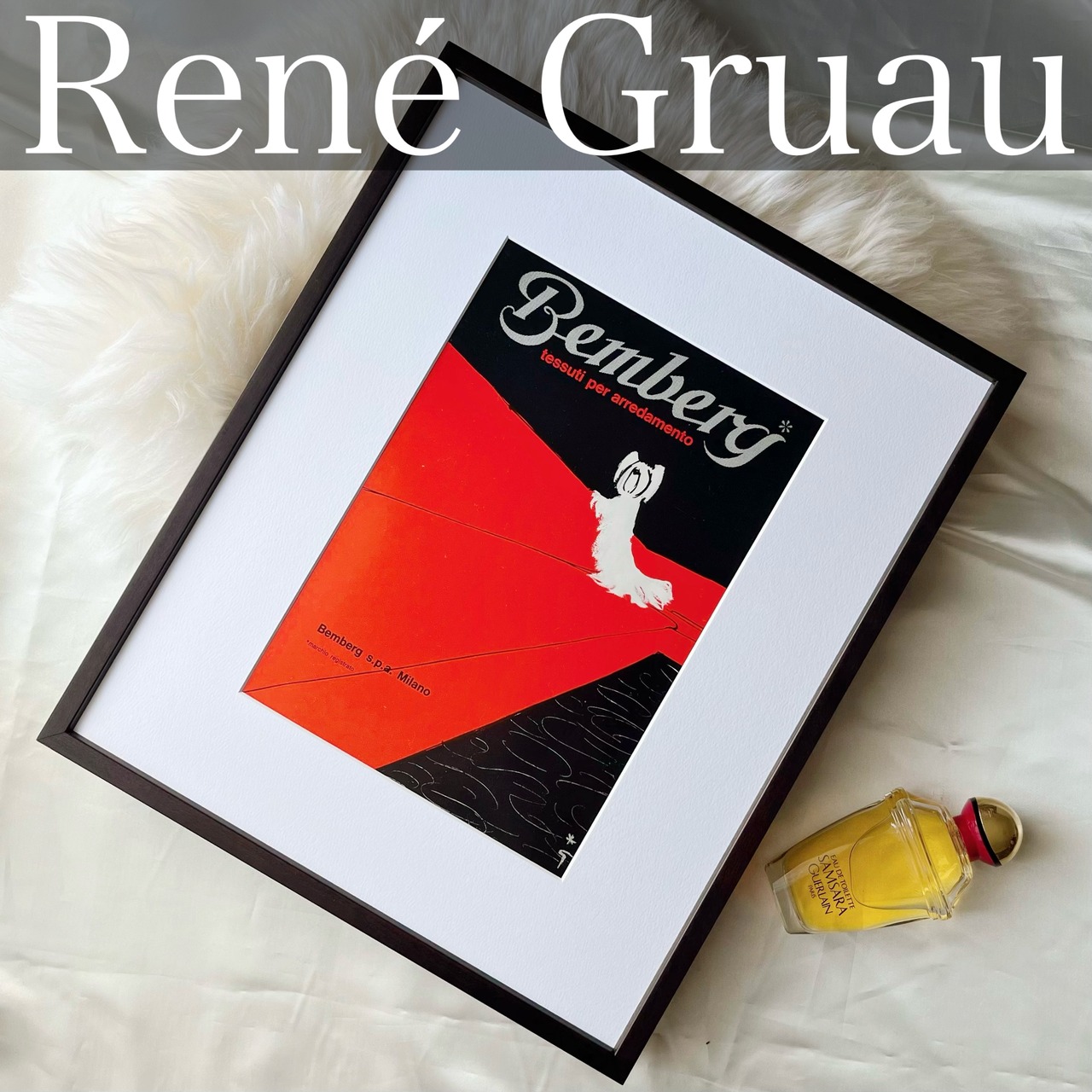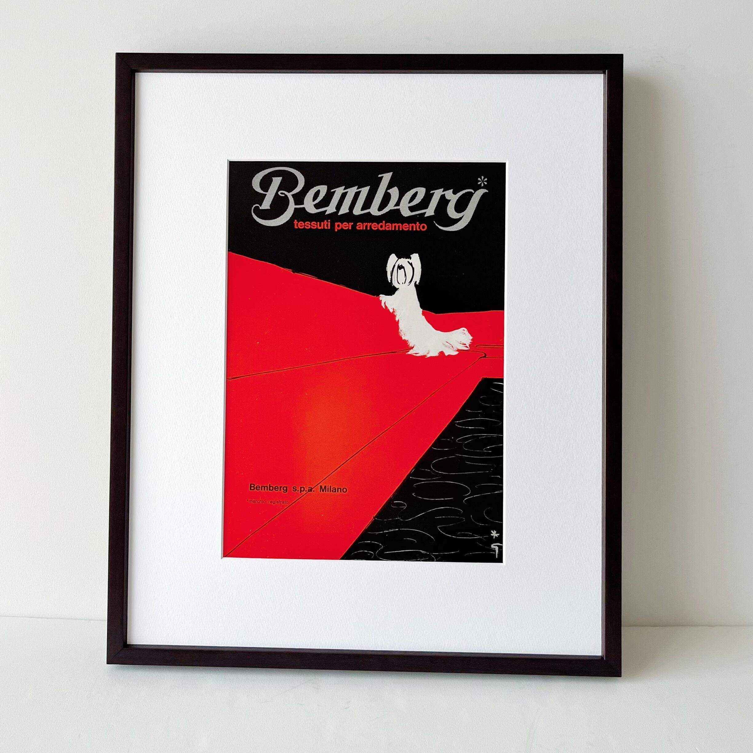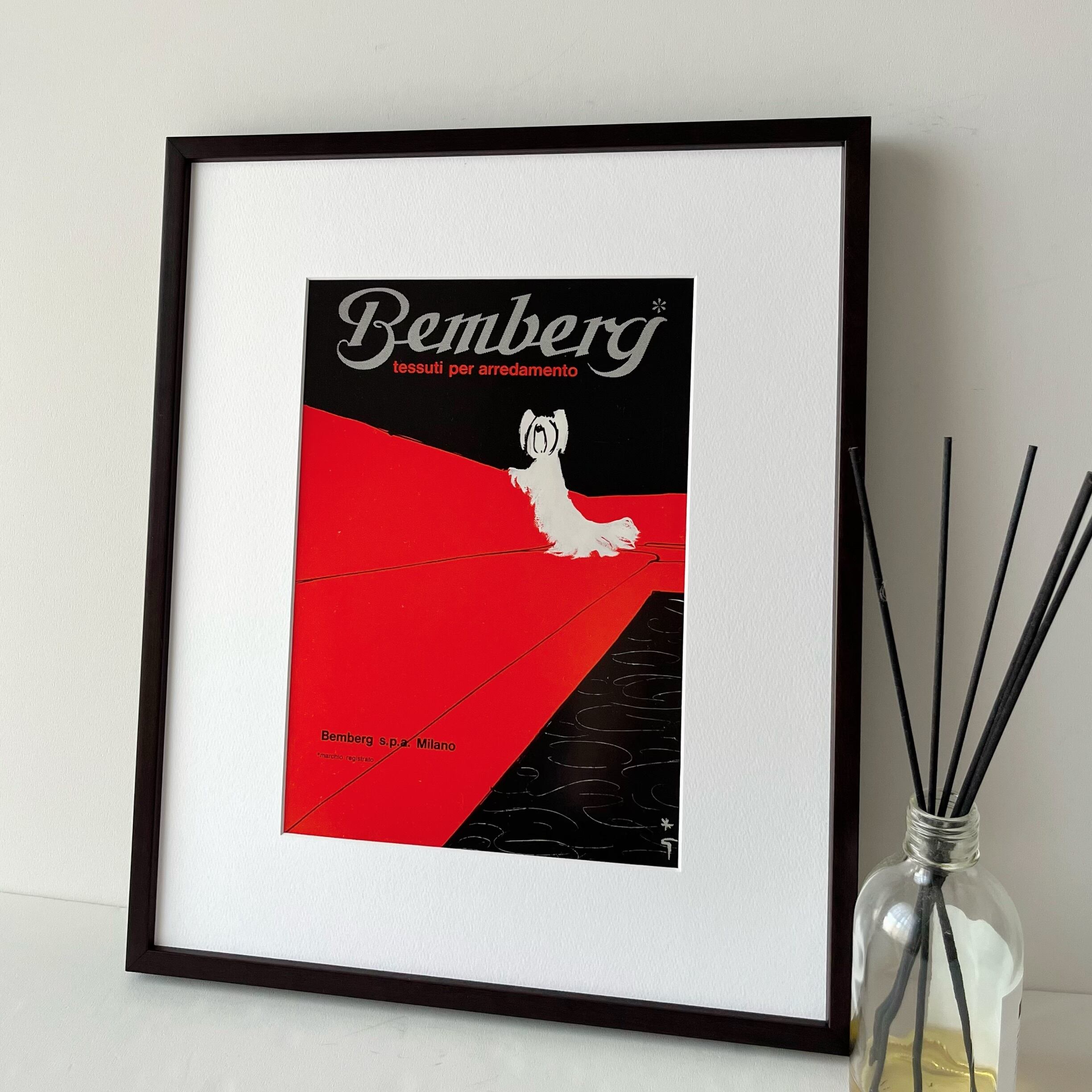 <1968 広告>Rene Gruau ルネ・グリュオ Bemberg 犬 ヴィンテージ ビンテージ アートポスター 額縁 フレーム付き インテリア モダン レトロ おしゃれ かわいい 壁掛け フランス ポップ ワンちゃん 犬グッズ | Belle_ame ヴィンテージアートポスター