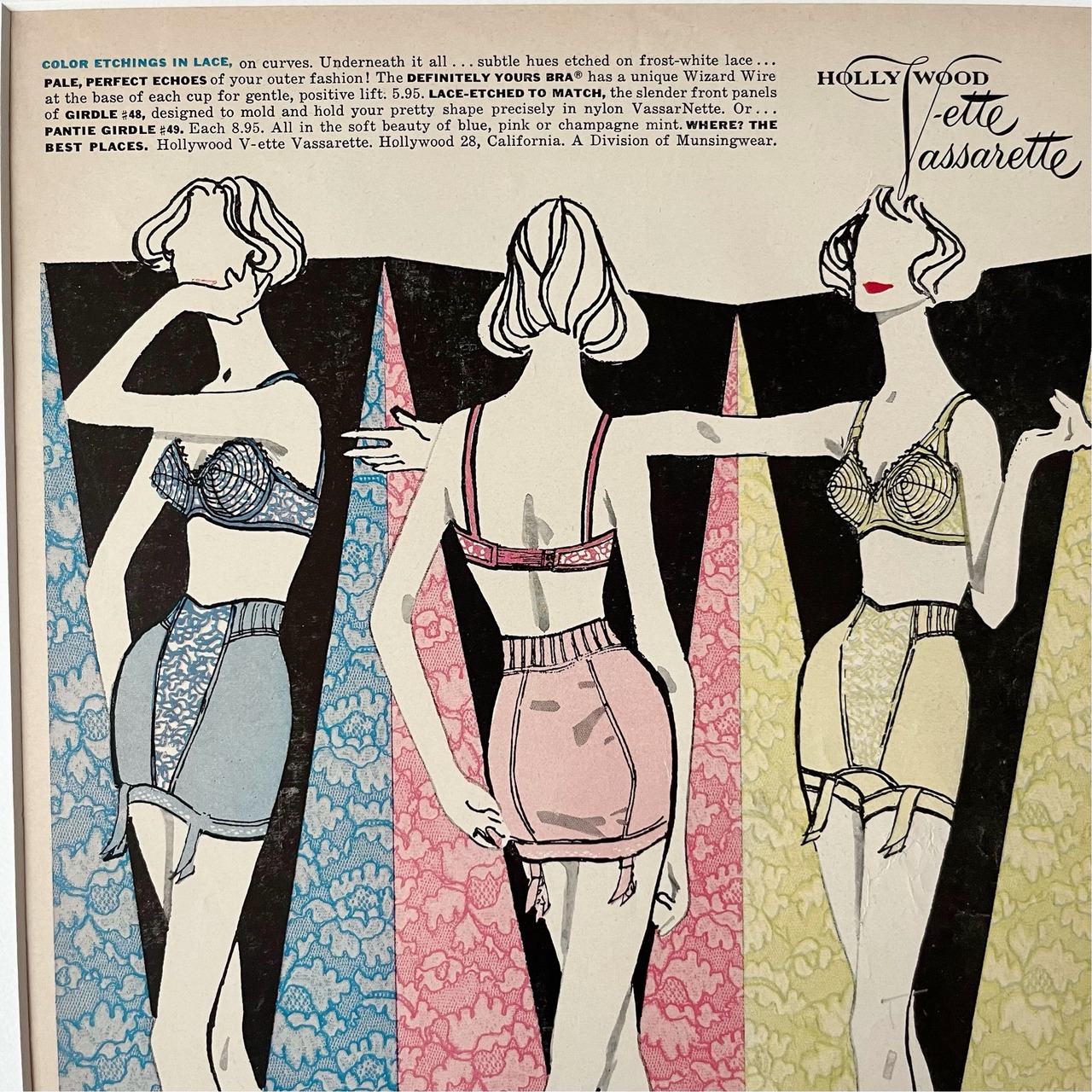 <1950s 広告>Hollywood Vette Vassasette ヴィンテージ アートポスター 額縁 フレーム付き インテリア モダン レトロ おしゃれ かわいい 壁掛け フランス ポップ | Belle_ame ヴィンテージアートポスター