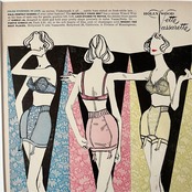 ピンク、黄色、水色のランジェリーを身にまとった女性たちのイラストは、どこかロマンチックでガーリーな可愛らしい雰囲気が漂います。