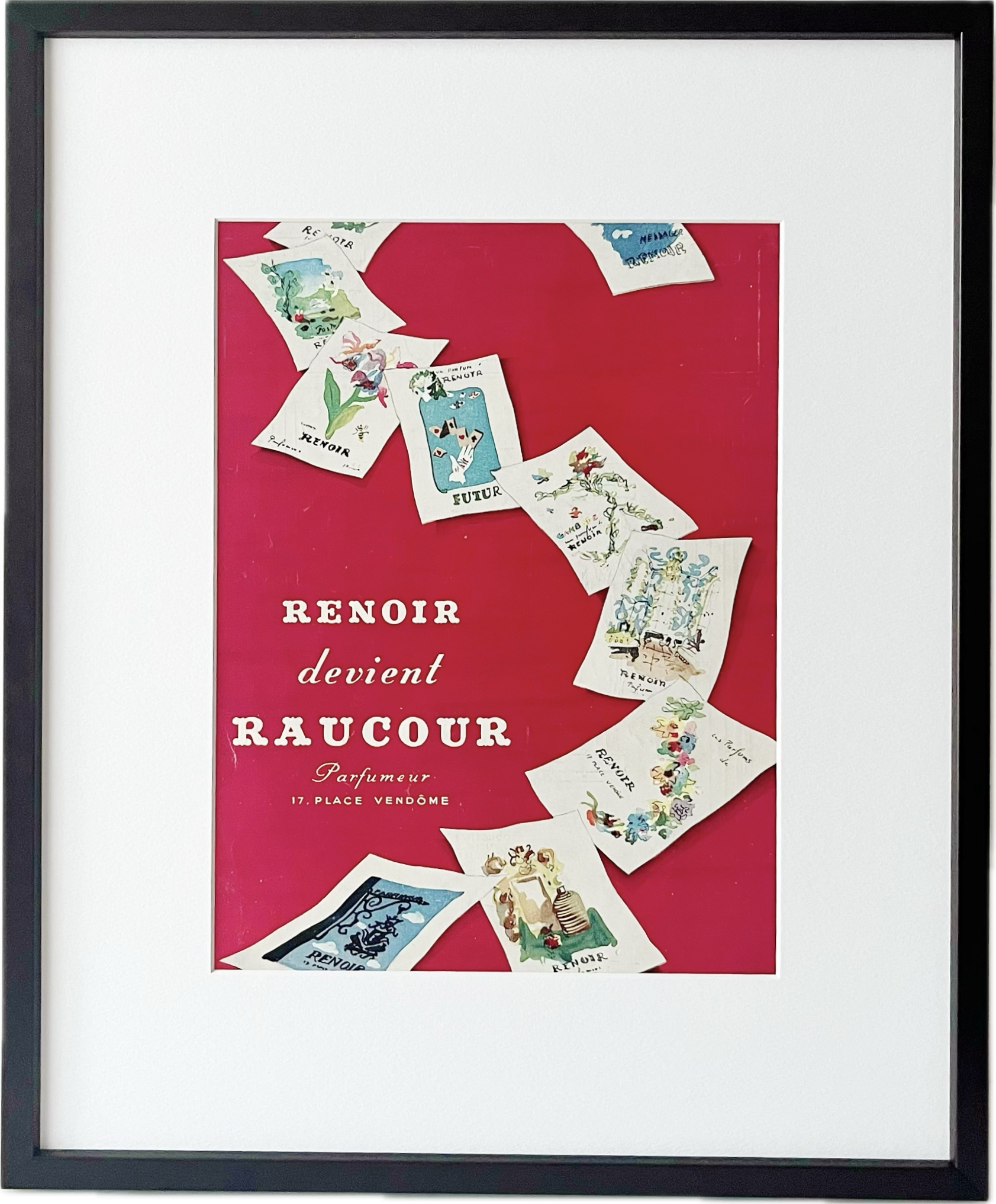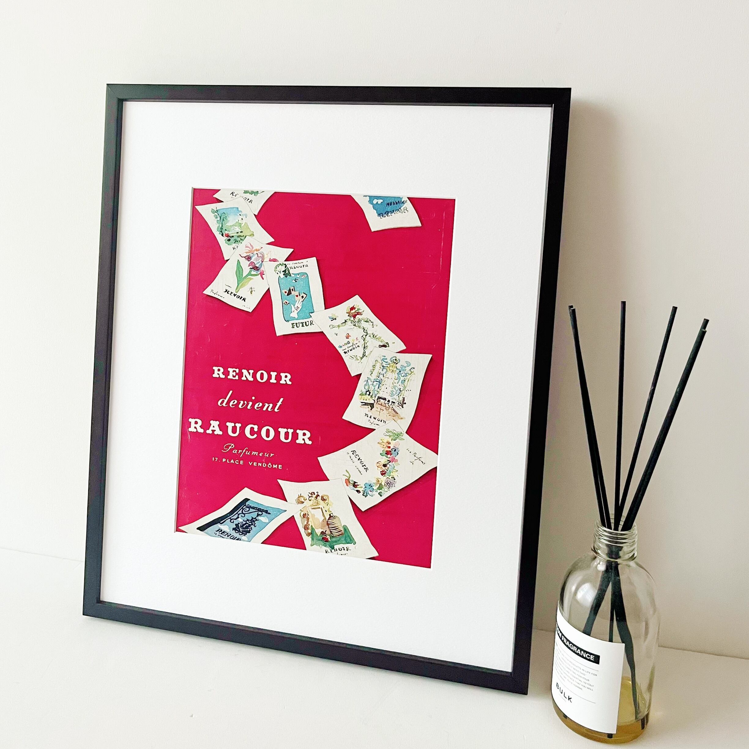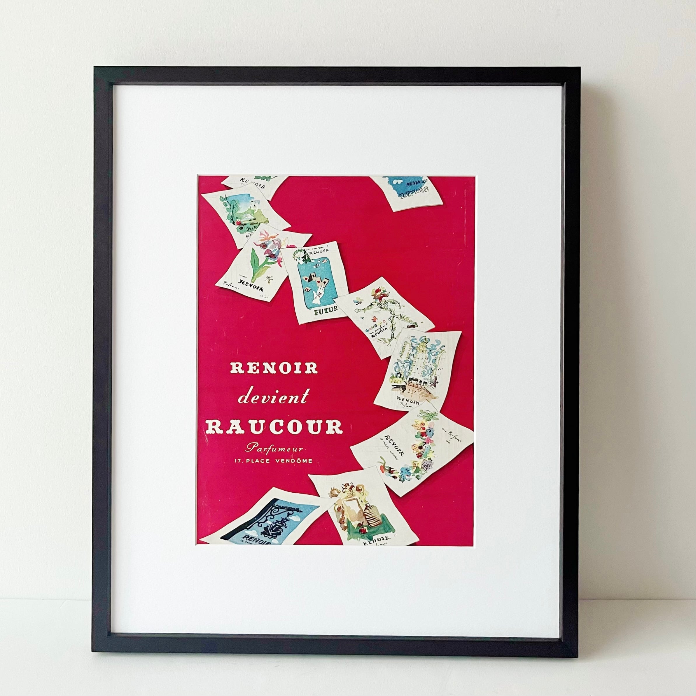 <1946 広告>RAUCOR ヴィンテージ ビンテージ アートポスター 額縁 フレーム付き インテリア モダン おしゃれ かわいい 壁掛け フランス ポップ レトロ 赤